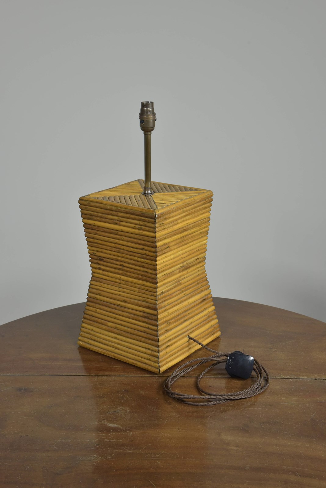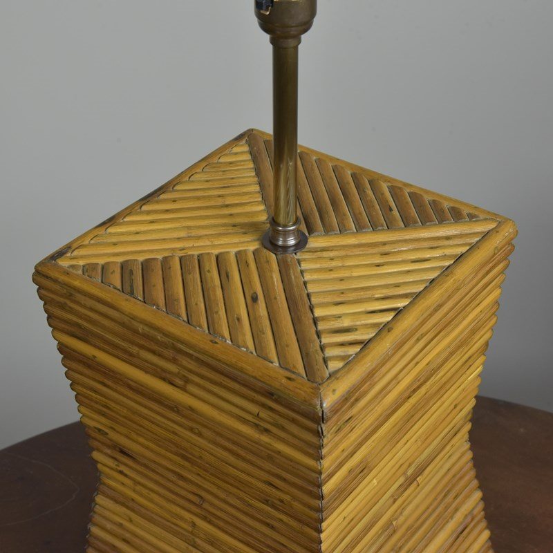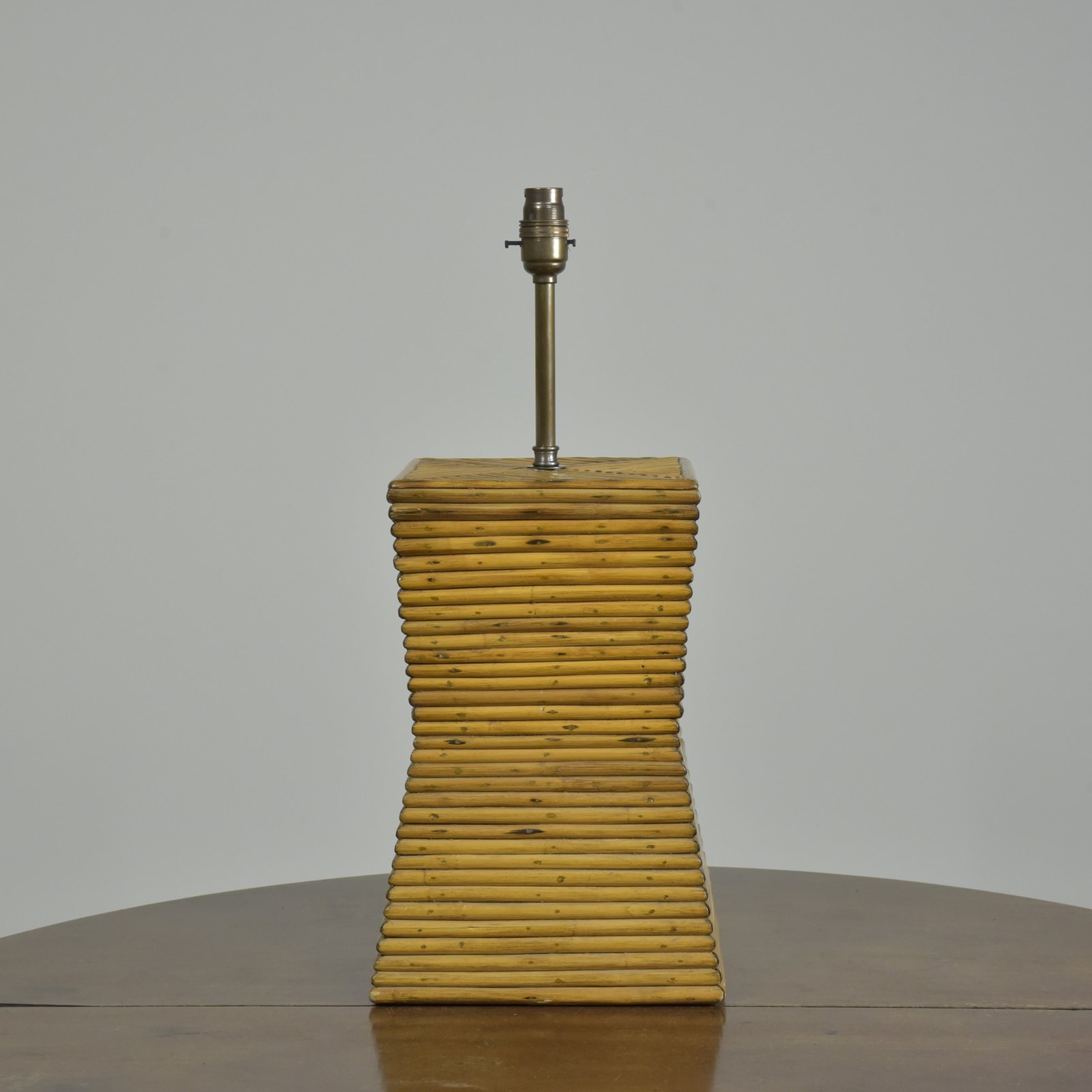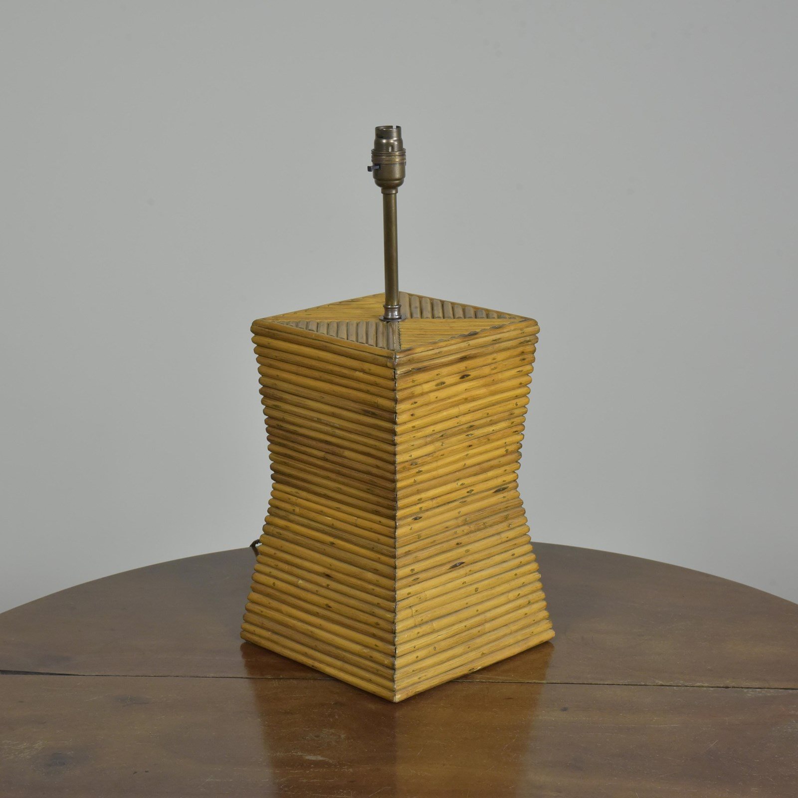 A vintage bamboo table lamp of square waisted force. Approx mid century.