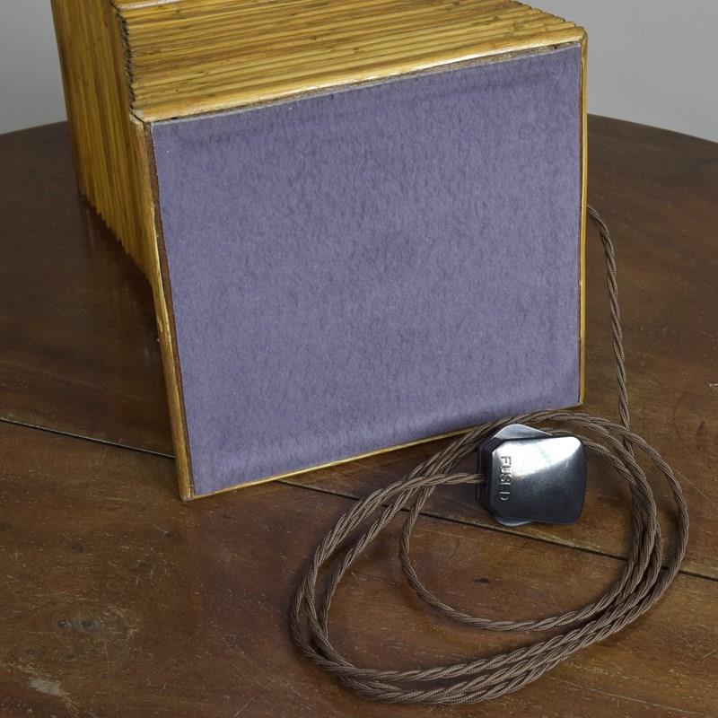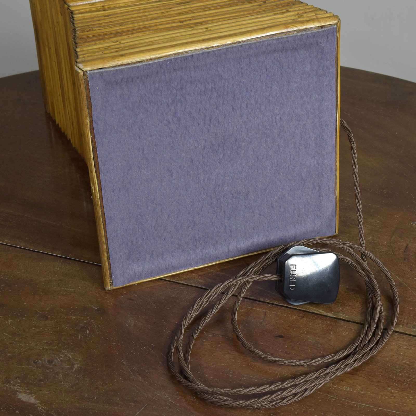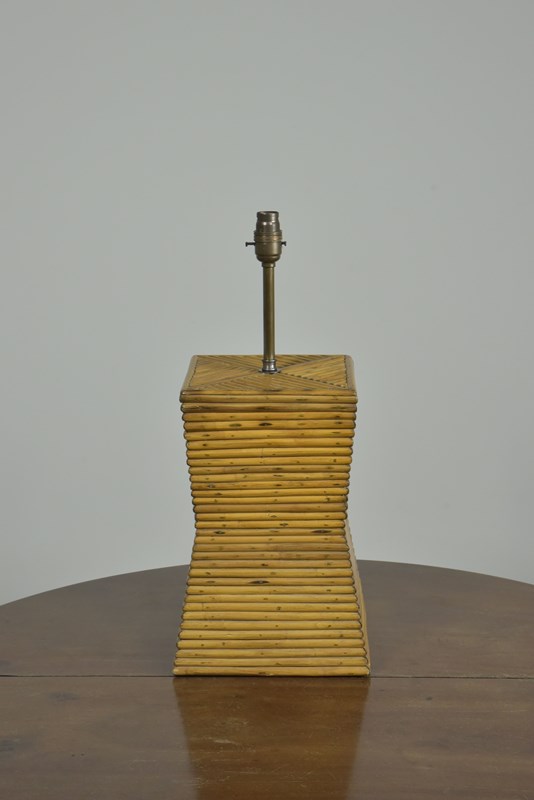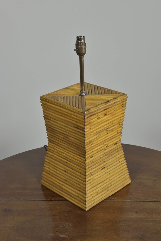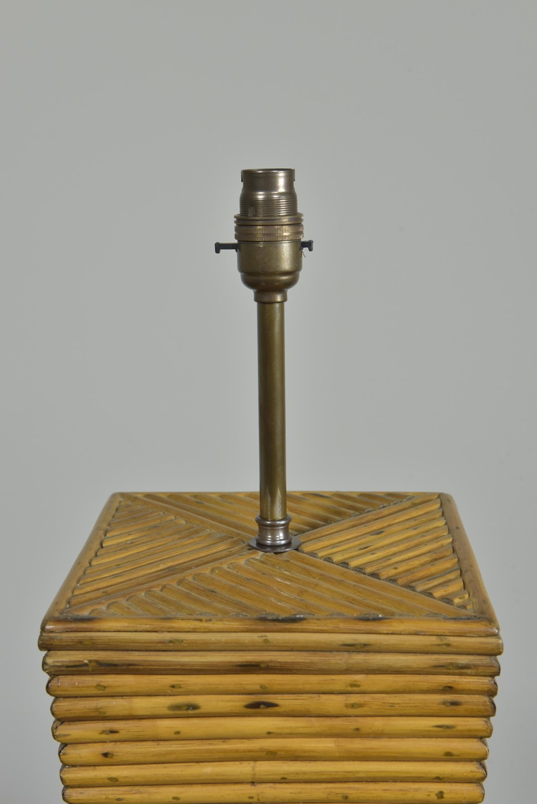 A vintage bamboo table lamp of square waisted force. Approx mid century.