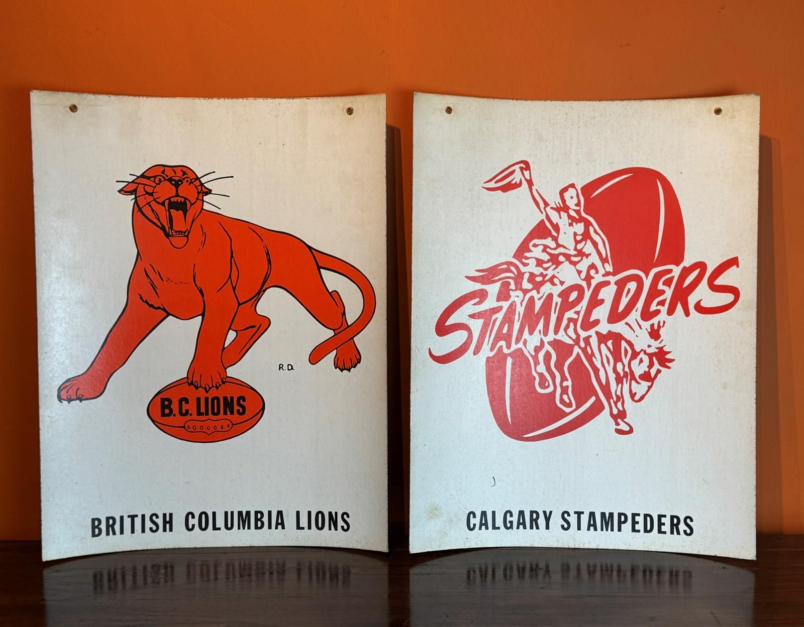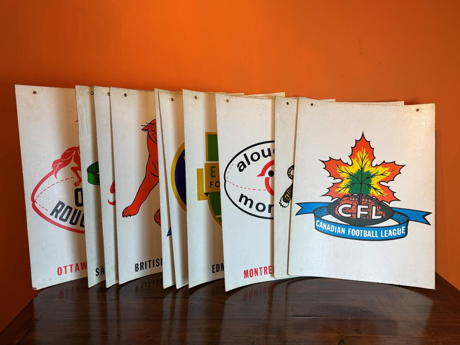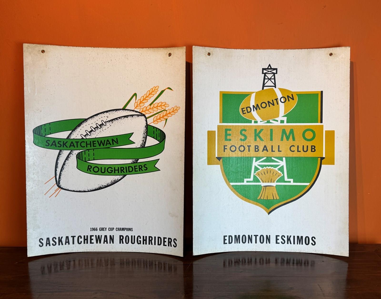 a set of 10 vintage 1960's canadian football league posters, of thick card with two riveted holes to the top to enable them to be hung, comprising: