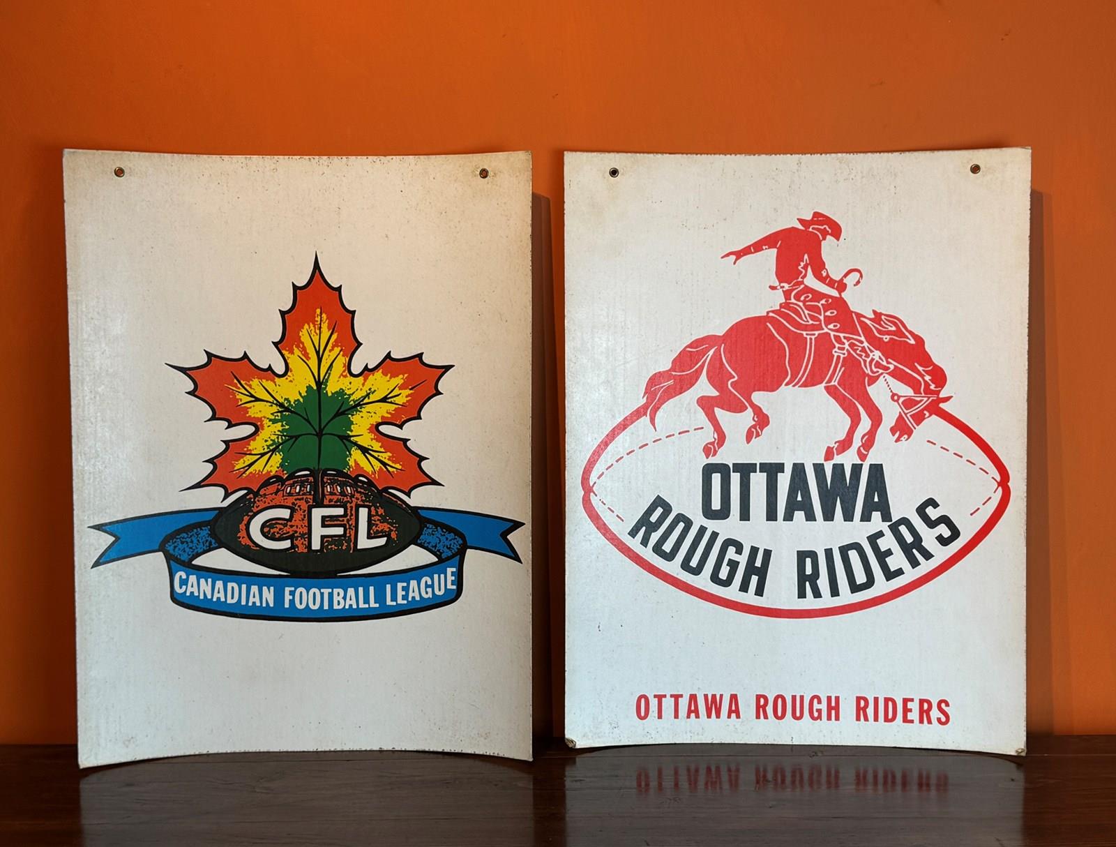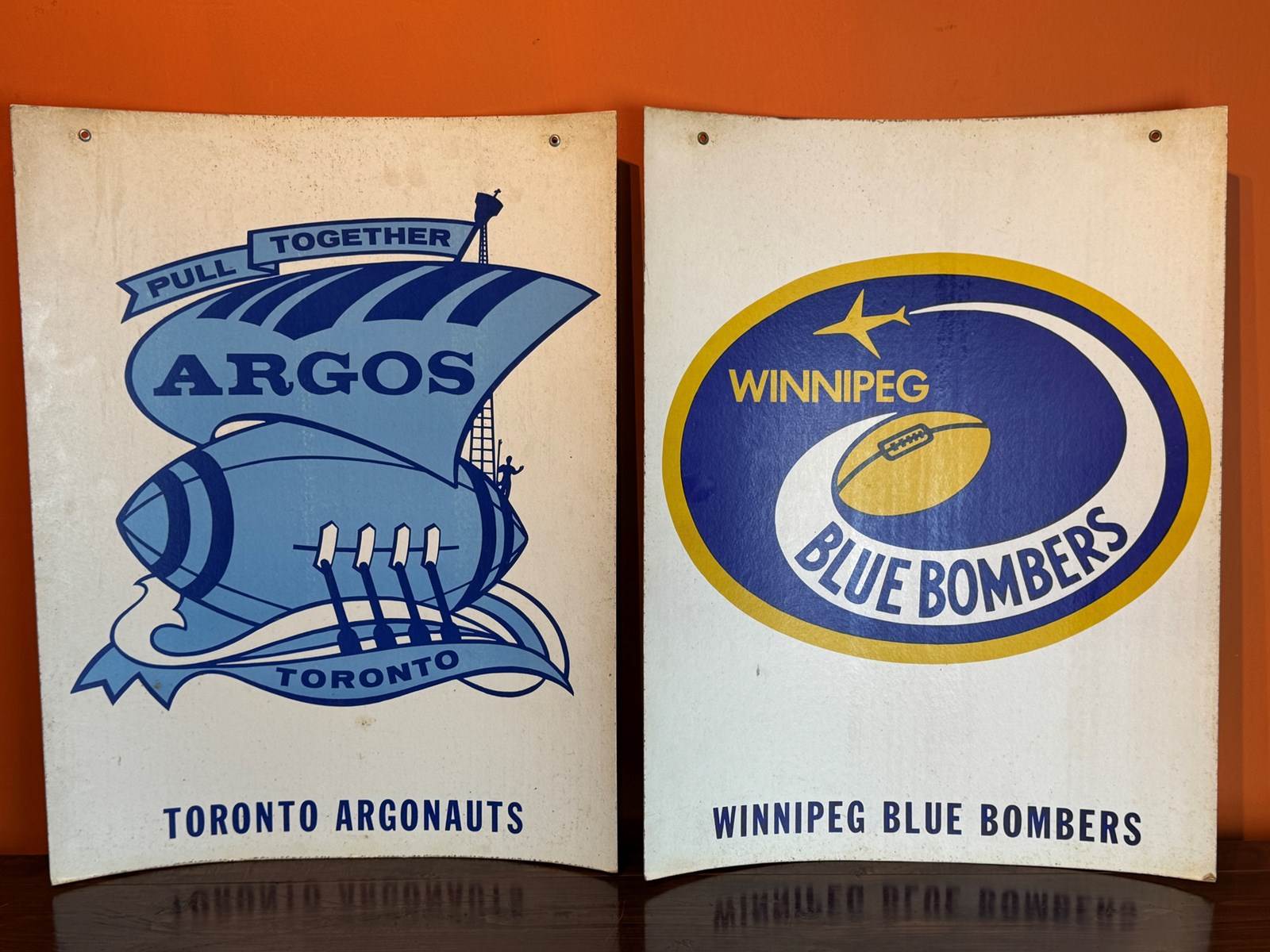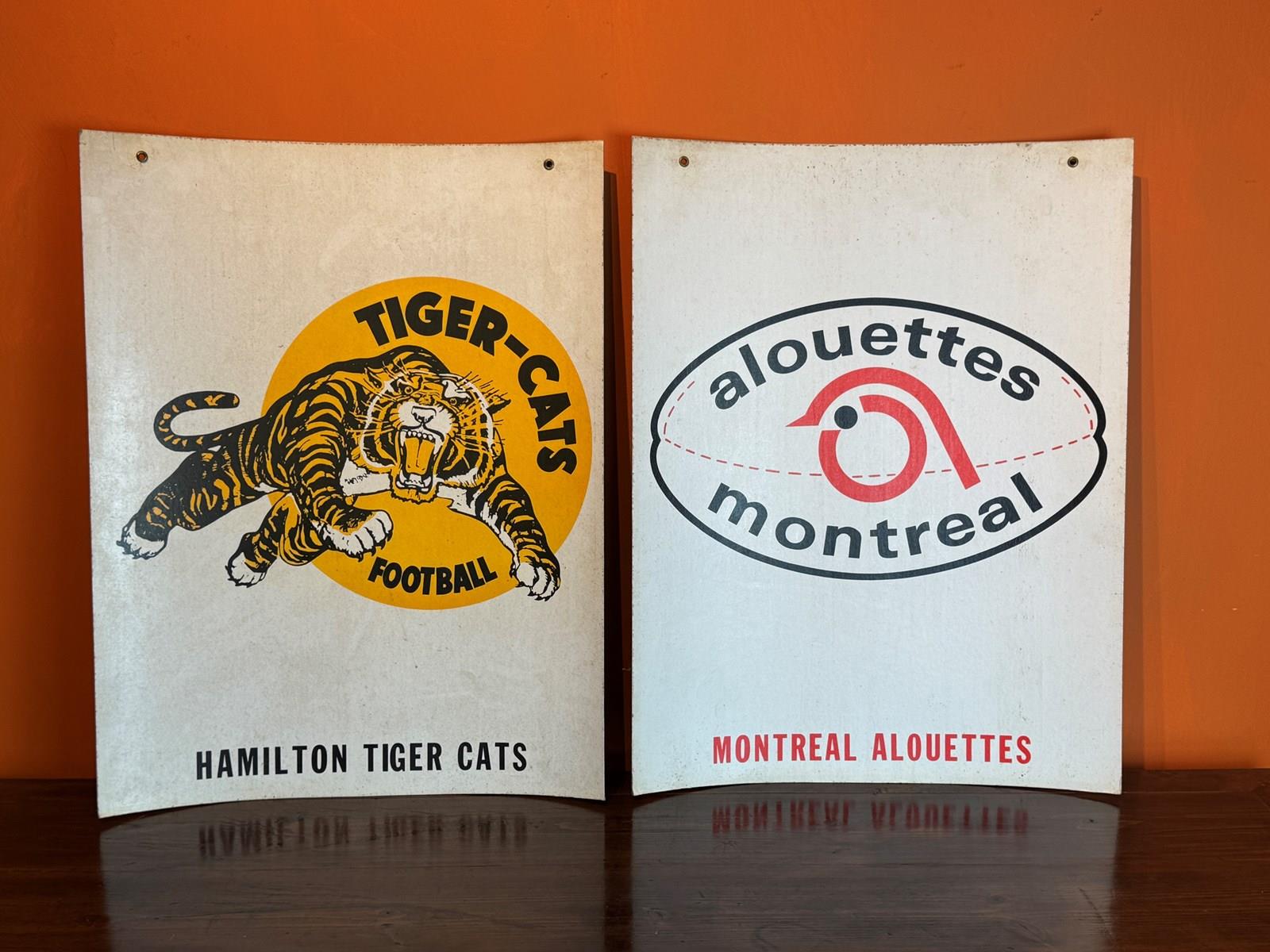 a set of 10 vintage 1960's canadian football league posters, of thick card with two riveted holes to the top to enable them to be hung, comprising: