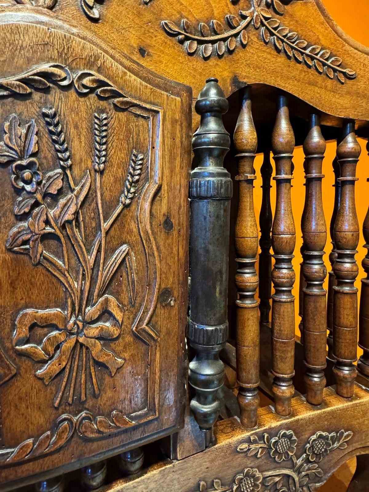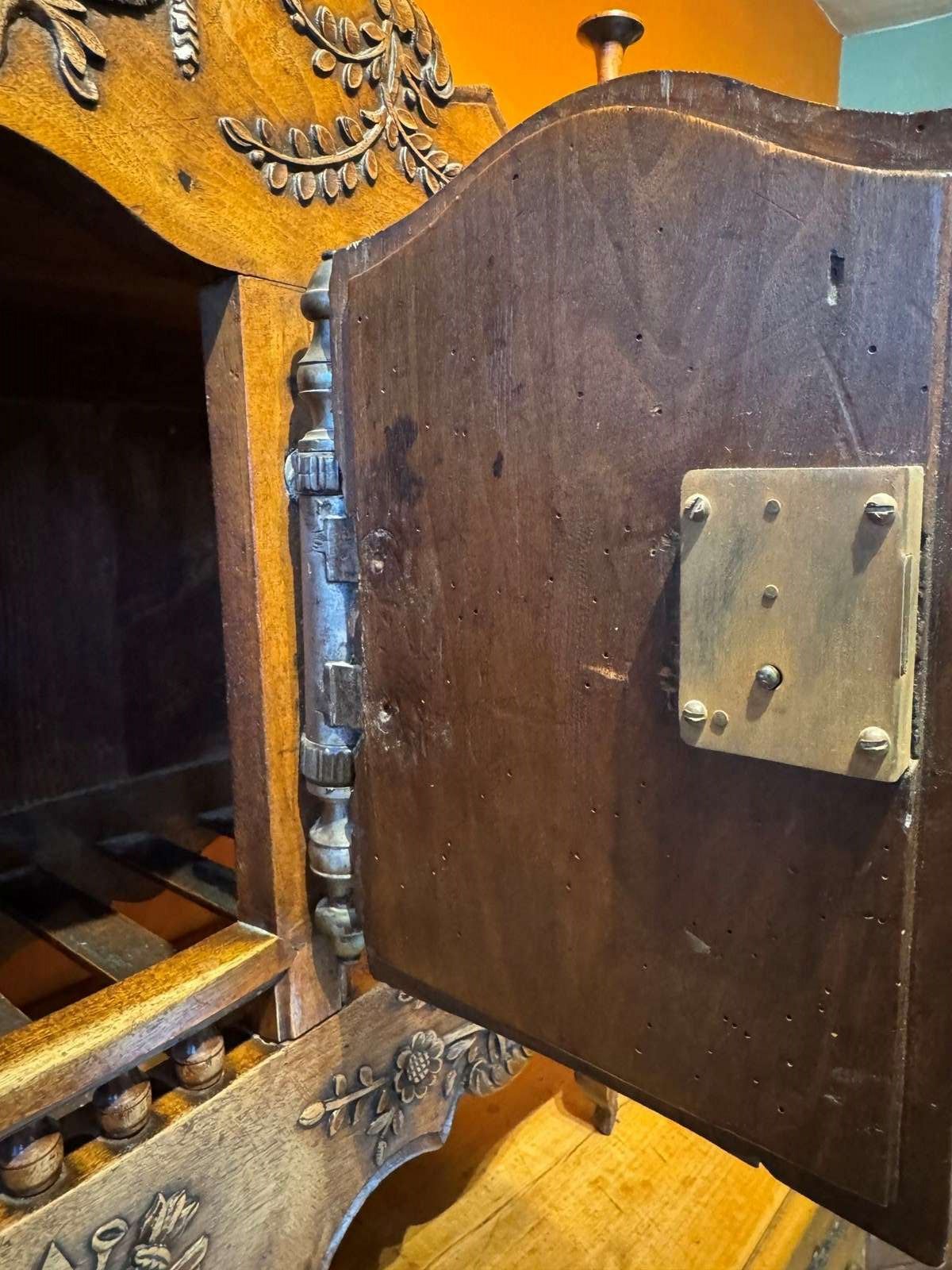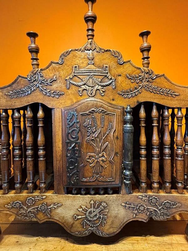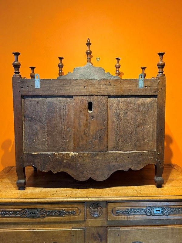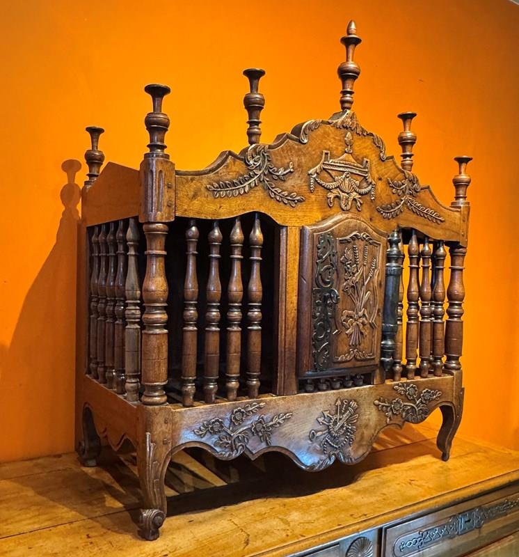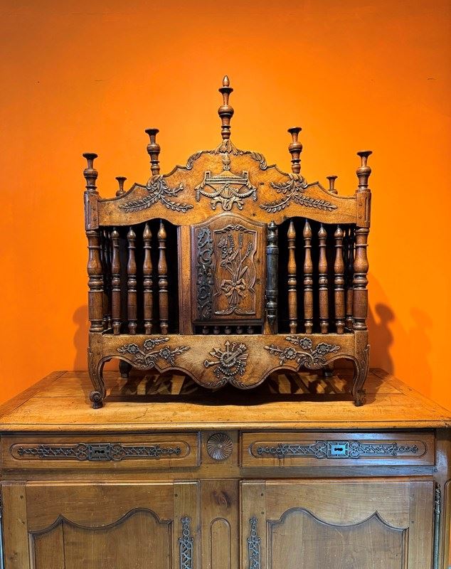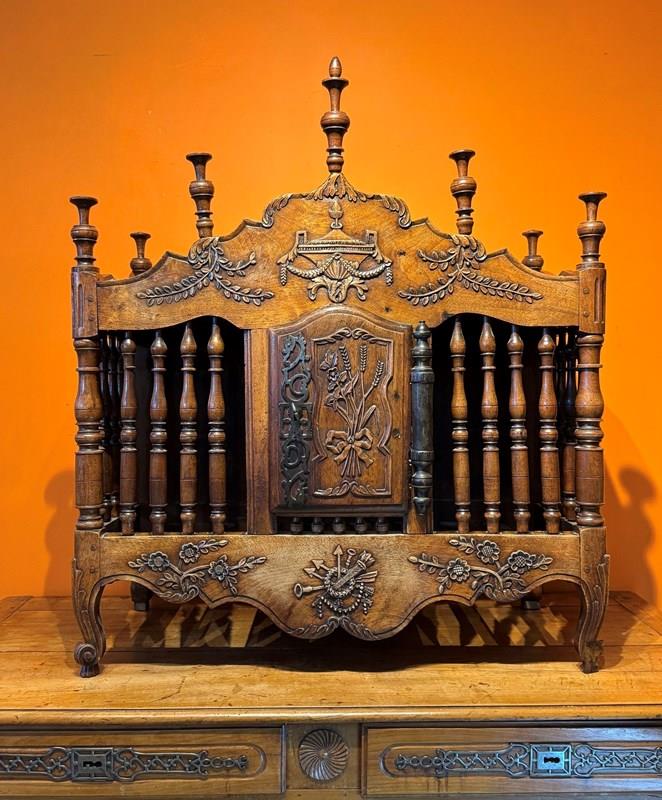 18Th Century French Carved Walnut Panetiere With Turned Finials