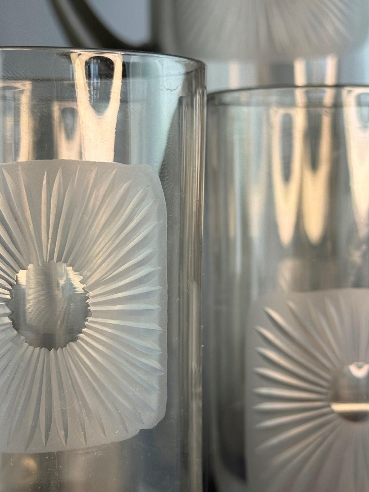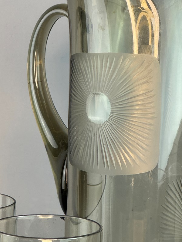 1970'S Danish Sunburst Cut Smoked Glass Water Set