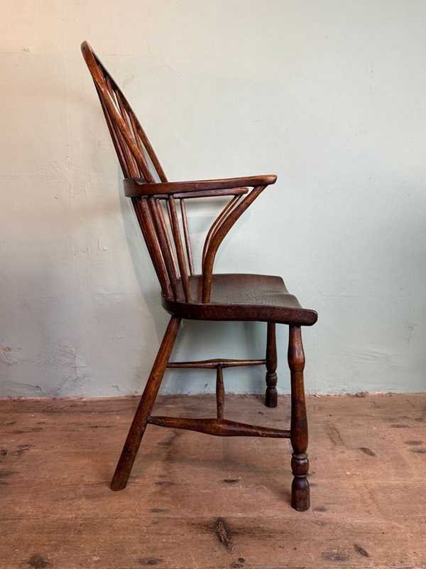 19Th Century Ash & Elm Comb Back Elbow Chair