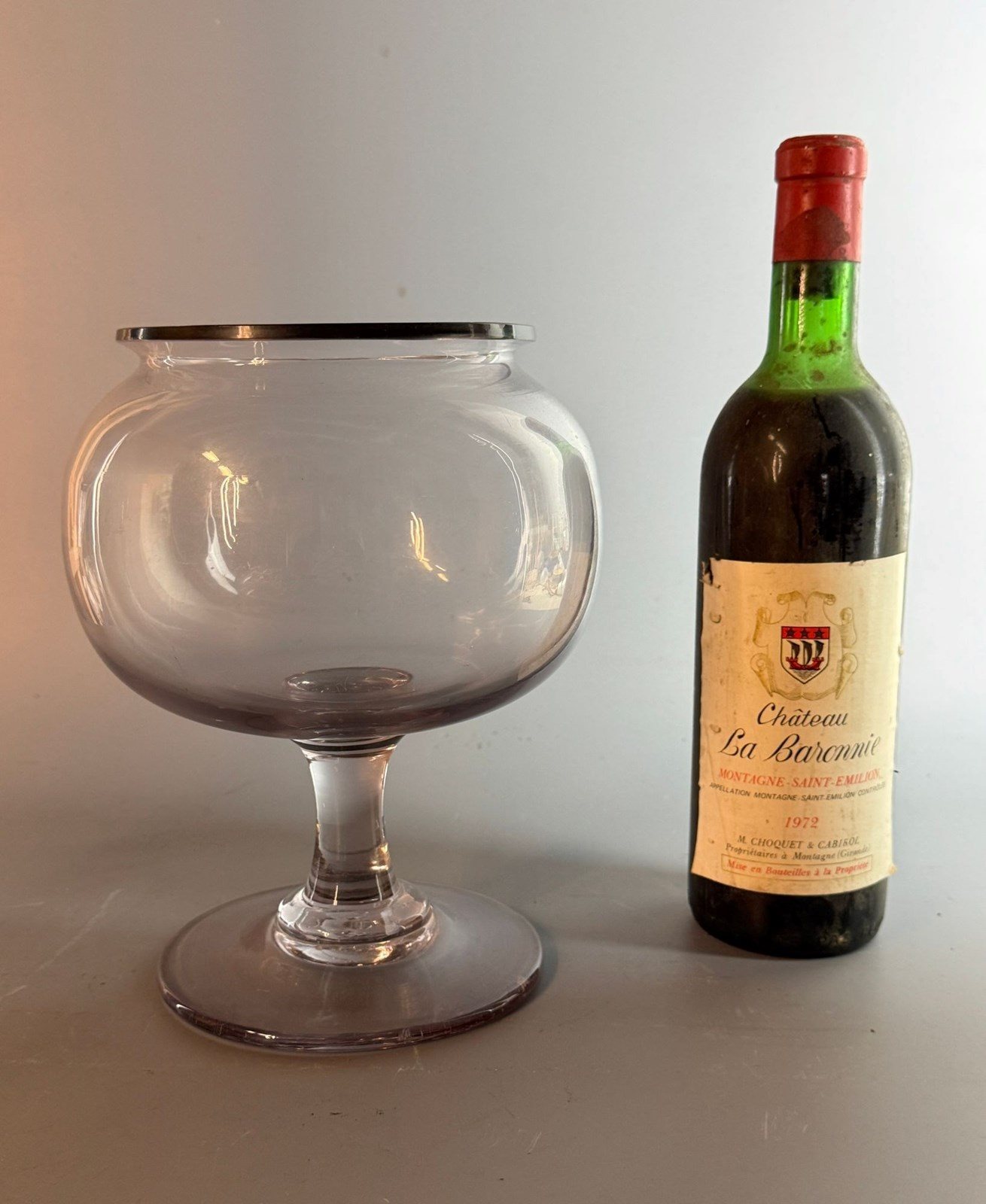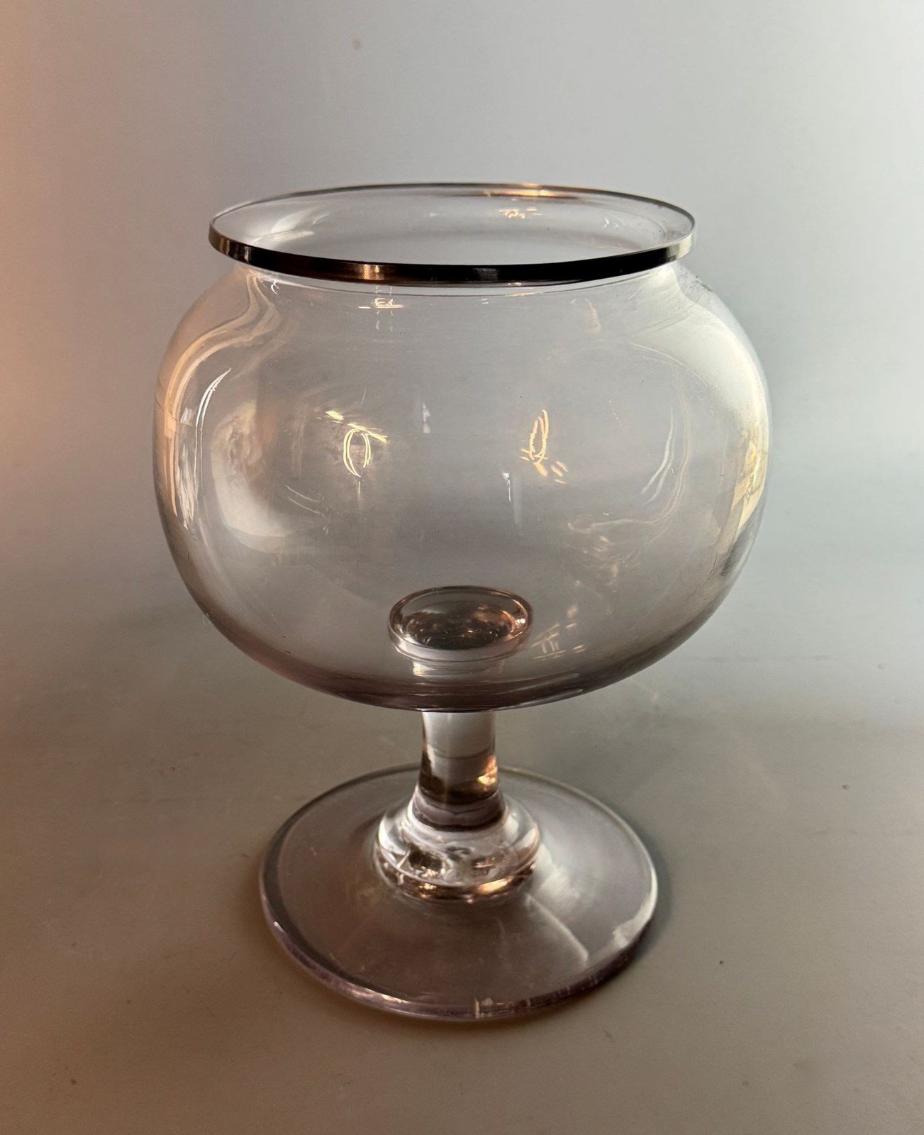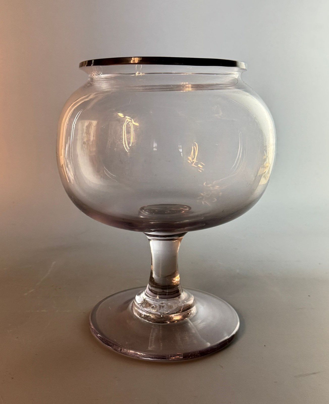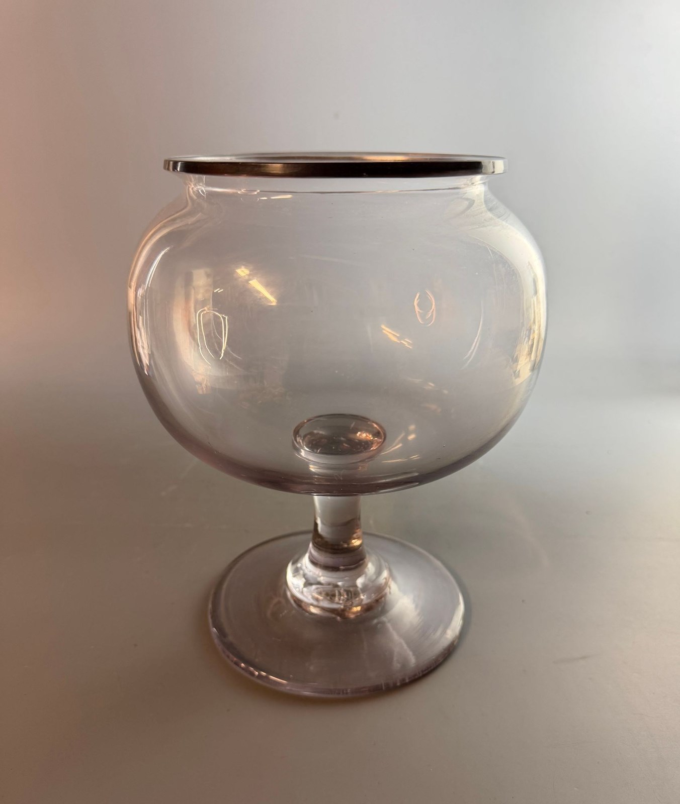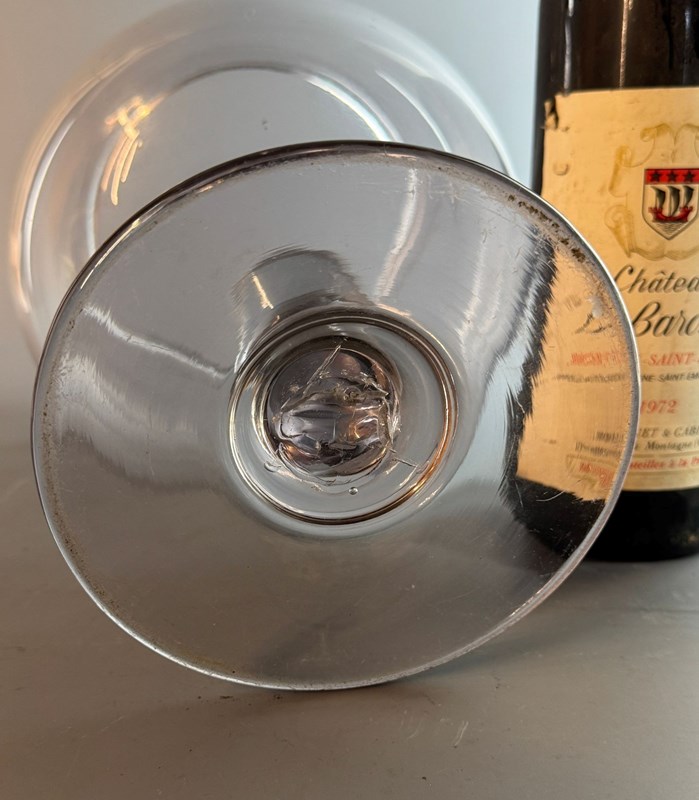An antique 19th Century French glass leech jar, the hand blown bulbous bowl with an everted rim and a broken pontil to the circular foot.