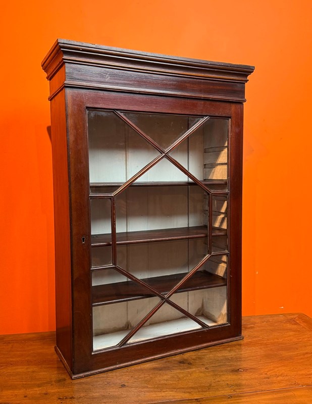 Antique Mahogany Wall Cabinet With Astragal Glazed Door
