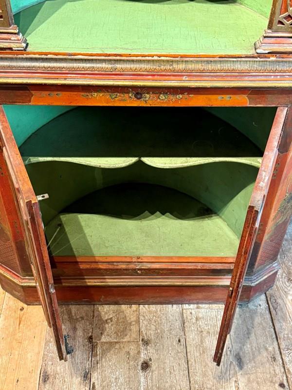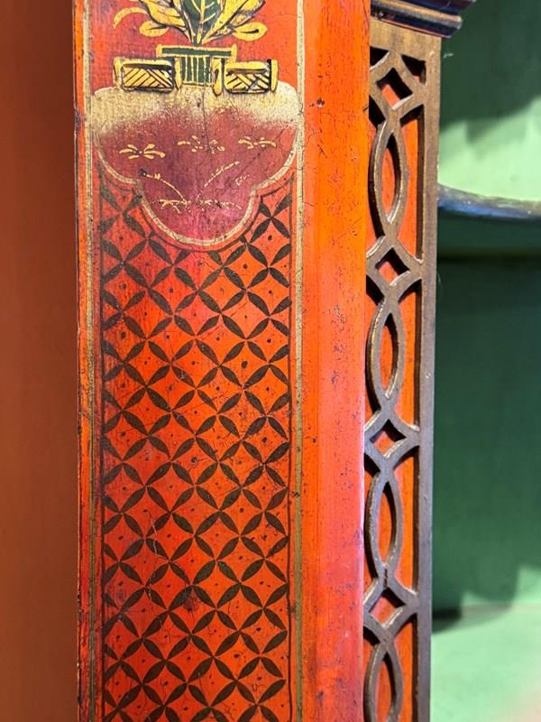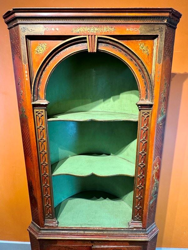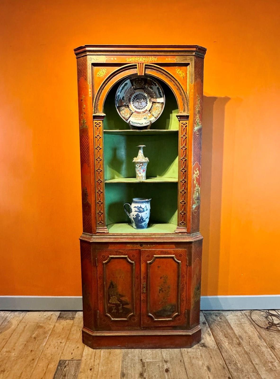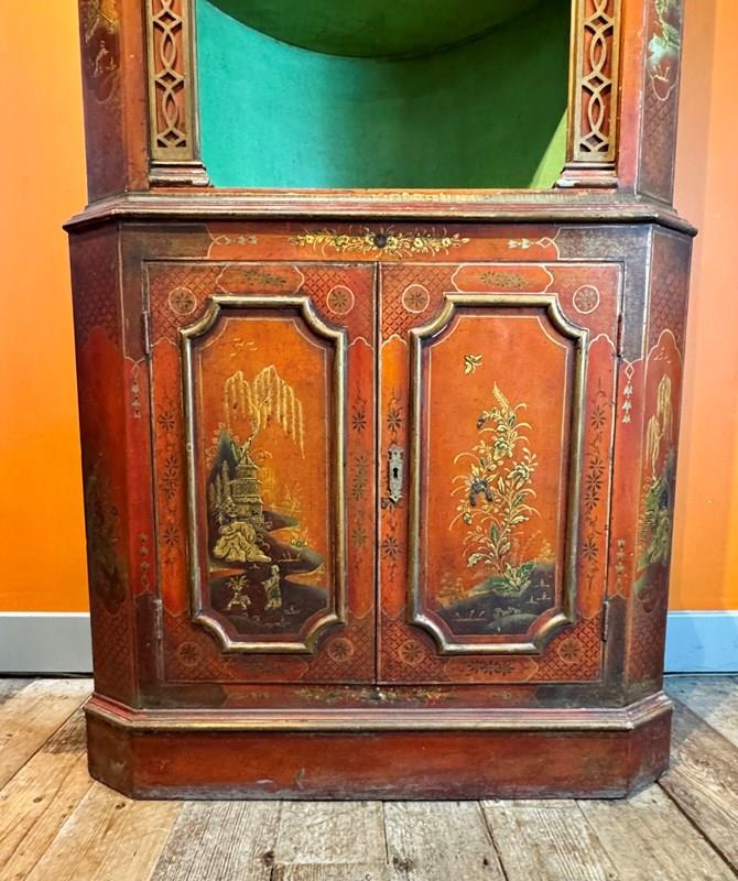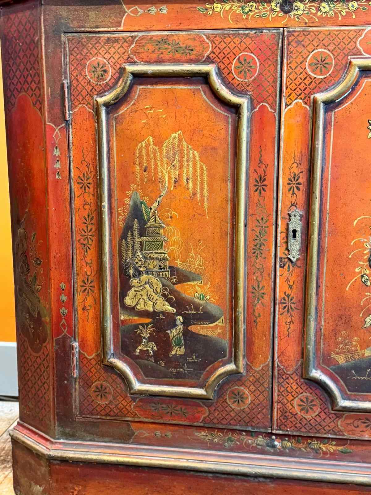 Antique Red Chinoiserie Corner Cupboard