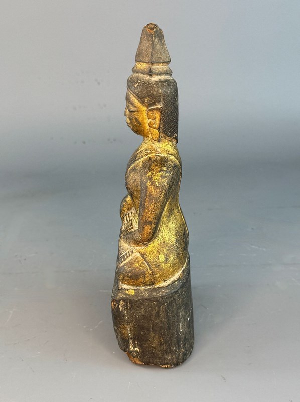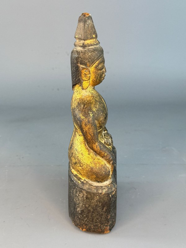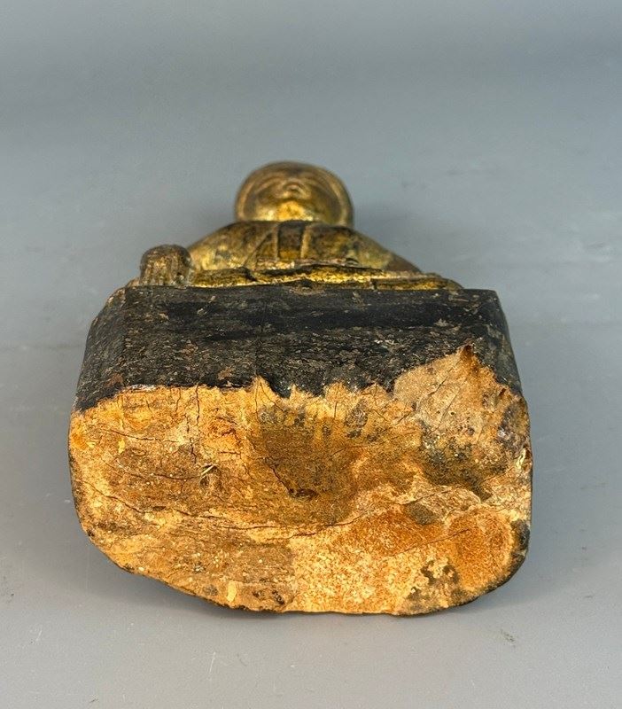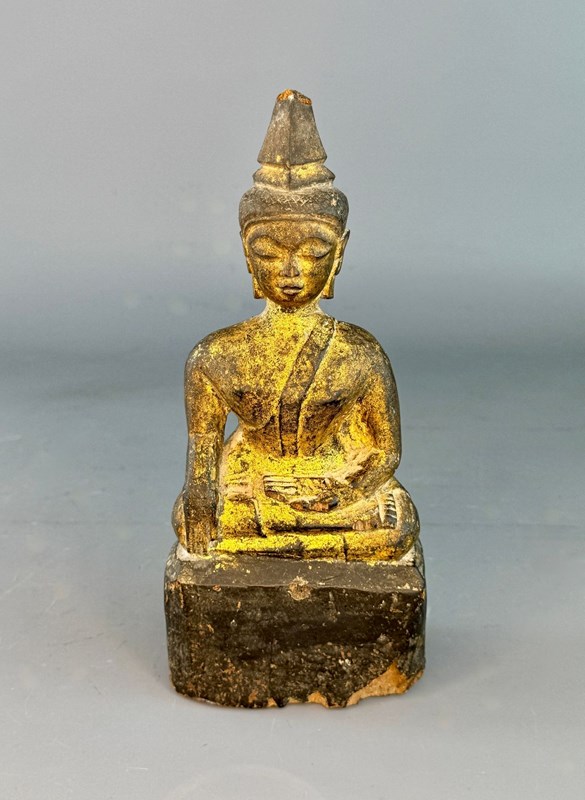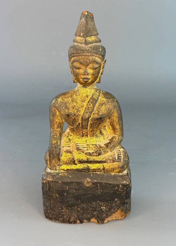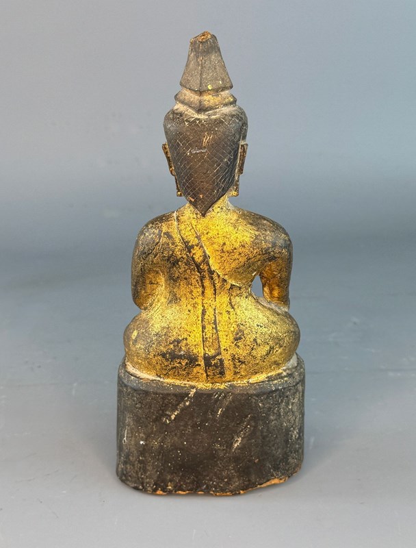 Antique Thai Carved & Gilded Buddha In Bhumisparsha Mudra