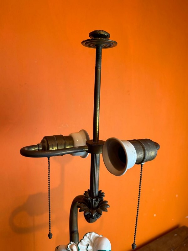 In excellent, working, condition, the bulb holders take large screw-in bulbs which are a typical American fiting. With an associated shade.
