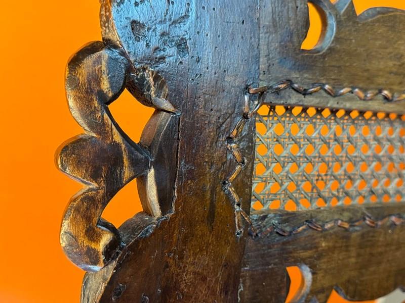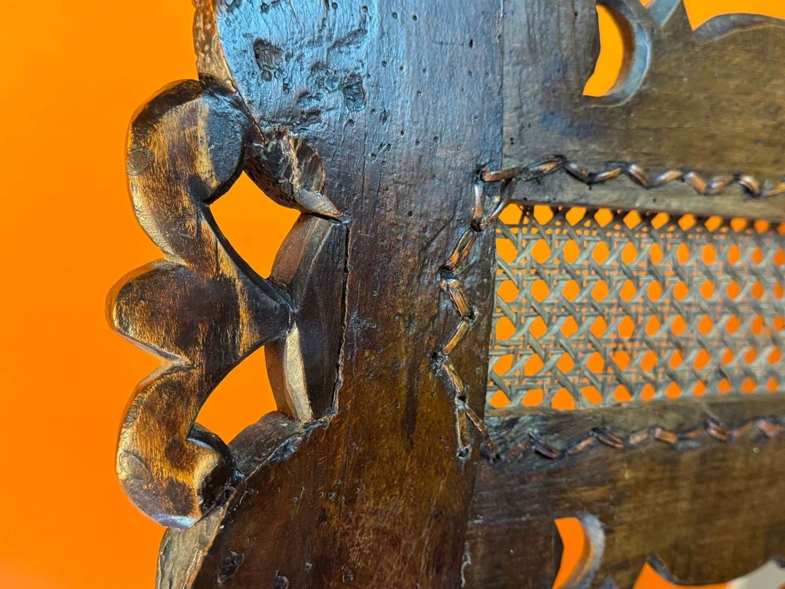 In good, sturdy condition overall including the canework. There are some old repairs, including on the toprail.