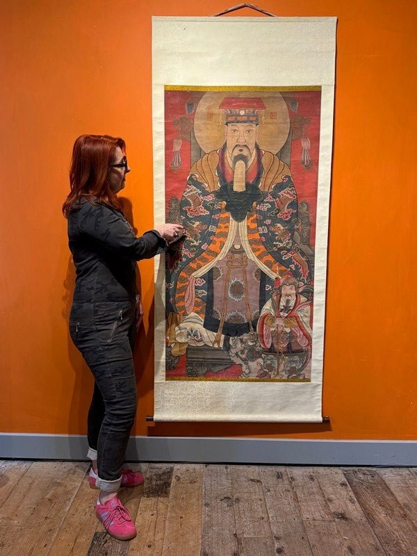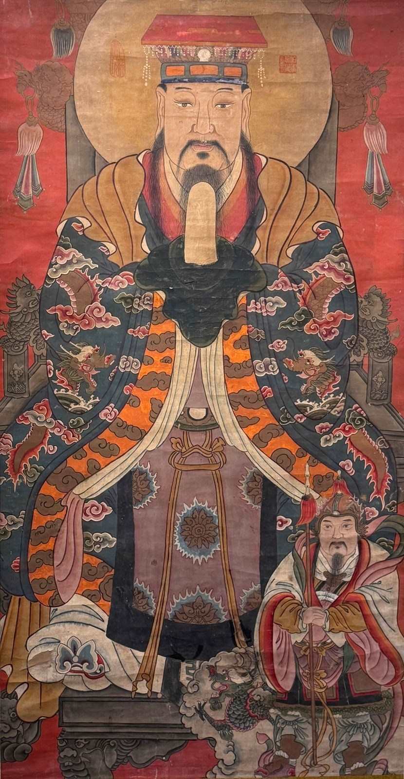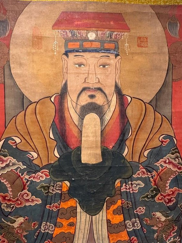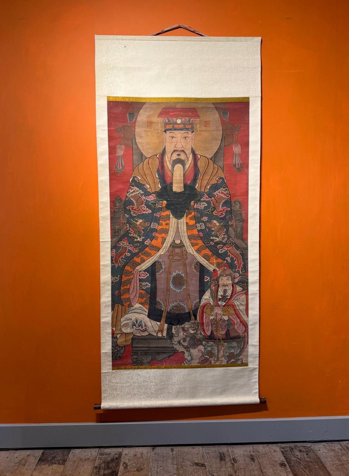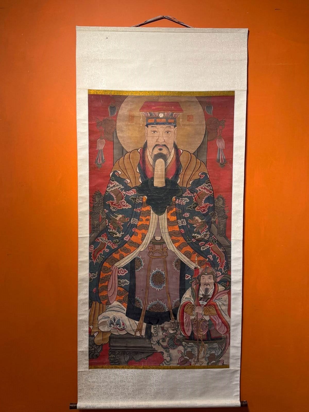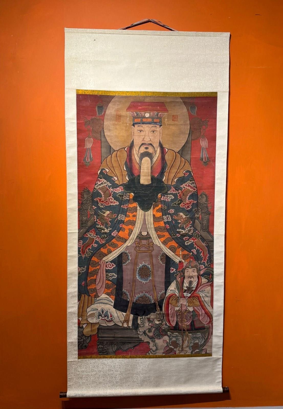 Chinese Qing Dynasty Scroll Painting Of The Daoist Immortal Jade Emperor