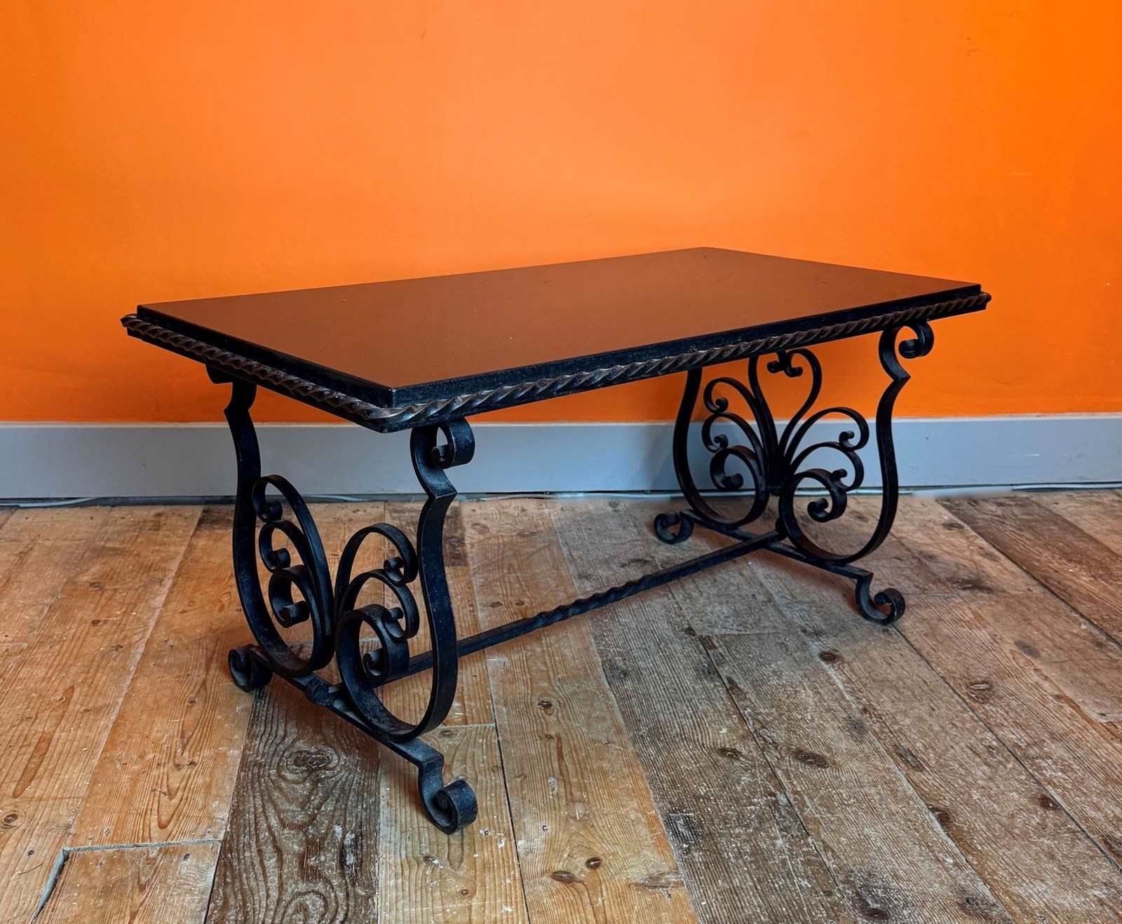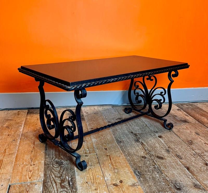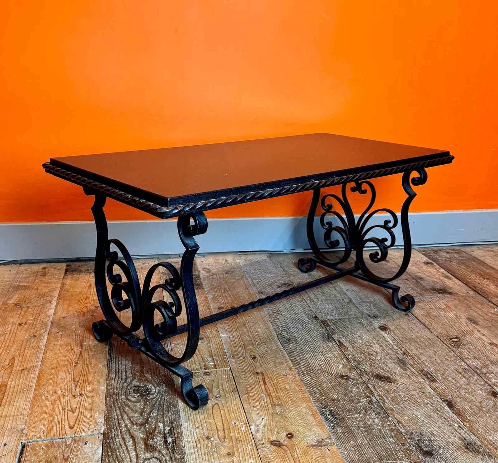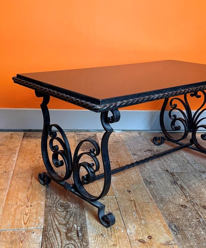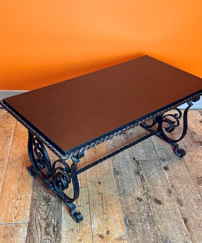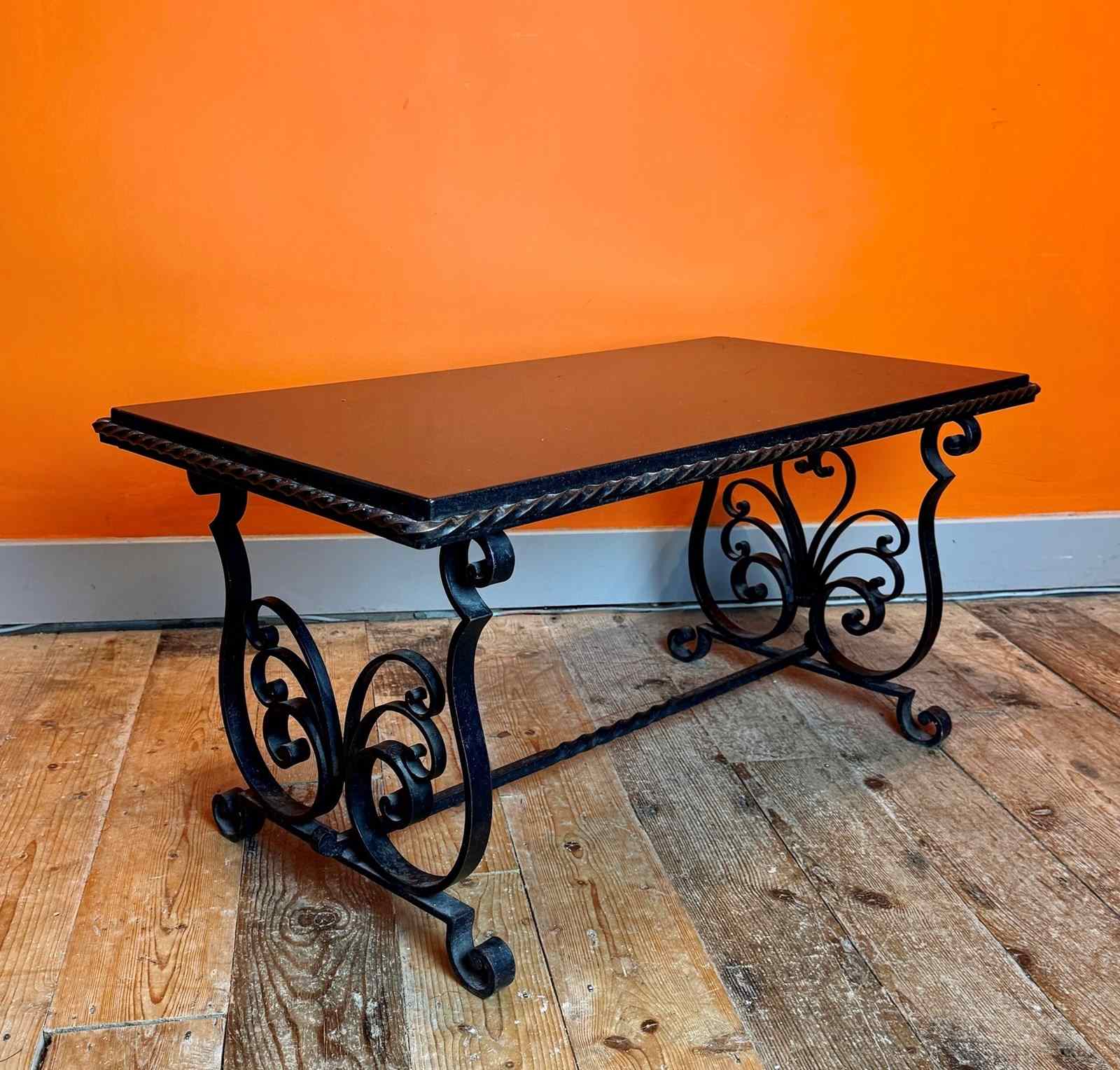 French Wrought Iron And Black Marble Coffee Table