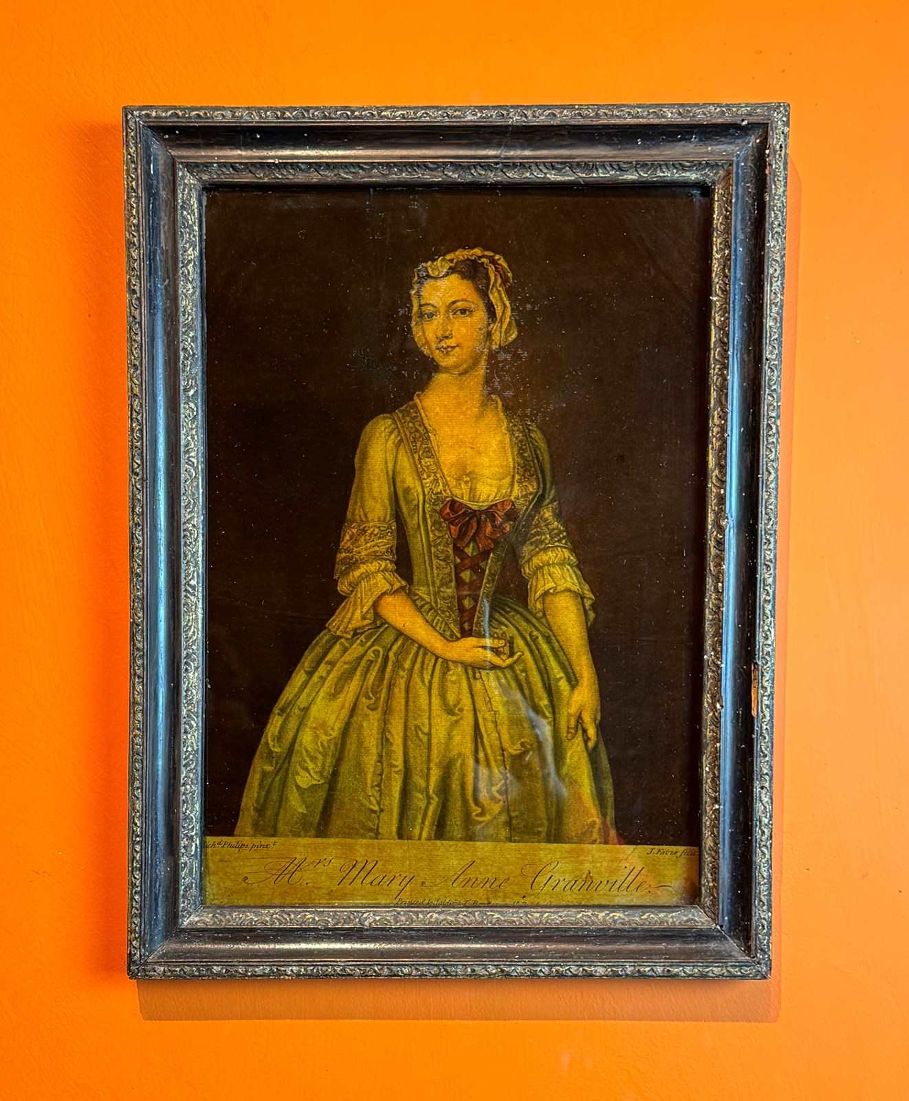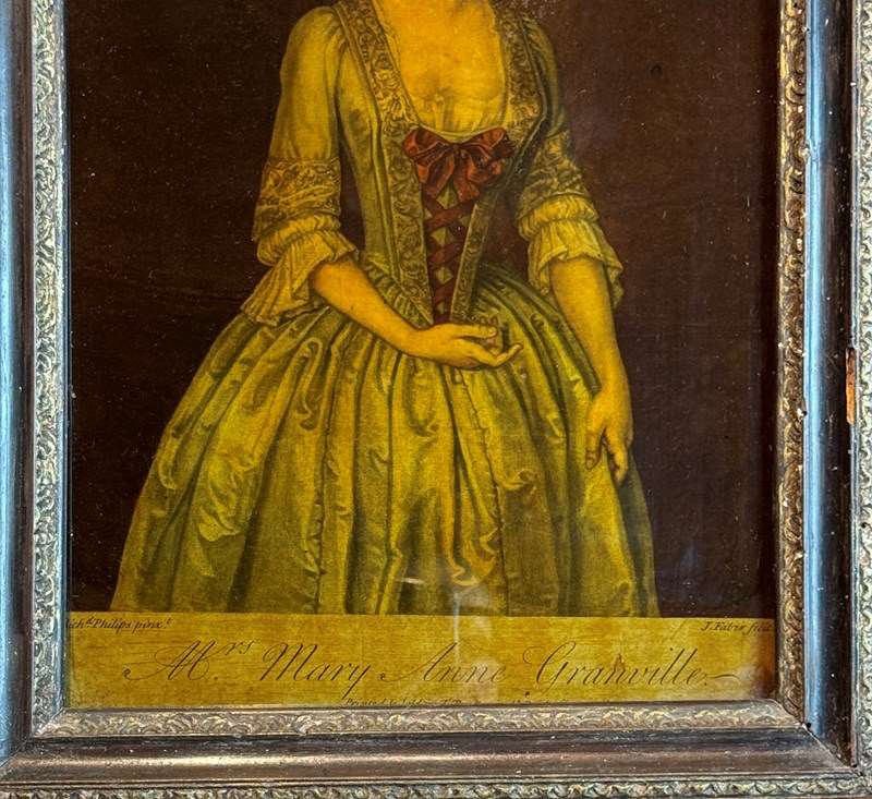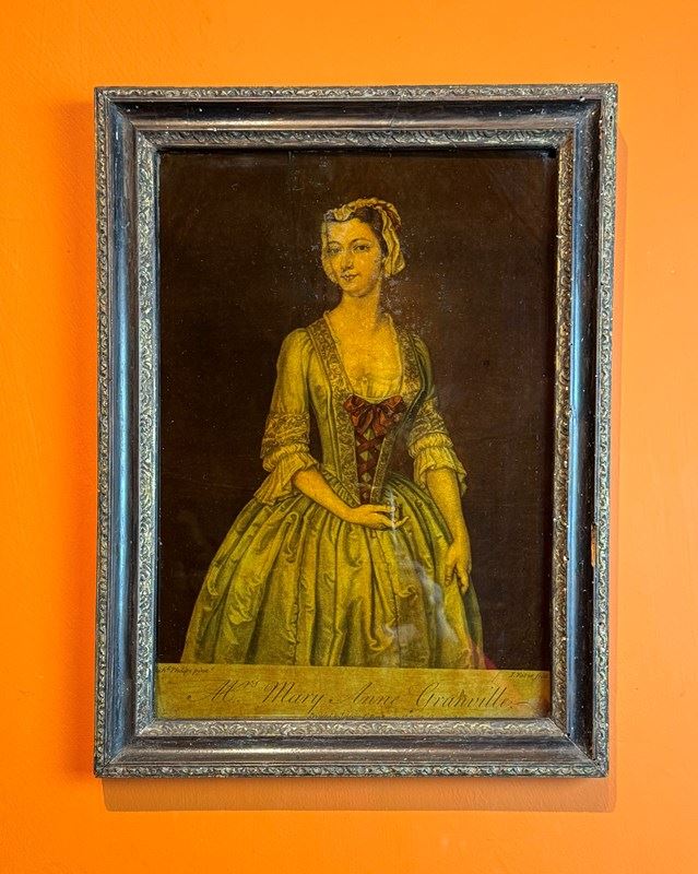 Georgian Reverse Glass Mezzotint Of Mrs Mary Anne Grenville