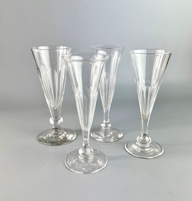 Harlequin Set Of Four Antique Cut Glass Chapagne Flutes