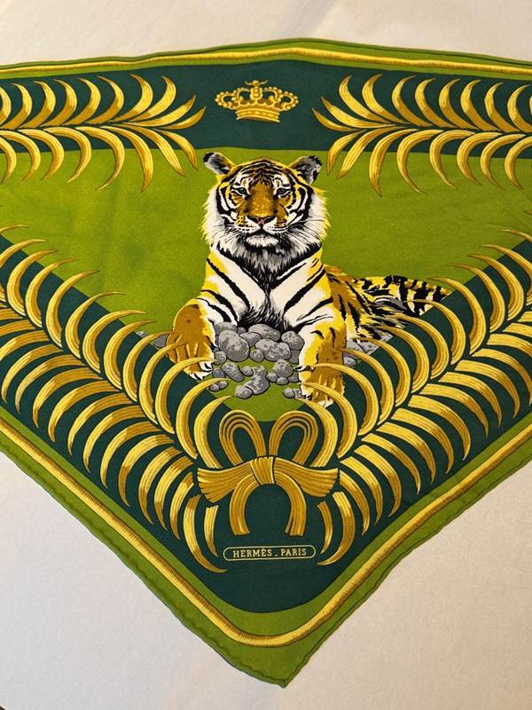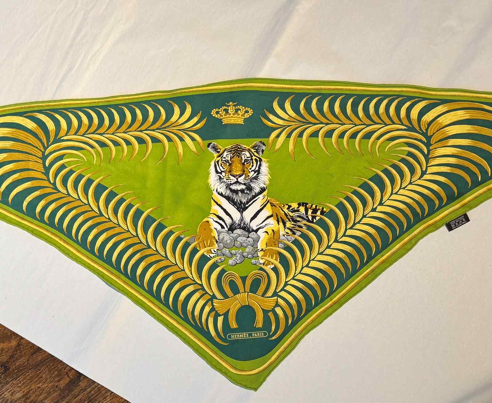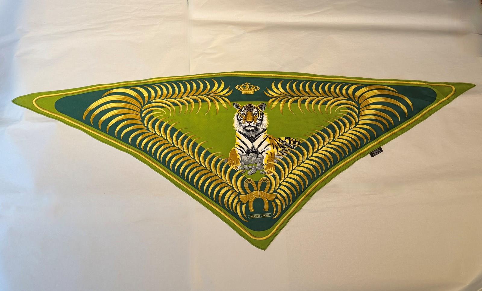 Hermes 'Tigre Royal' Triangular Silk Scarf Designed By Christian Vauzelles