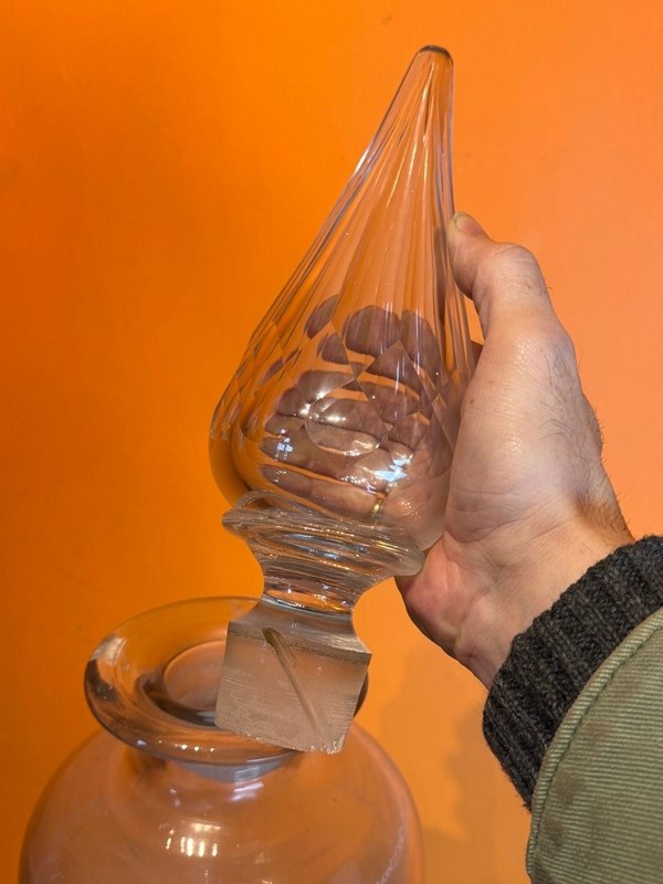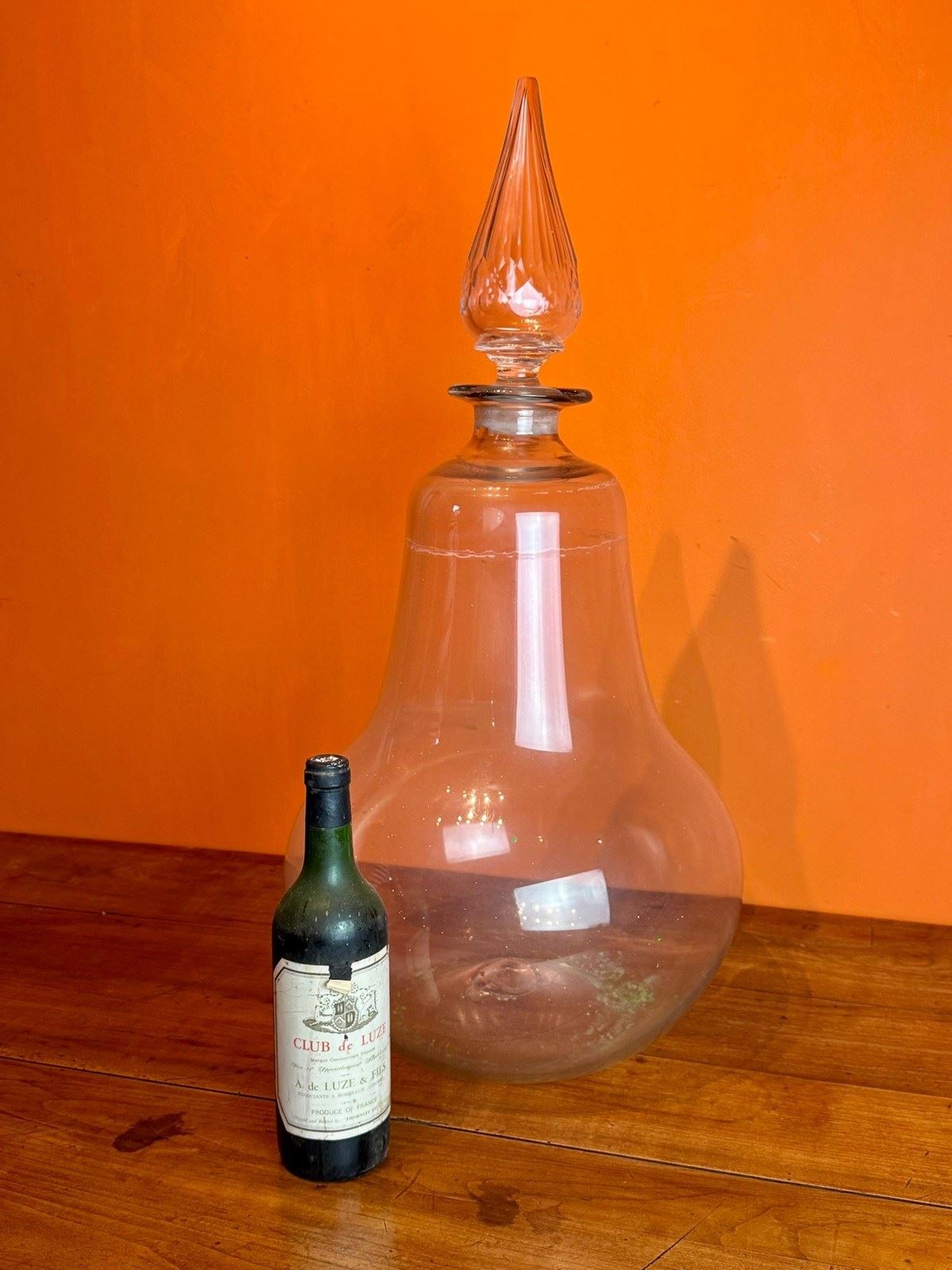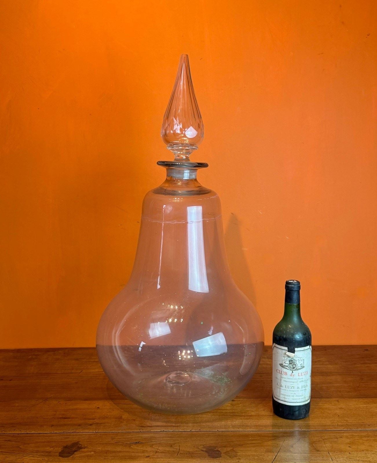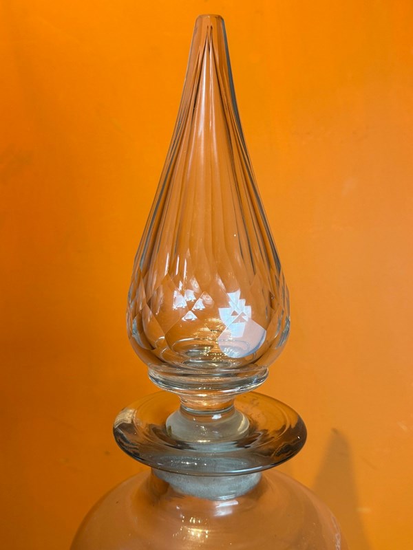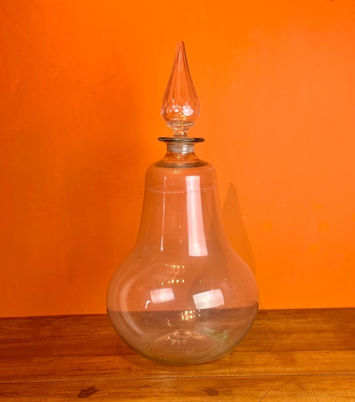 A large Victorian blown glass pharmacy display carboy, of hourglass form with cut glass stopper. These carboys were filled with coloured water and used as an advertising display in chemist shop windows.