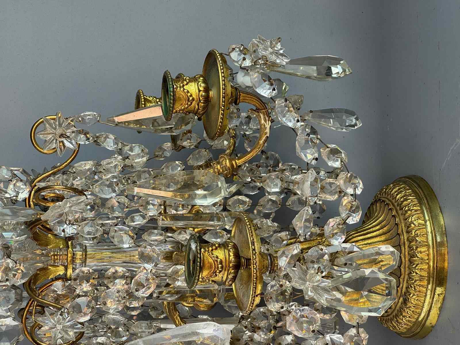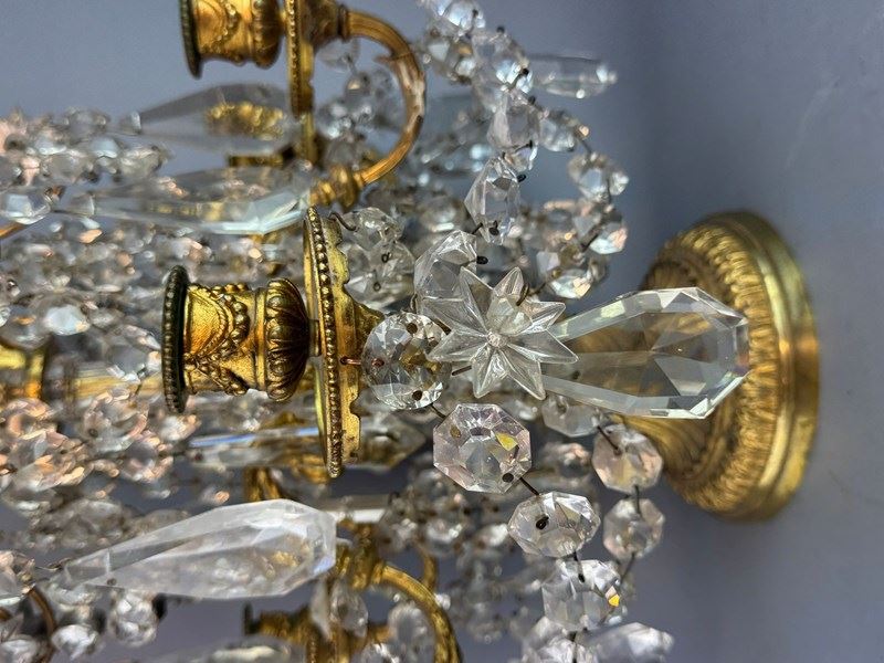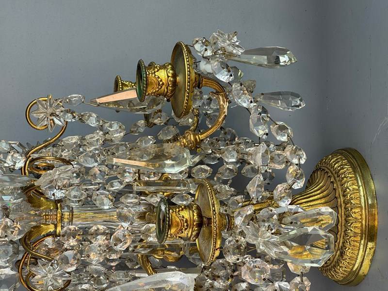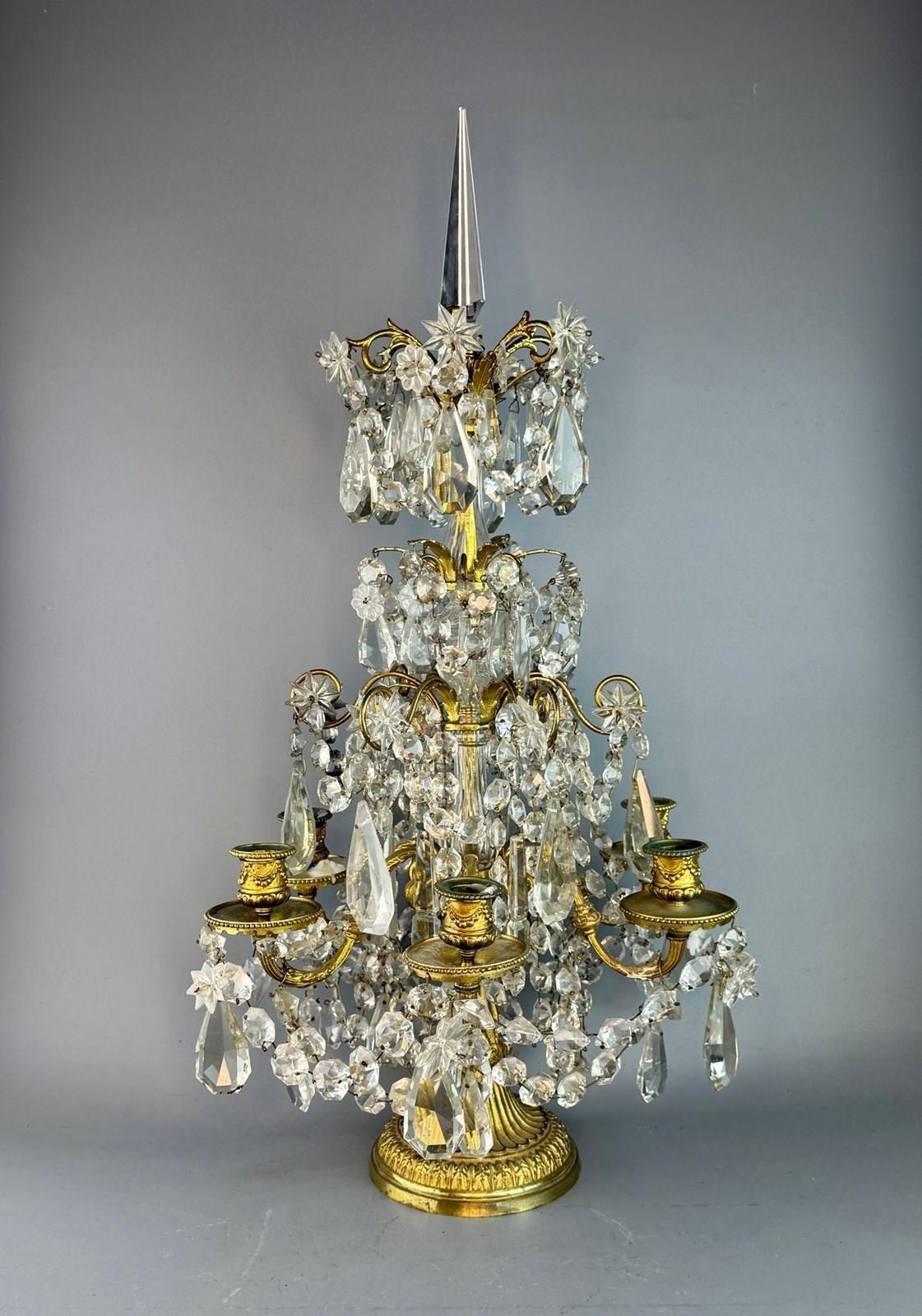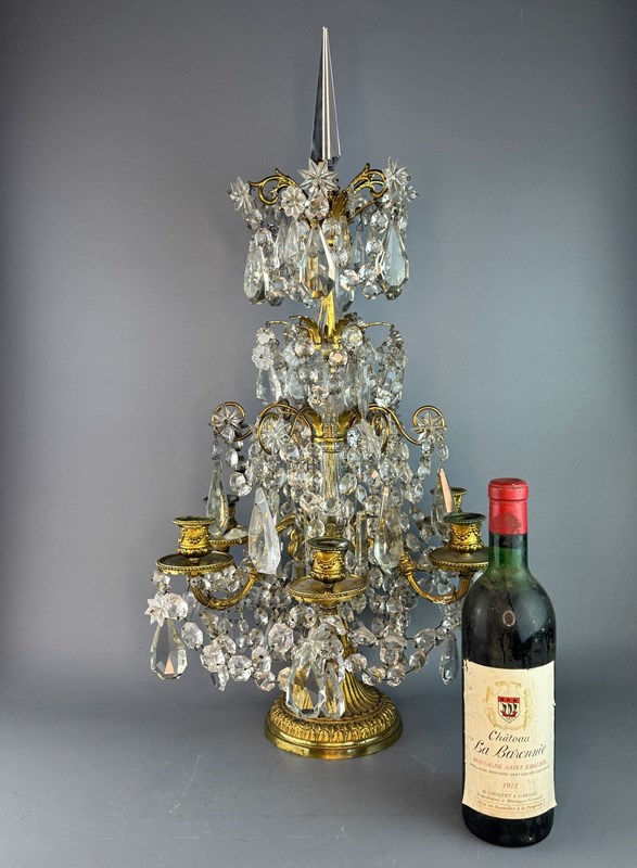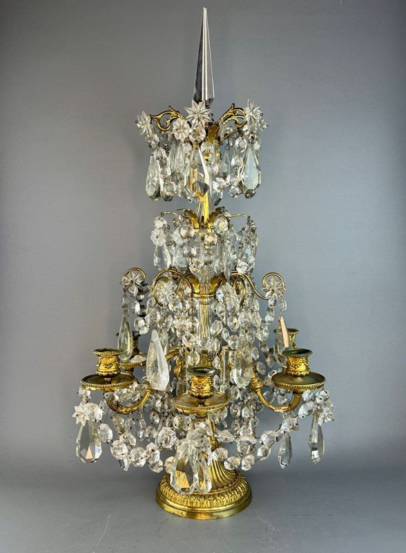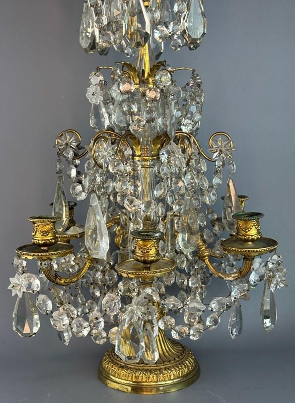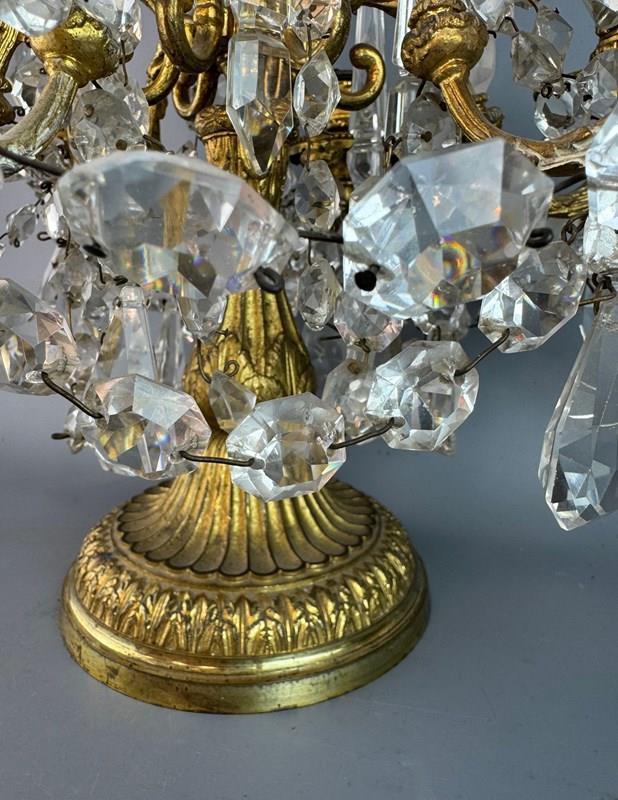 Large French Gilt-Brass Table Lustre Candelabra Hung With Cut Glass Drops