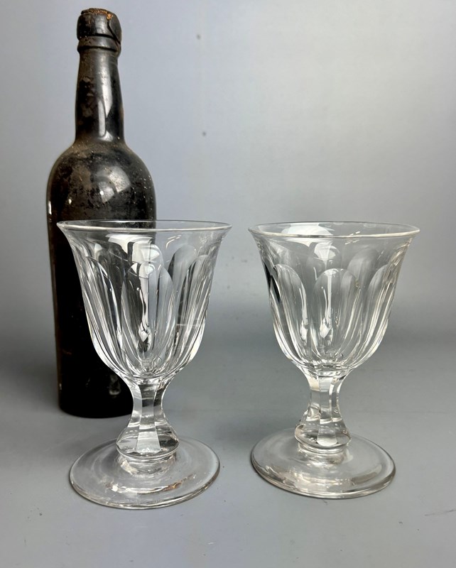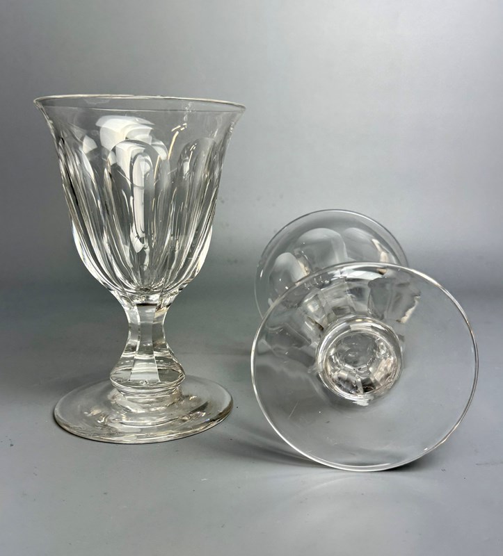 Large Pair Of Victorian Cut Glass Rummers / Wine Glasses