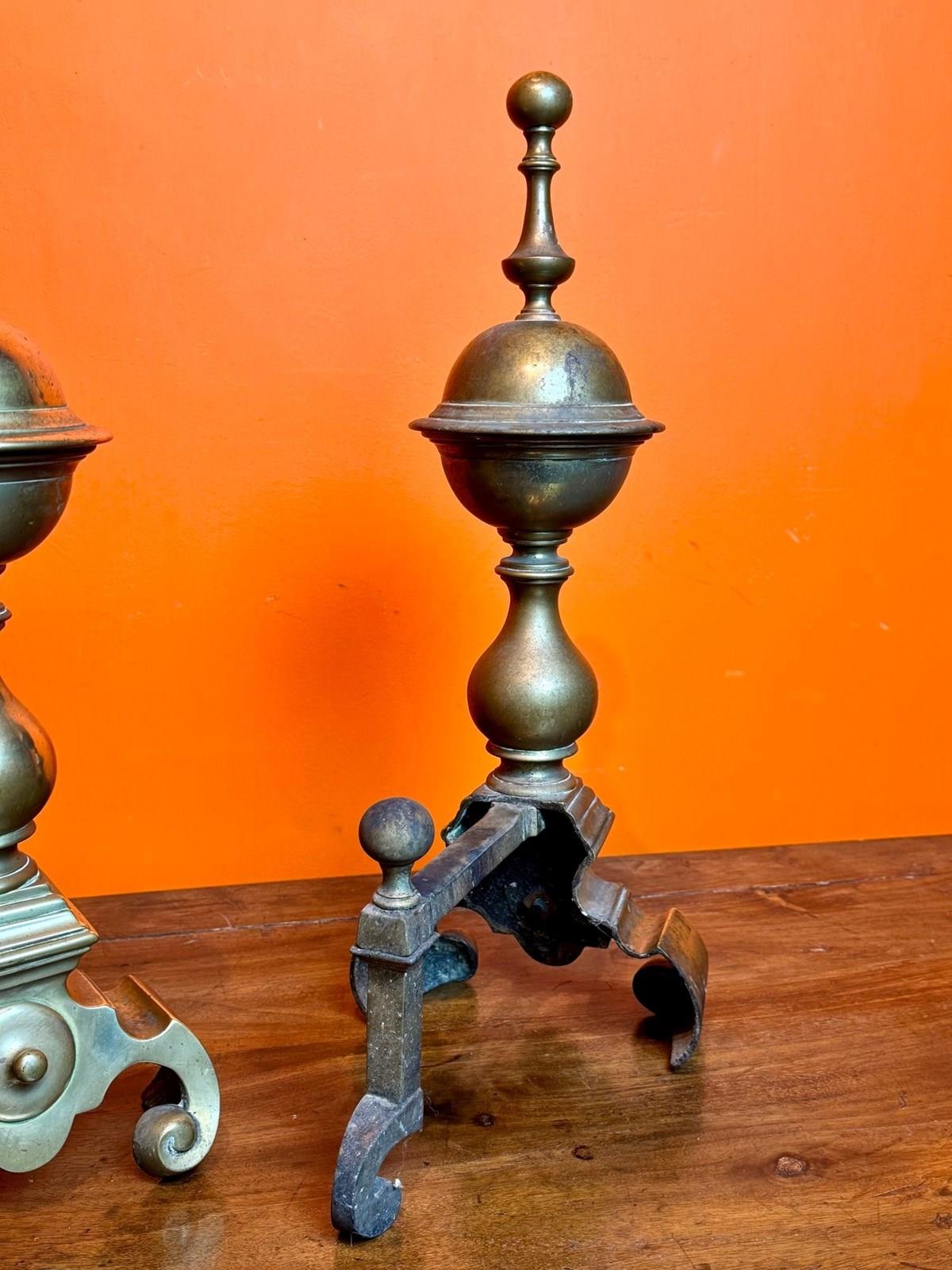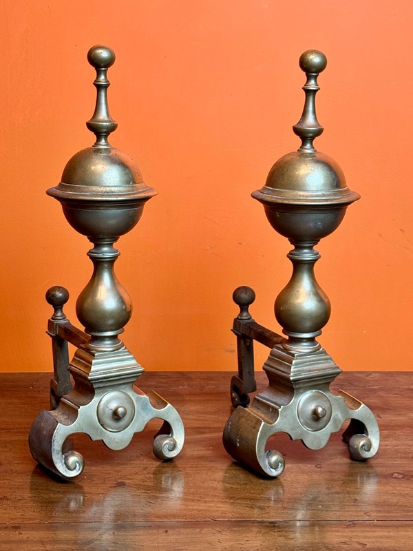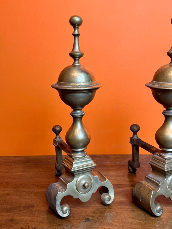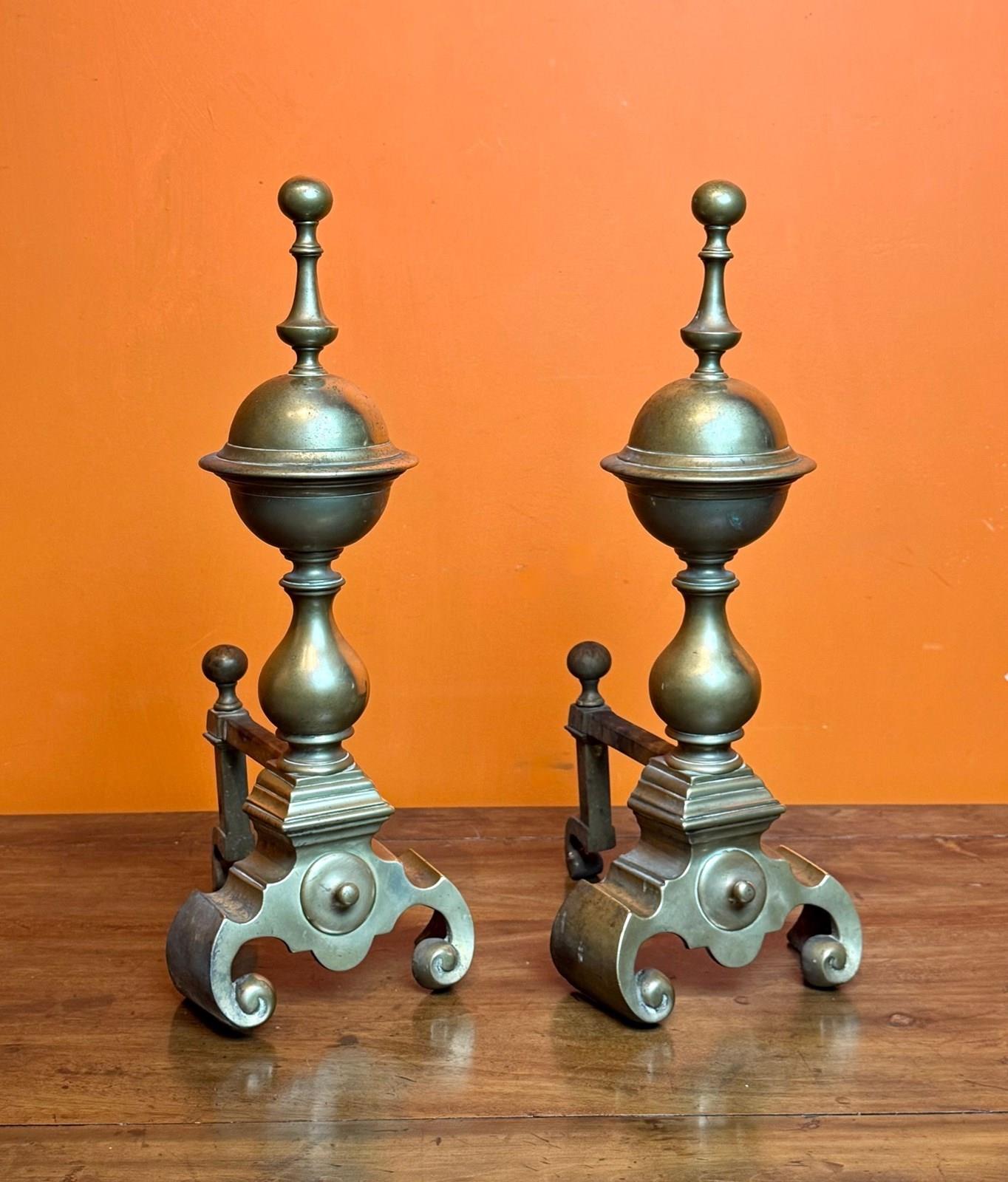 Pair Of 19Th Century Brass Andirons In 17Th Century Style