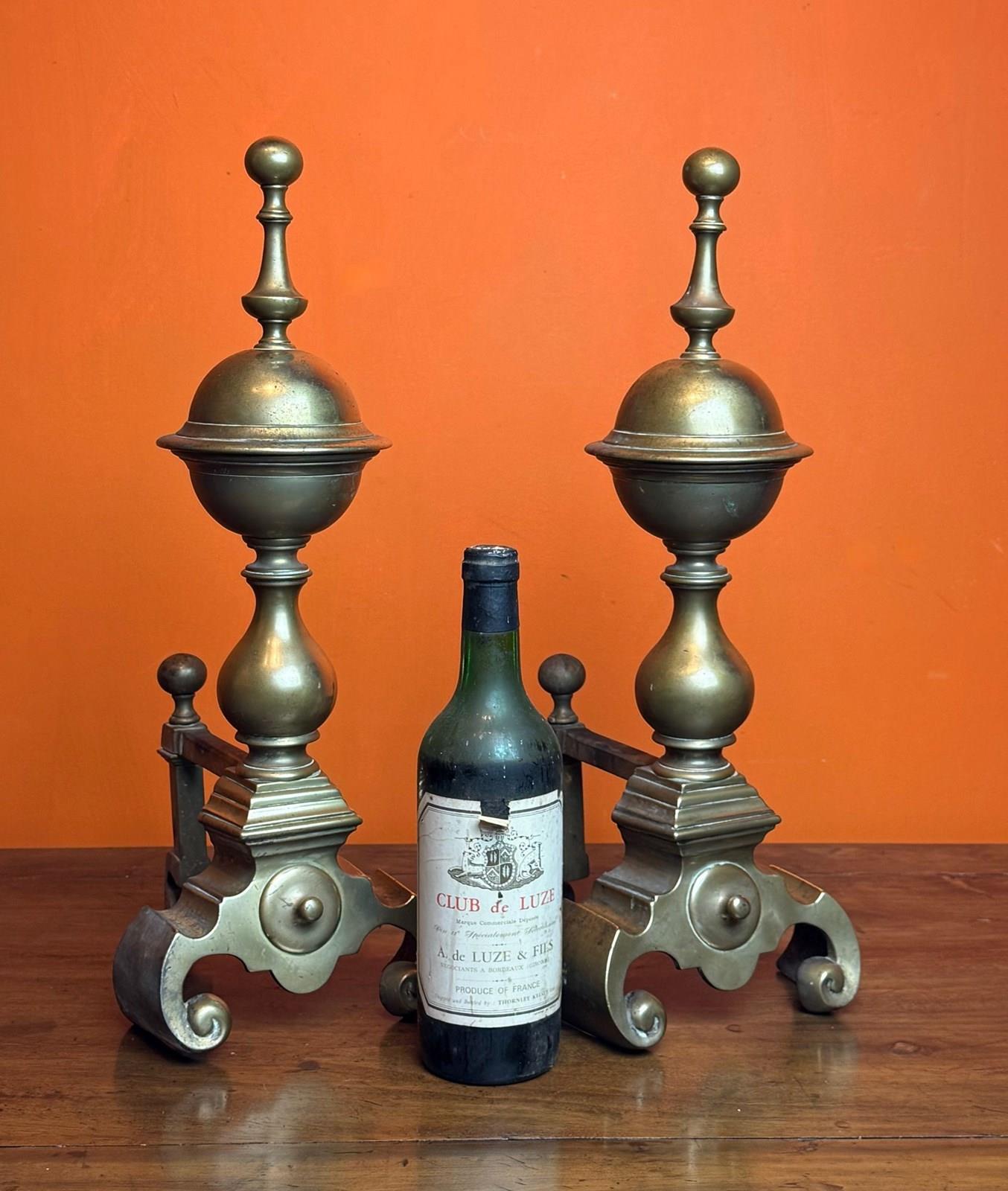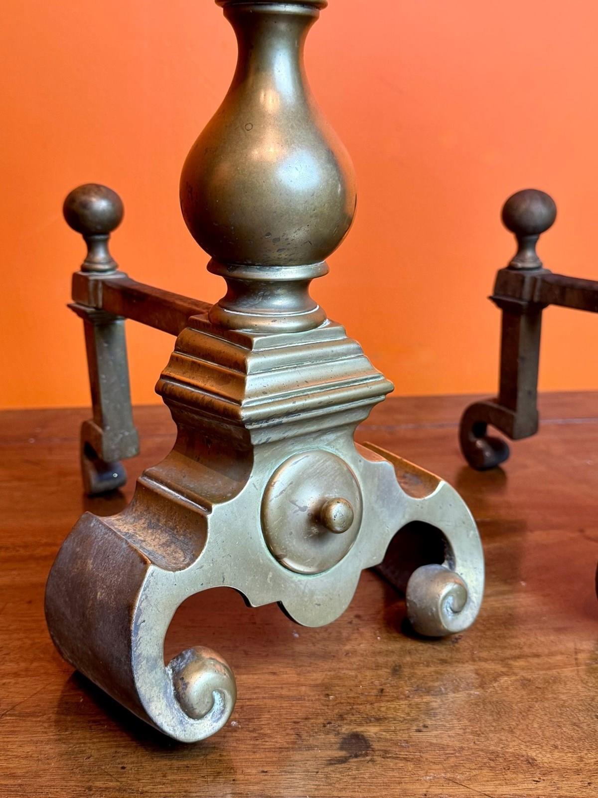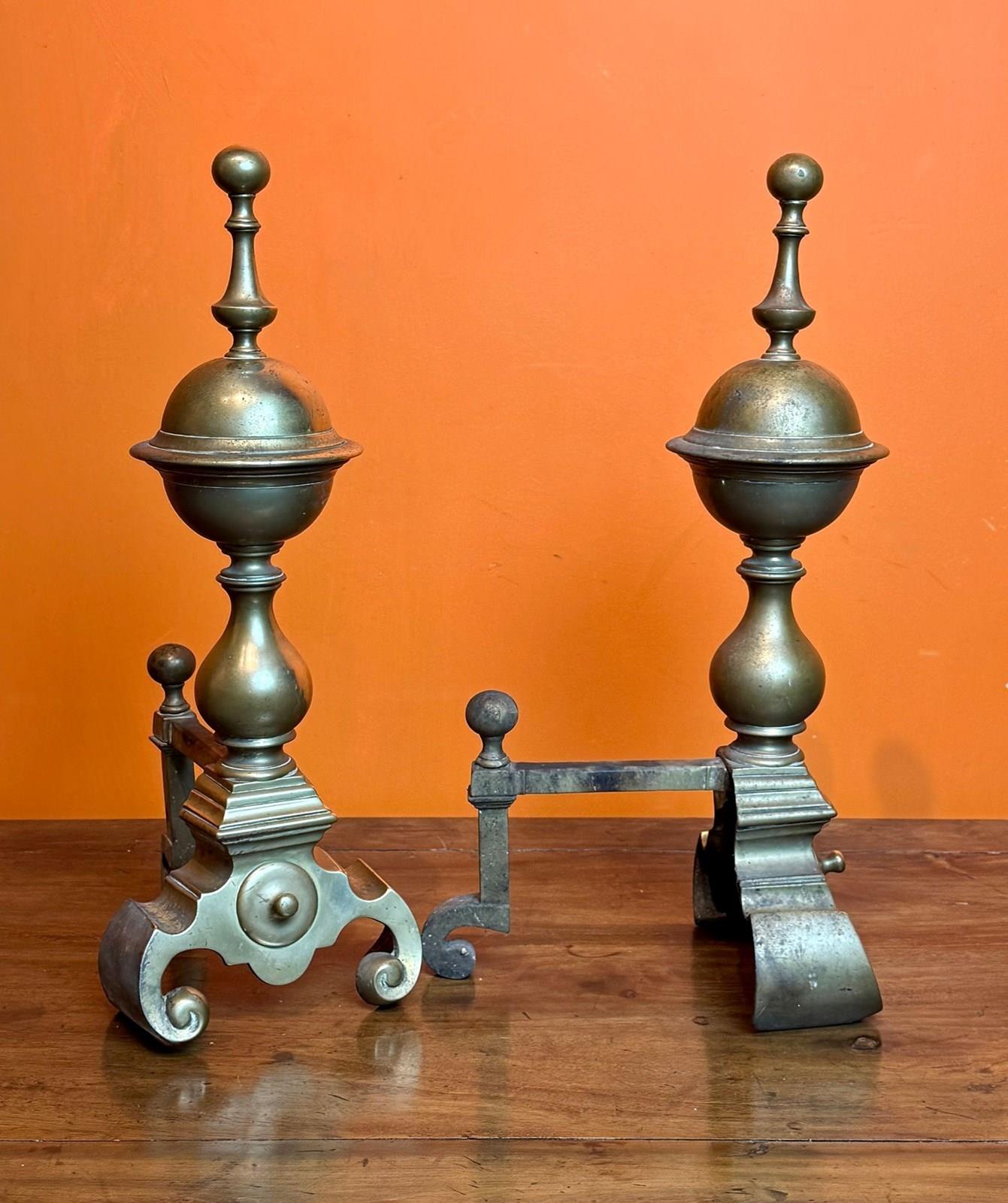 Pair Of 19Th Century Brass Andirons In 17Th Century Style