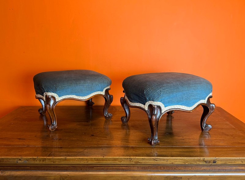Pair Of 19Th Century Rosewood Footstools On Scroll Supports