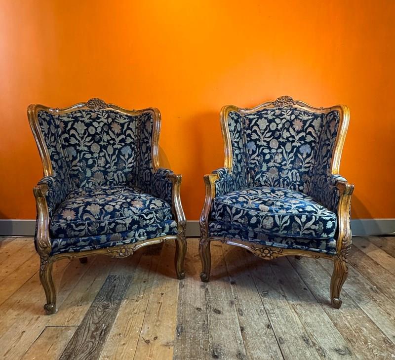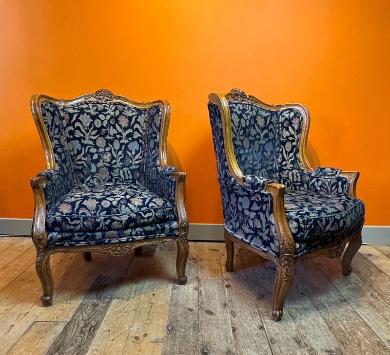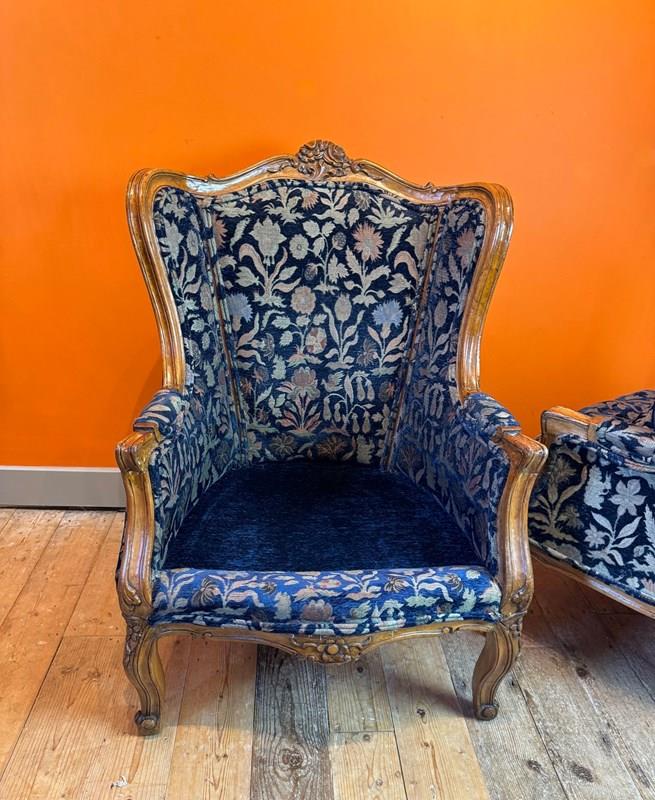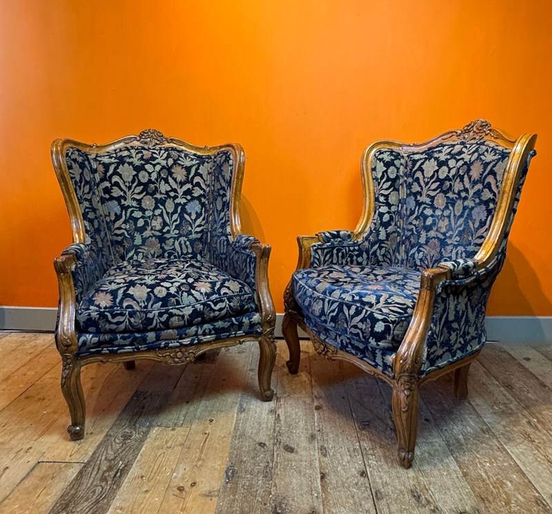 Pair Of Antique French Walnut Louis XV Style Armchairs