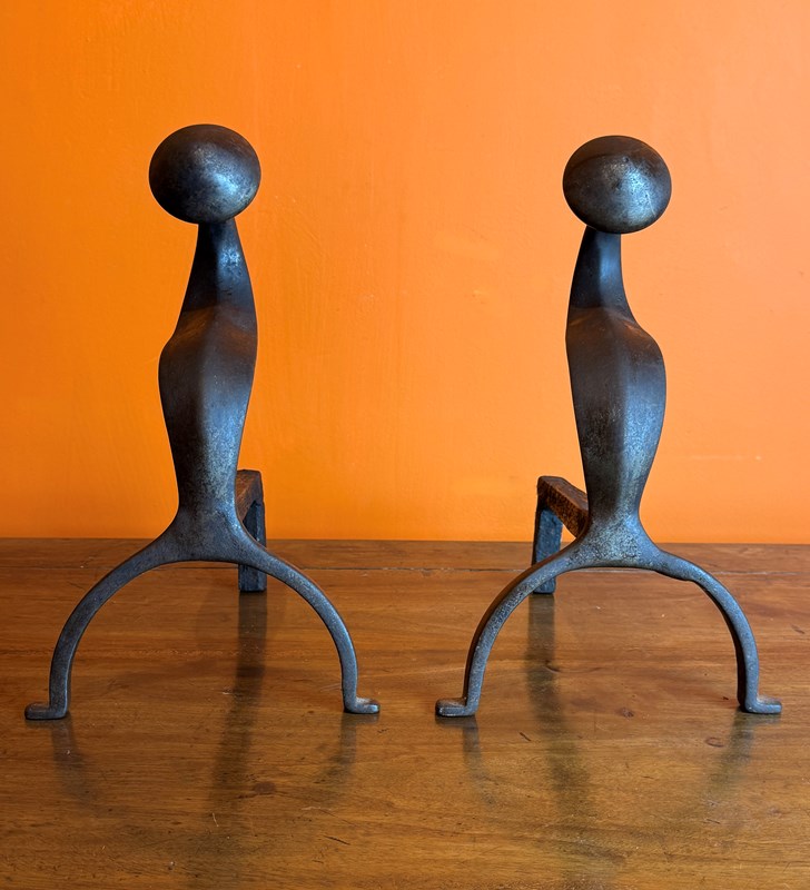 Pair Of Arts & Crafts Wrought Iron Andirons