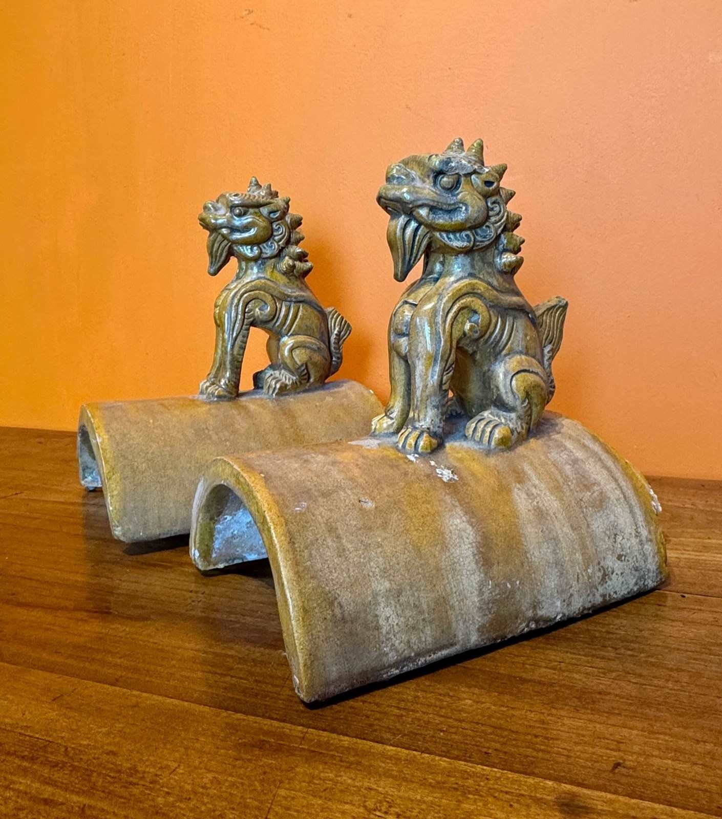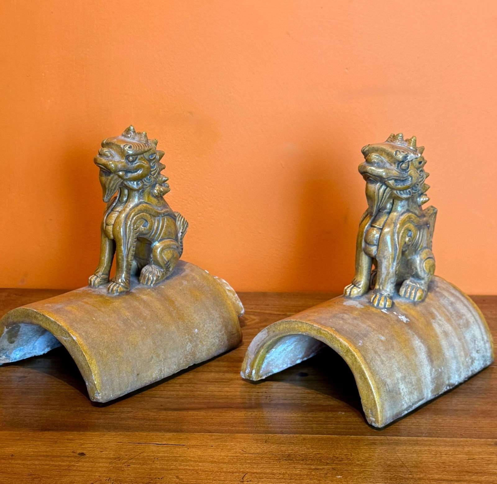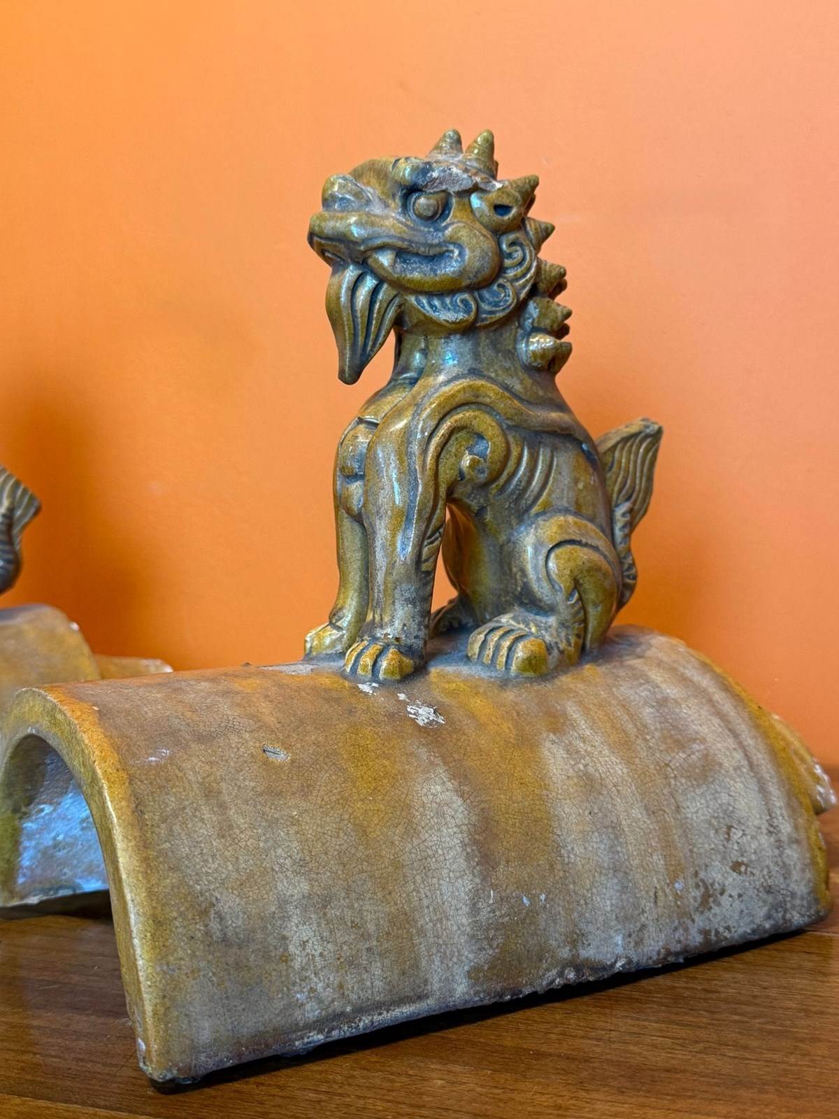 Pair Of 19Th Century Chinese Qing Dynasty Lion Roof Tiles