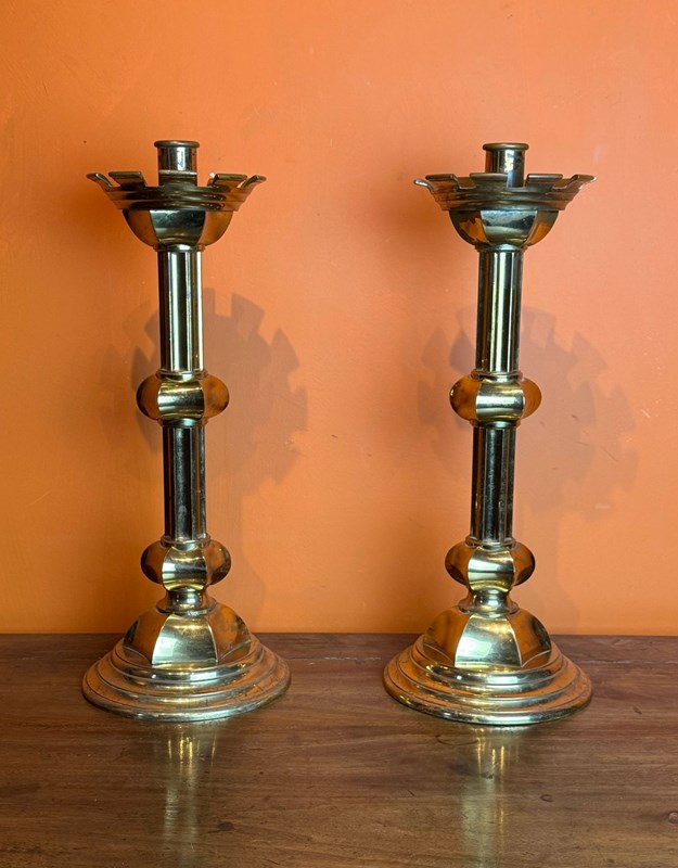 Pair Of Gilt-Brass Ecclesiastical Candlesticks