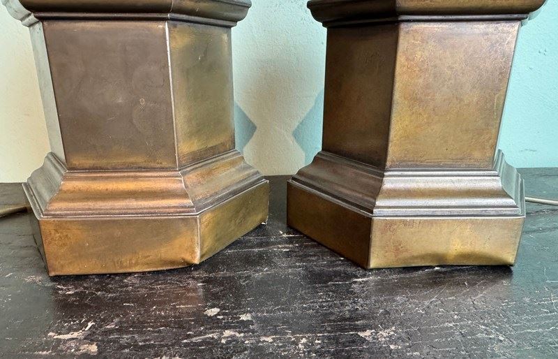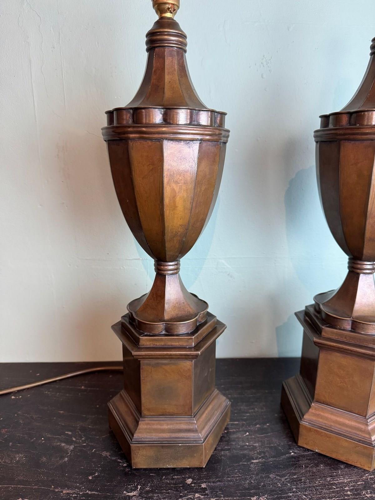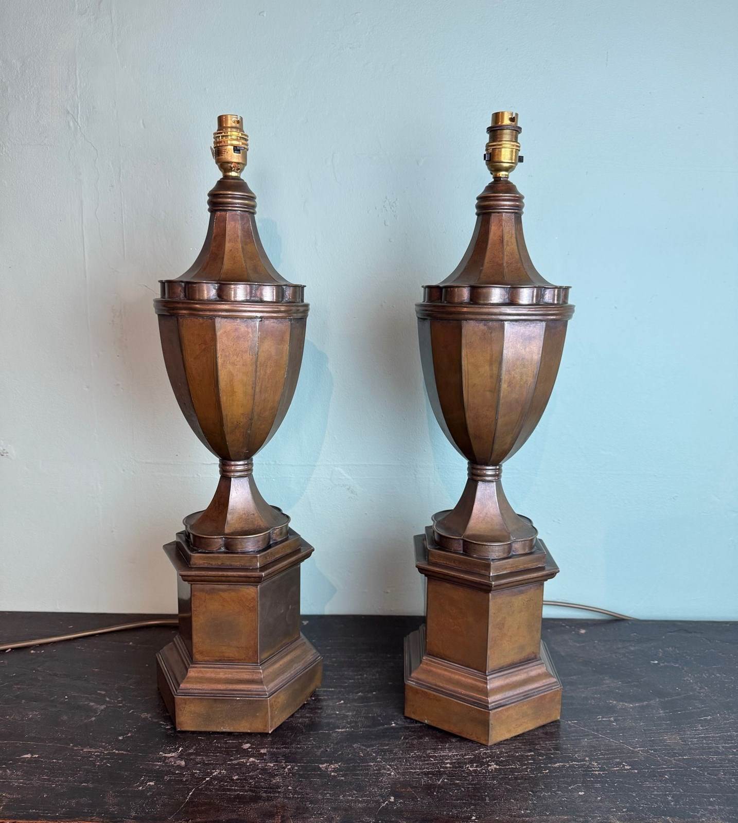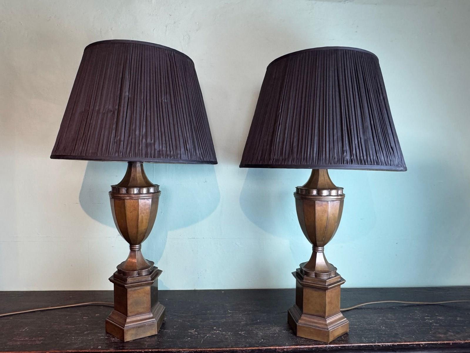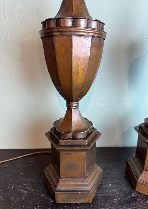 Pair Of Patinated Brass Urn Shaped Table Lamps