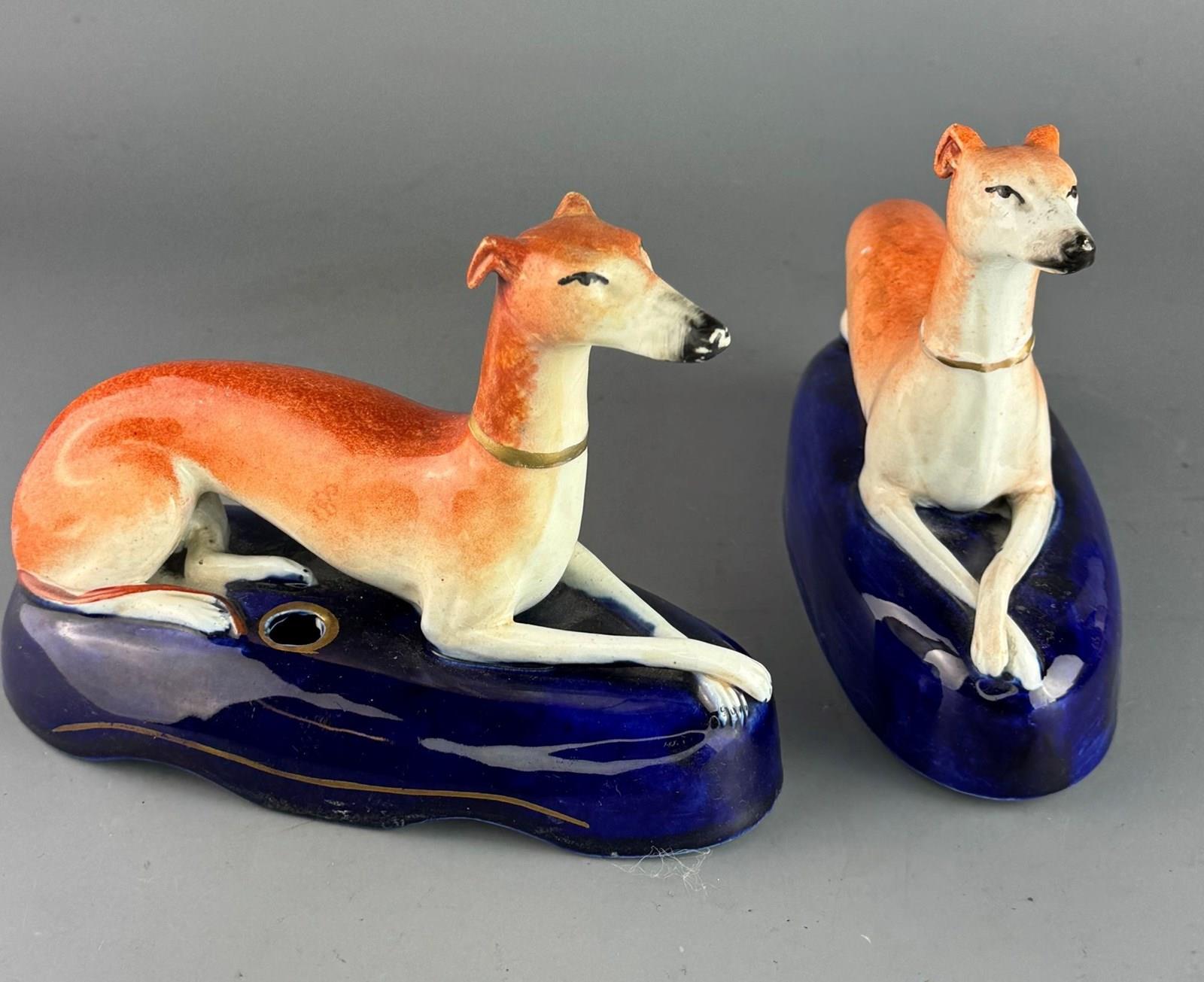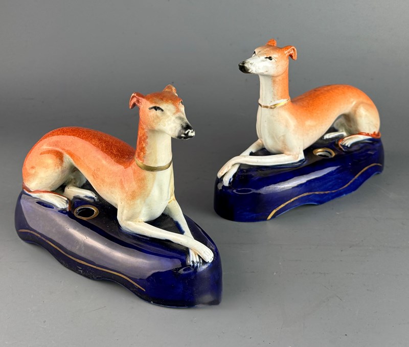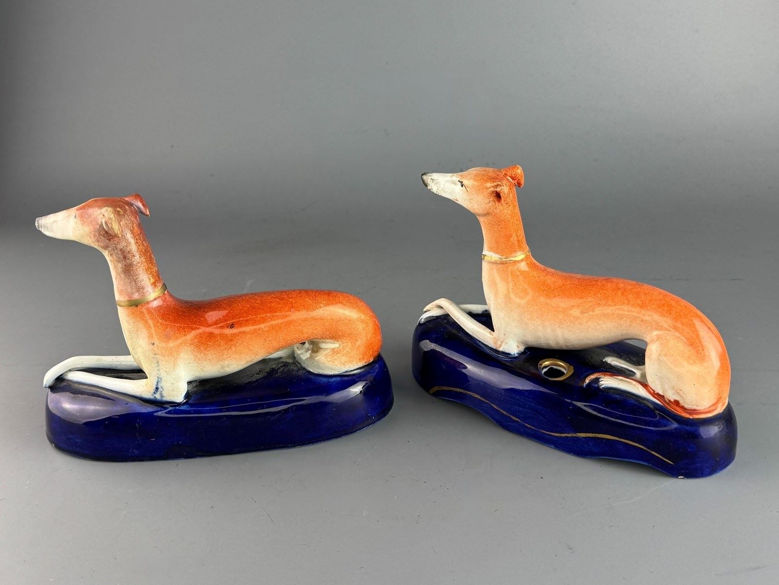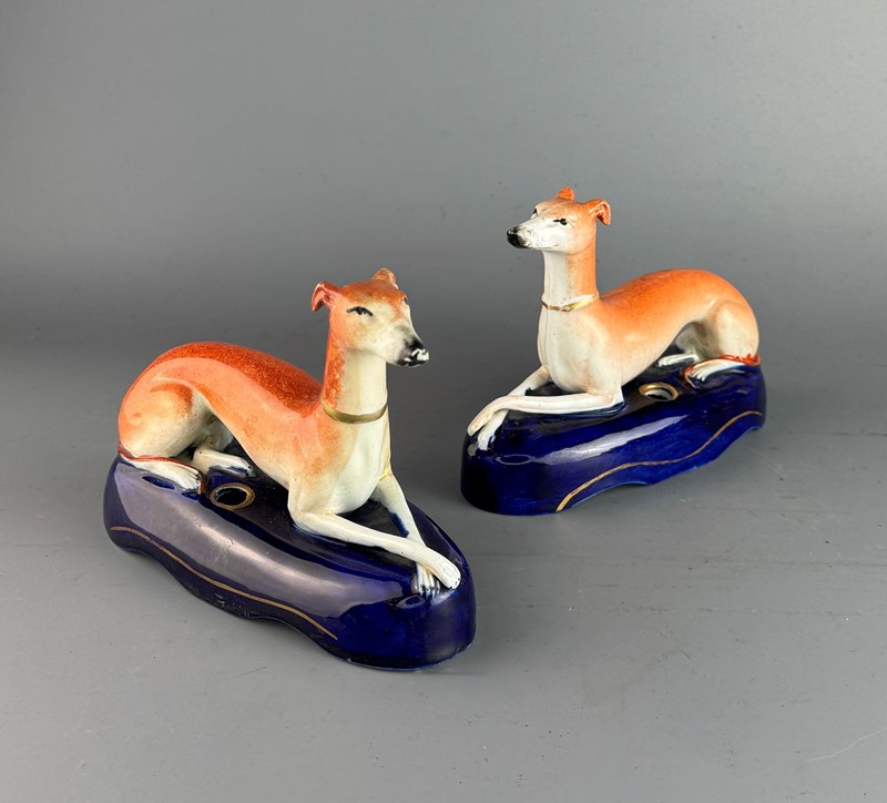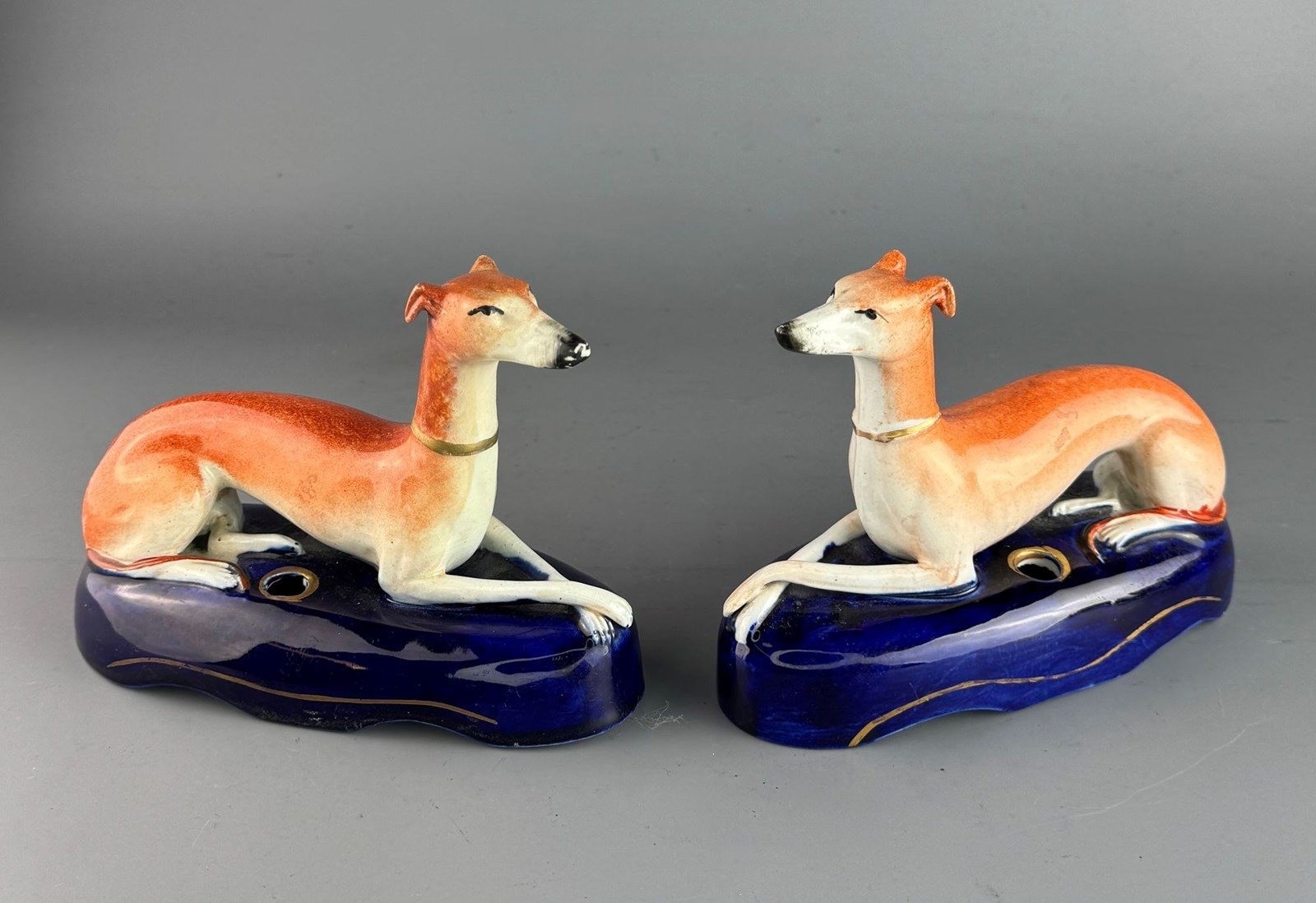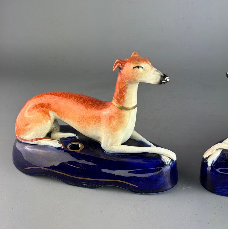 Pair Of Victorian Staffordshire Whippet Quill Holders