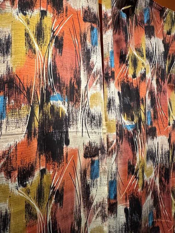 Pair Of Vintage 1950'S Abstract Print Curtains