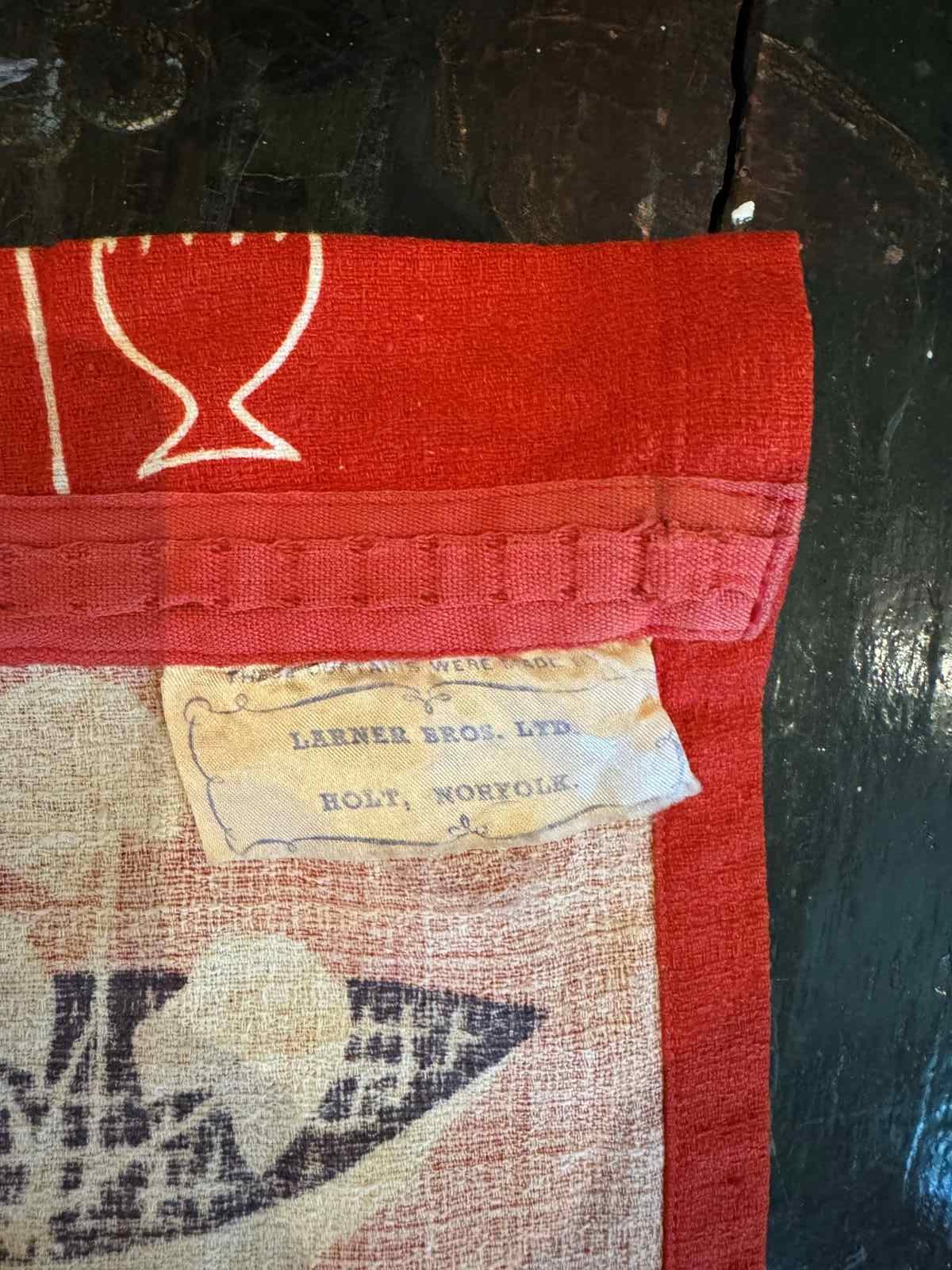 Pair Of Vintage 1950'S Barkcloth Red & White Curtains
