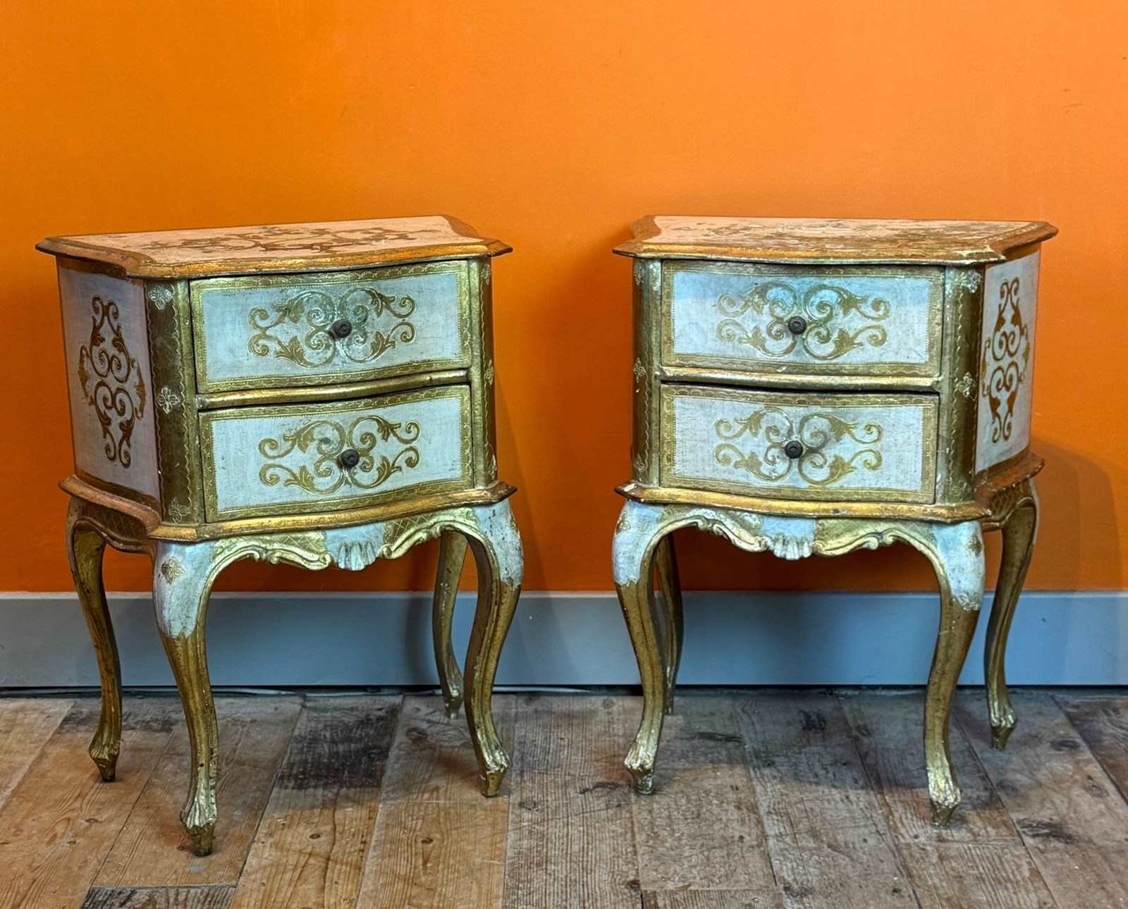 Pair Of Vintage Italian Florentine Gilt Bedside Chests