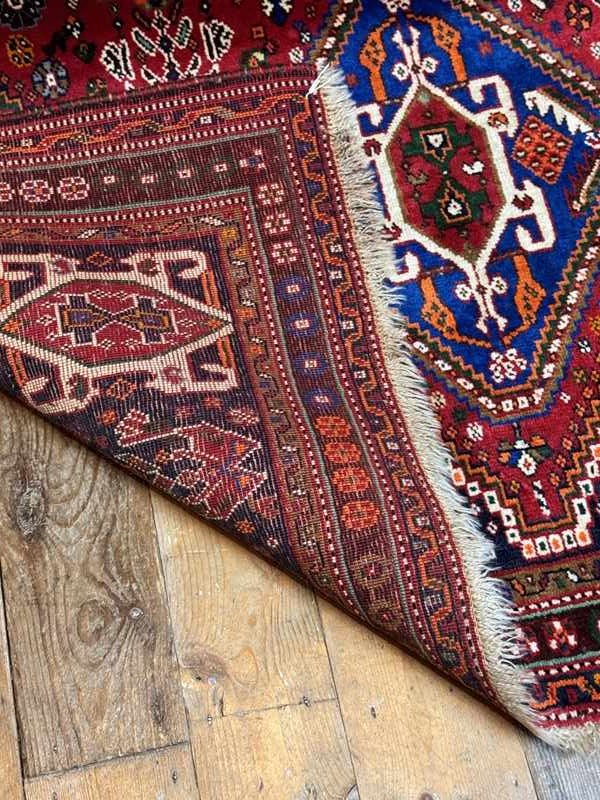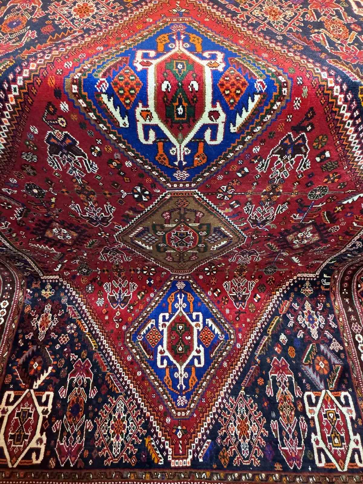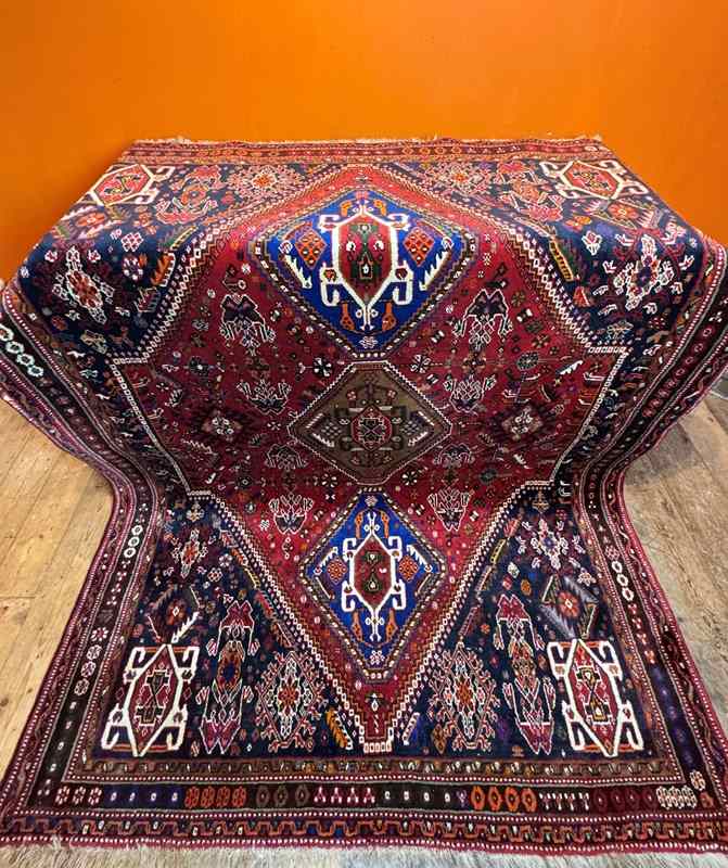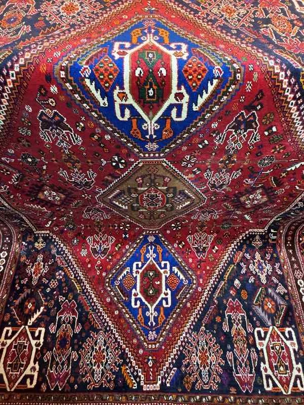 The Qashqai are nomadic, tribal people from the South West of Iran. The rugs are woven from the wool of the tribes own sheep and designs woven from memory rather than a set pattern. Typical colours are red, indigo and white.