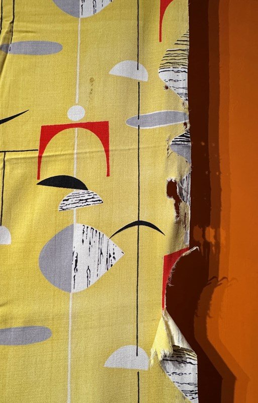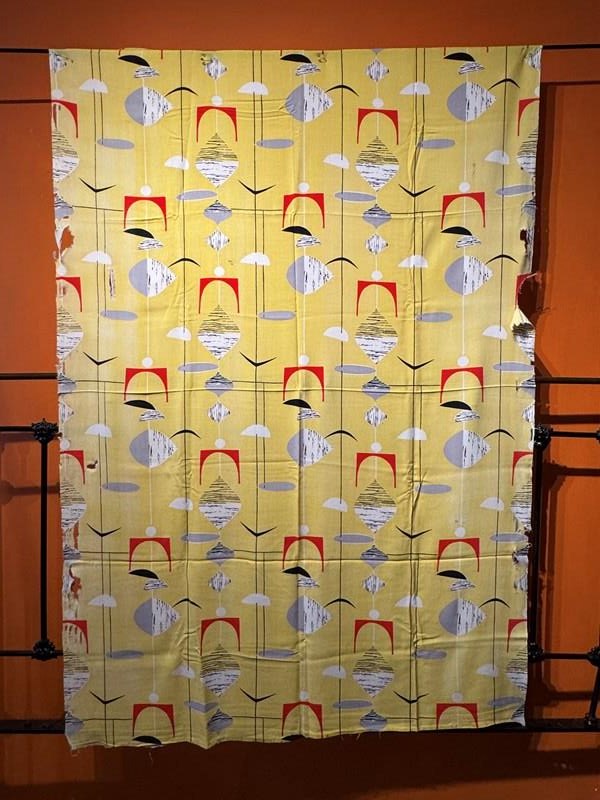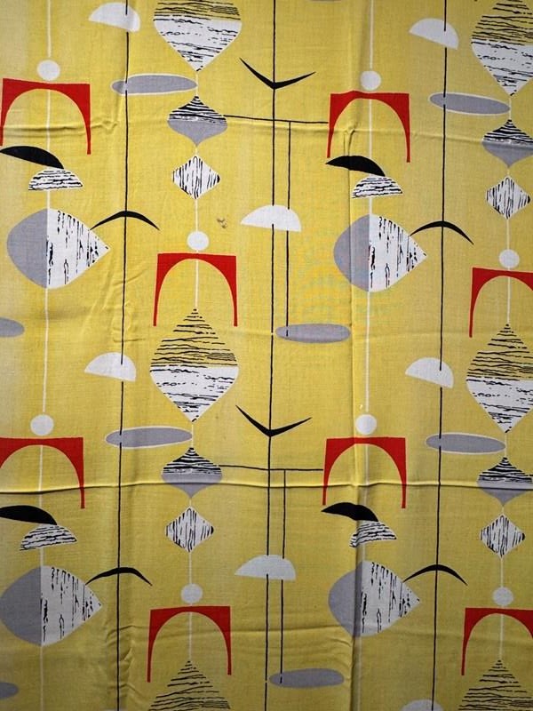 Rare Marian Mahler Mobile pattern fabric in the yellow colourway, designed circa1950 for David Whitehead.