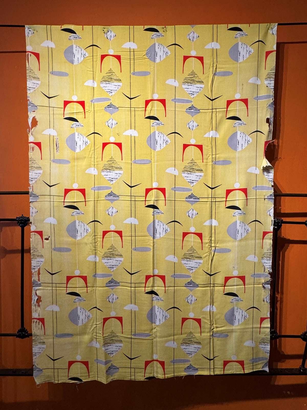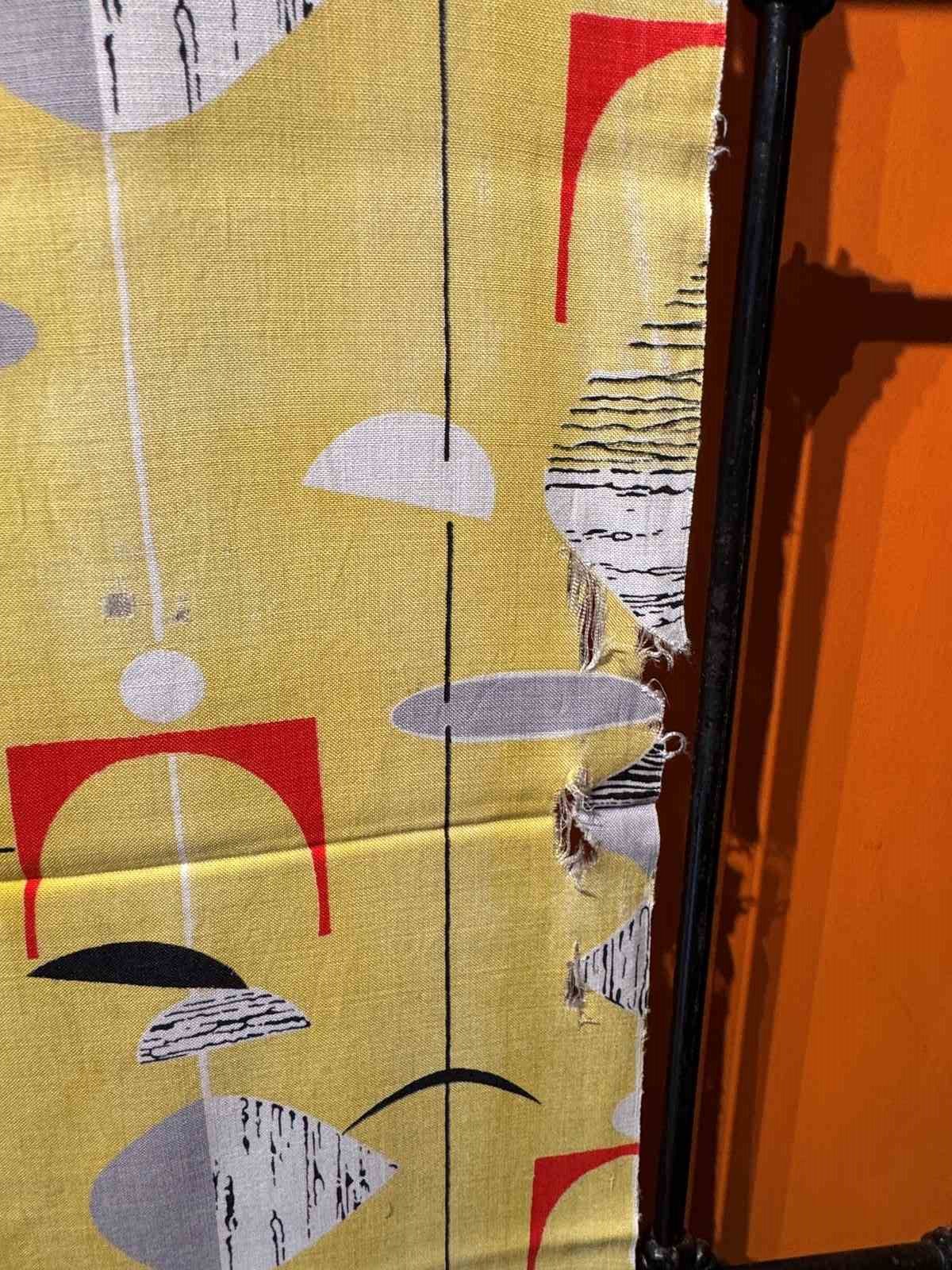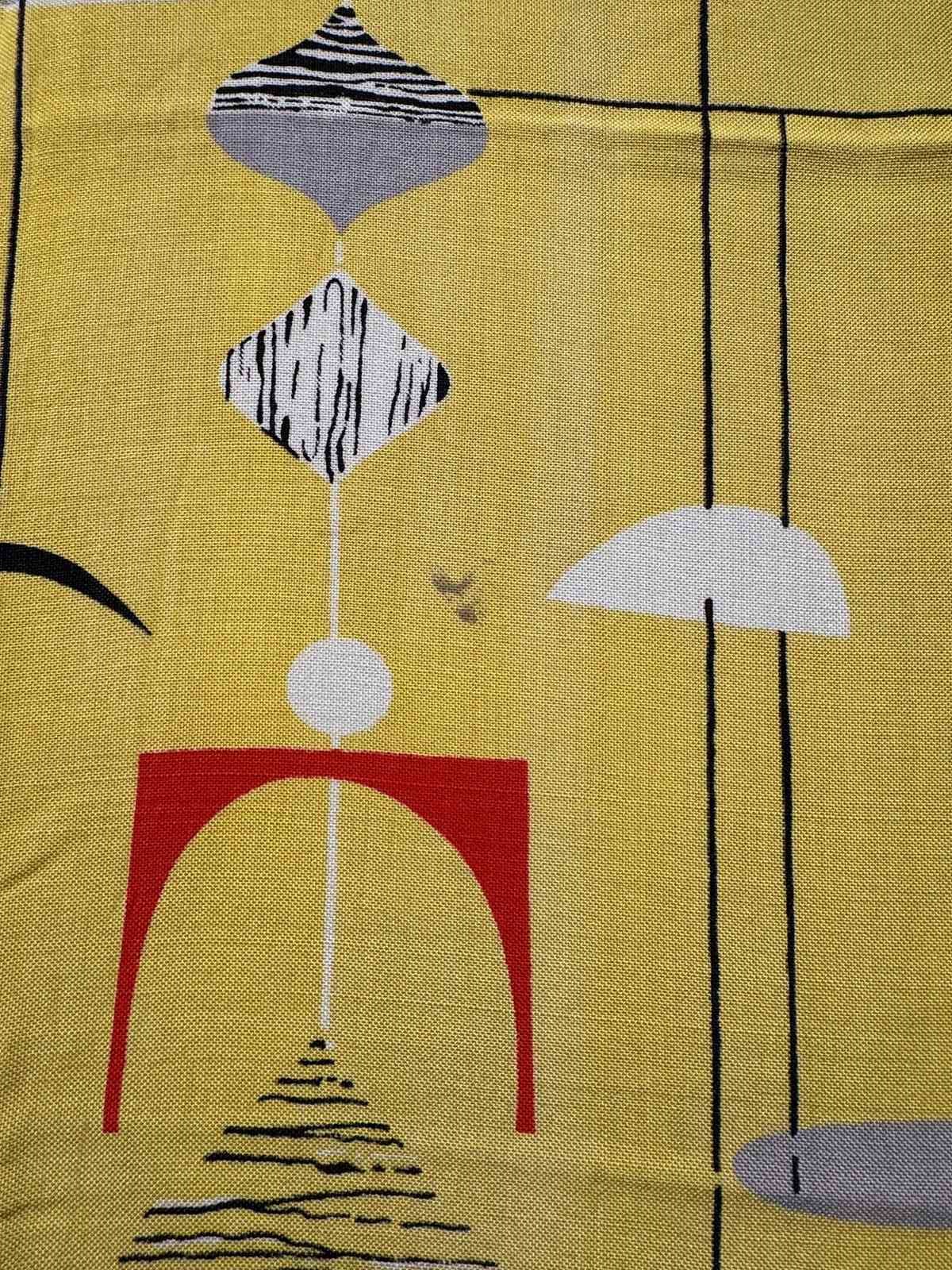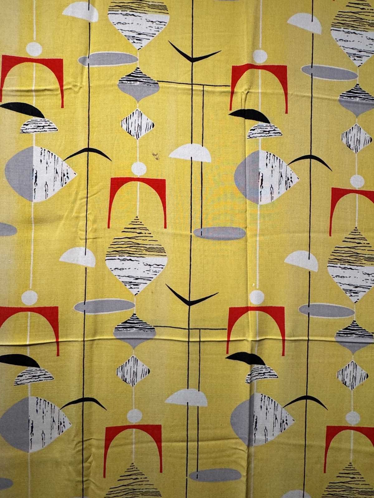Rare 1950S Marian Mahler Yellow Mobiles Fabric 1.6 Metres