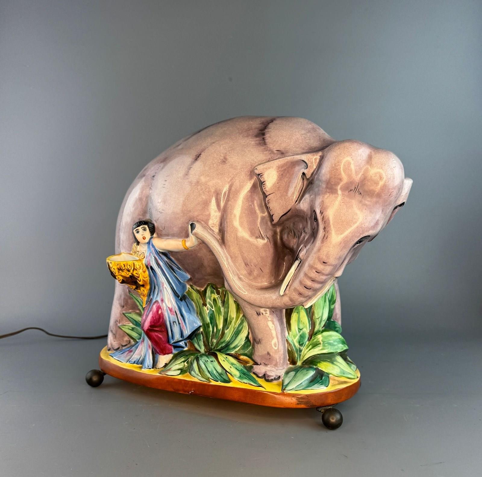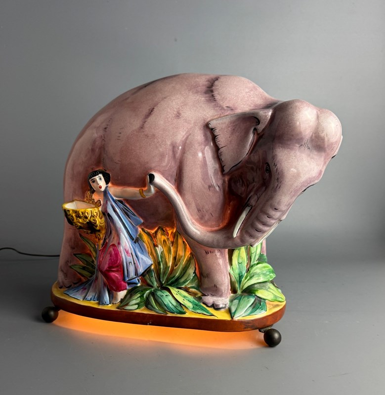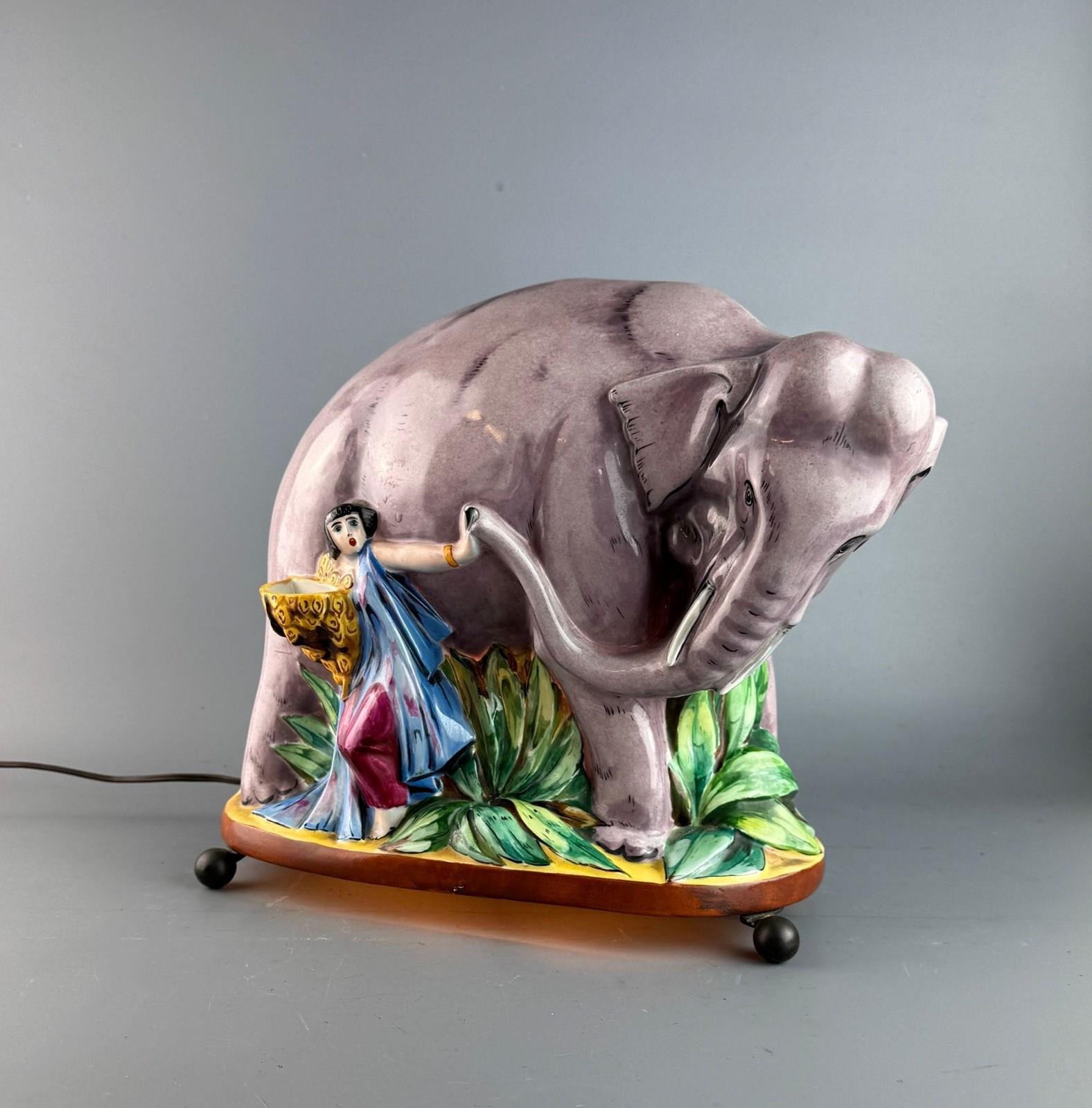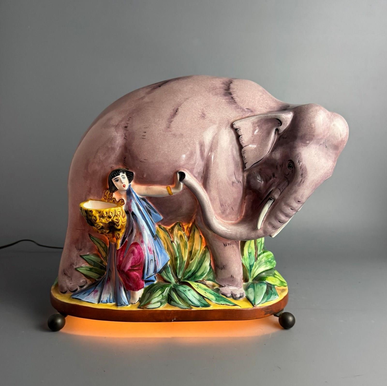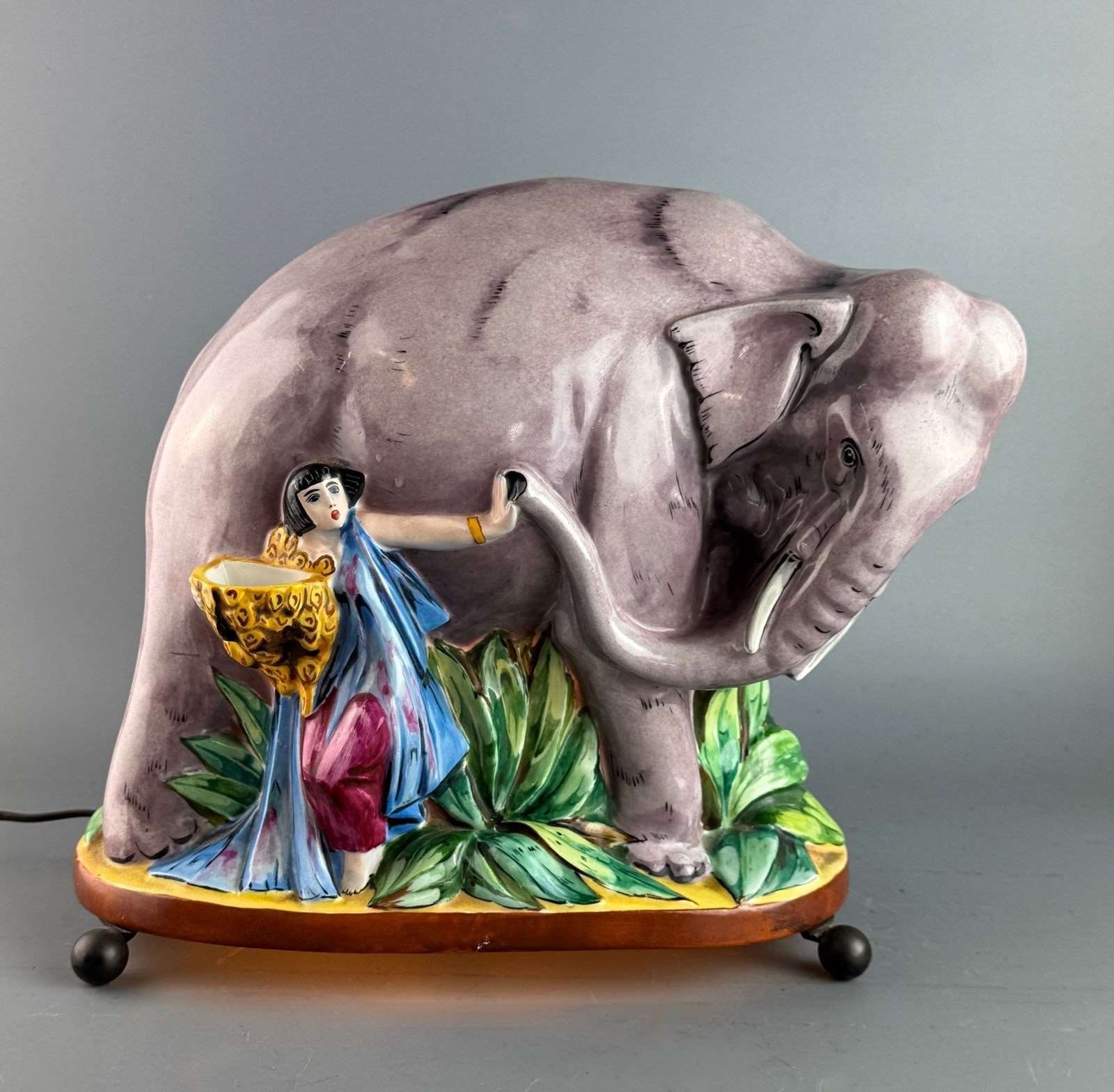 Rare French Art Deco Porcelain Elephant Perfume Lamp Attributed To Argilor