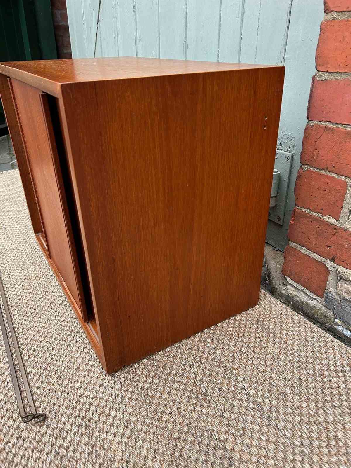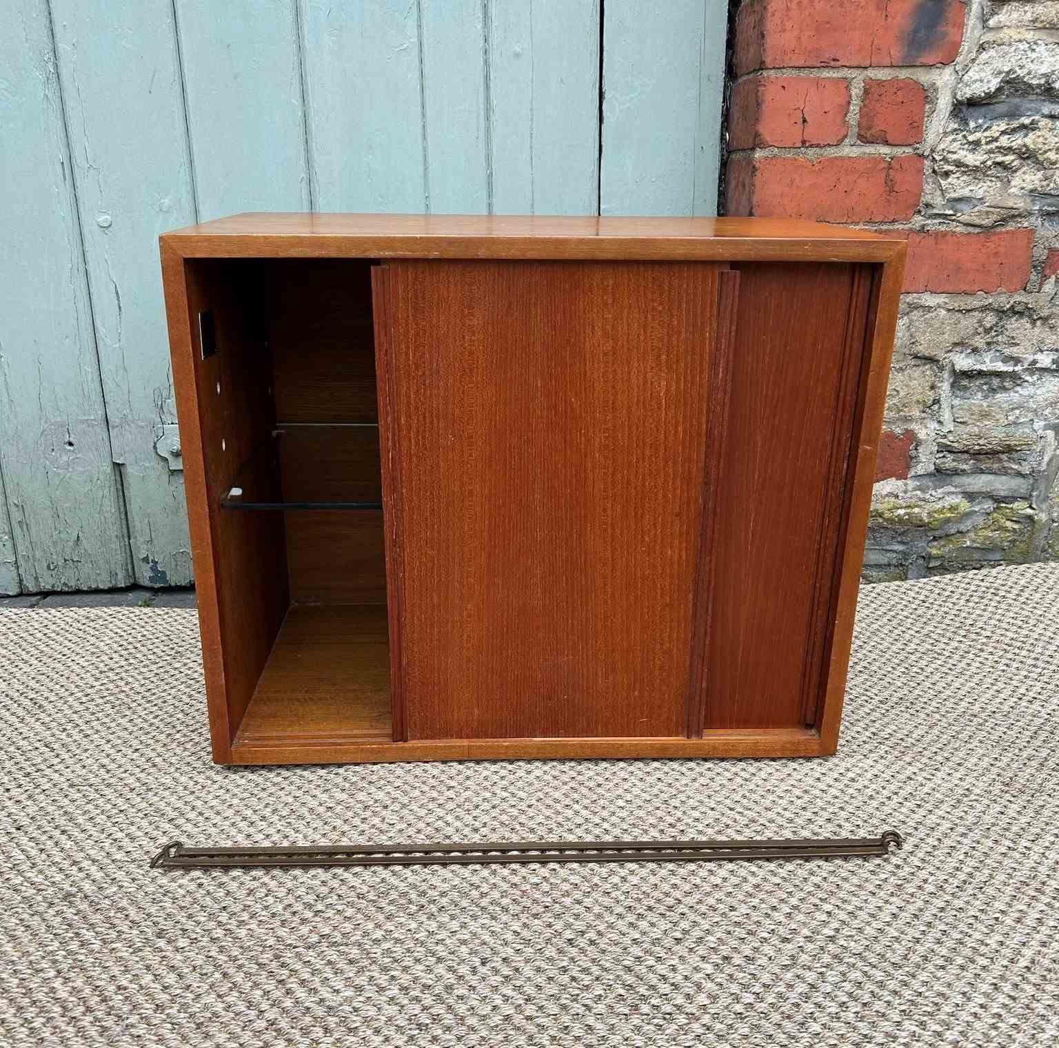 A 1960's/70's Robert Heal Ladderax for Staples teak 60cm sliding door cabinet with glass interior shelf and two supporting bars for the 60cm width bays of Ladderax.