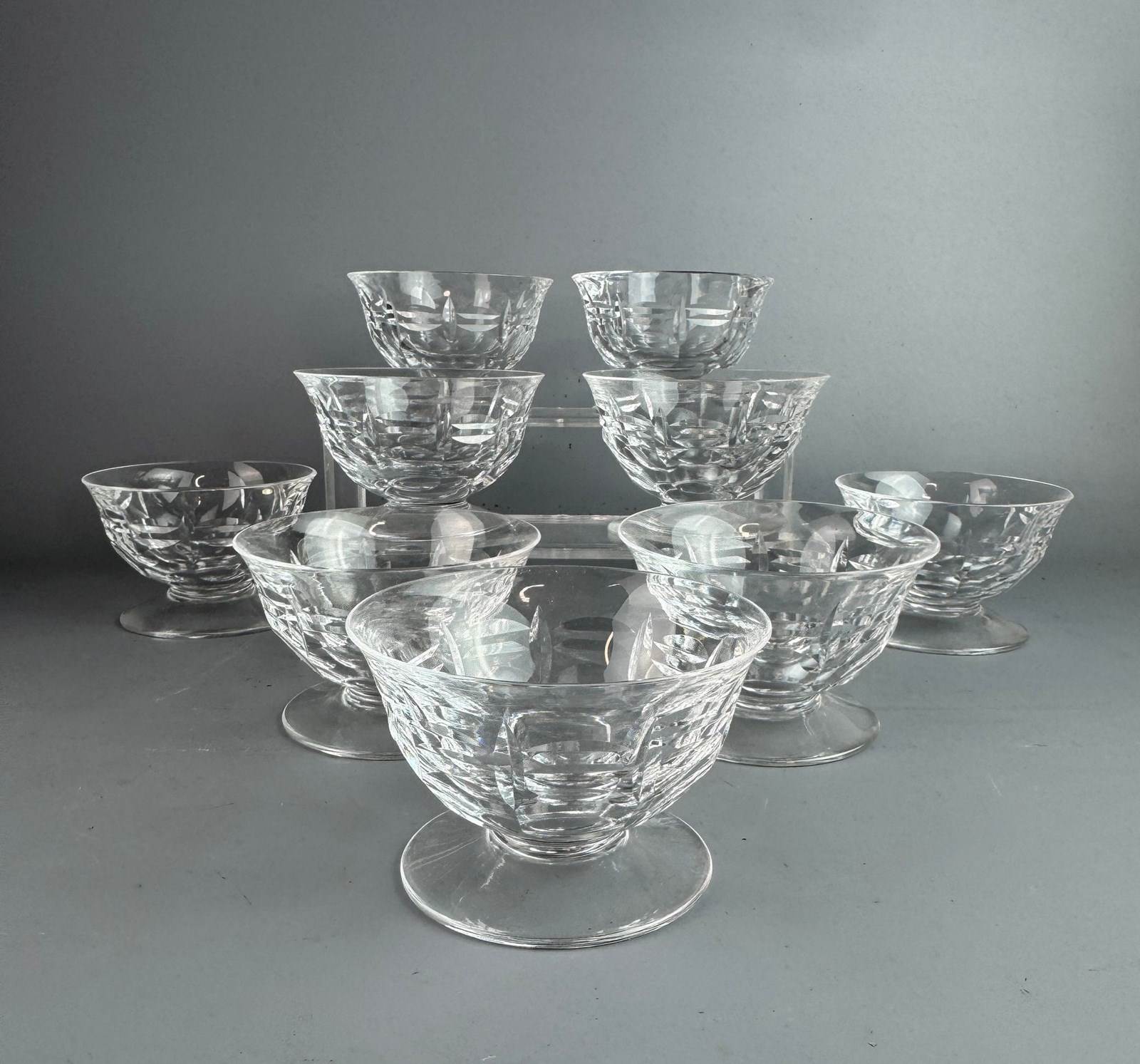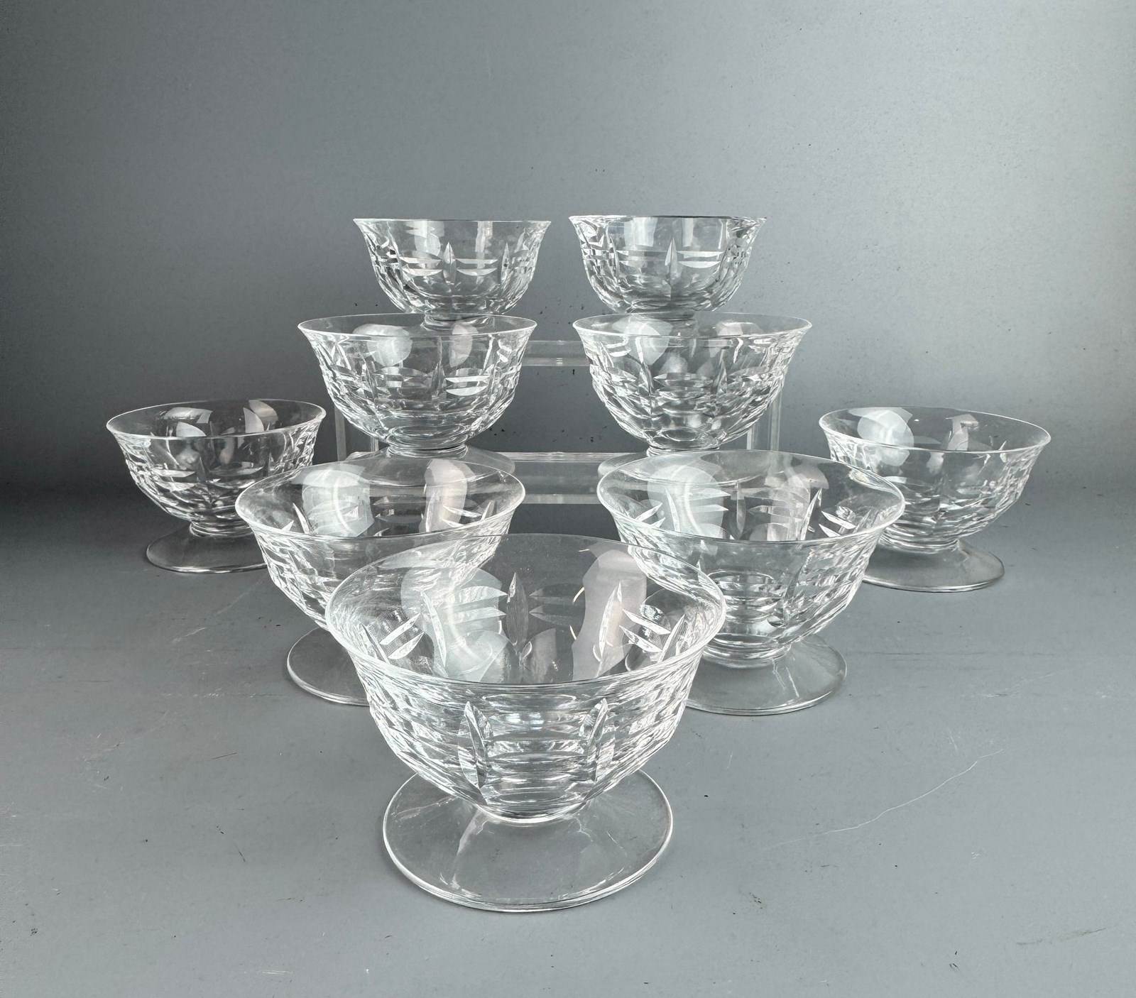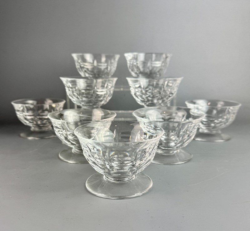 Set Of Nine French Cut Glass Champagne Coupes Circa 1920