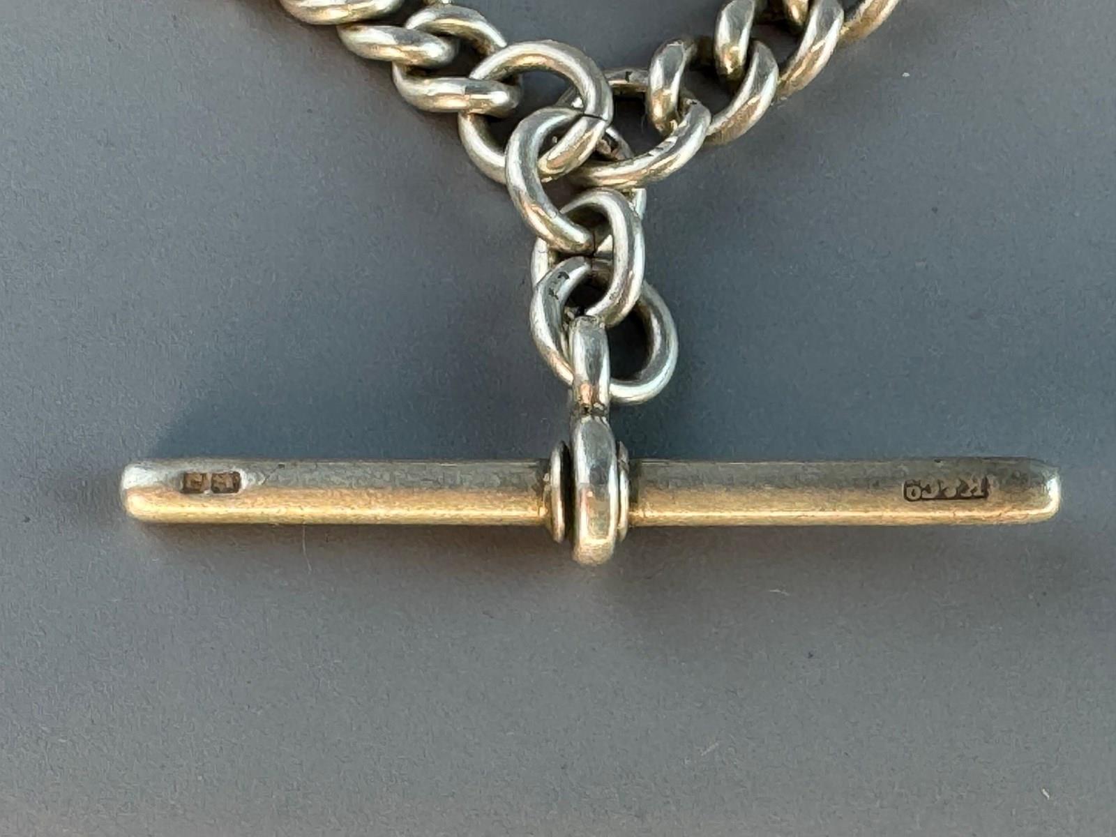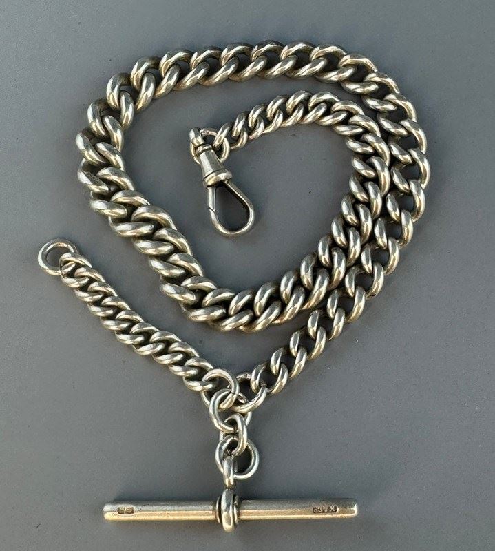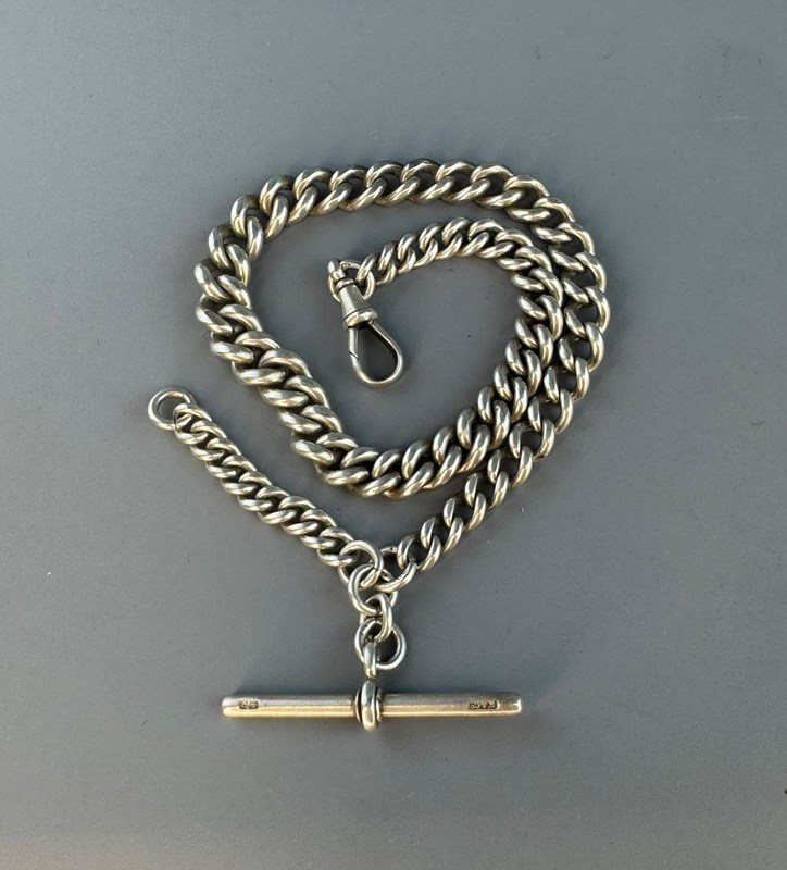 Victorian Heavyweight Silver Albert Watch Chain With T Bar