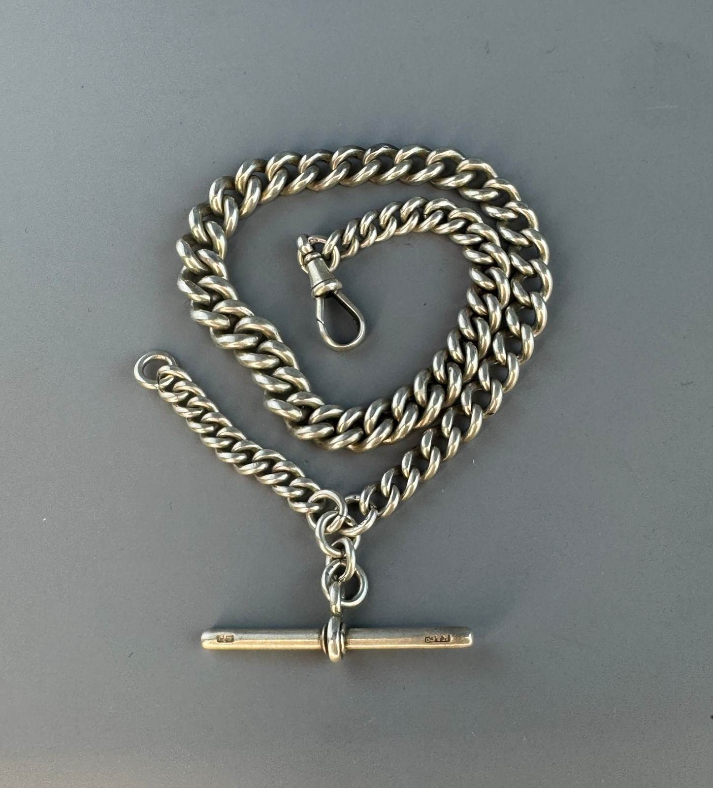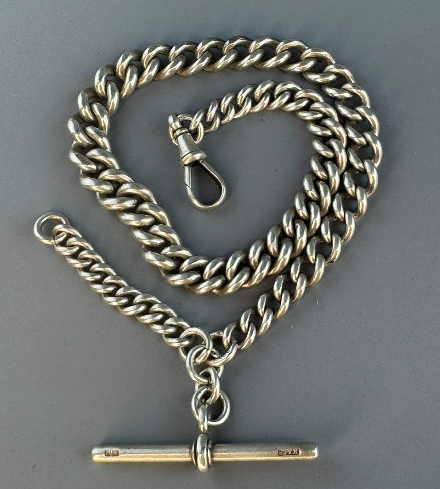 A chunky heavyweight Victorian silver Albert watch chain, Birmingham 1899 by Kay & Co. The chain with graduated links and T bar. 64grams, 2.25ozs.