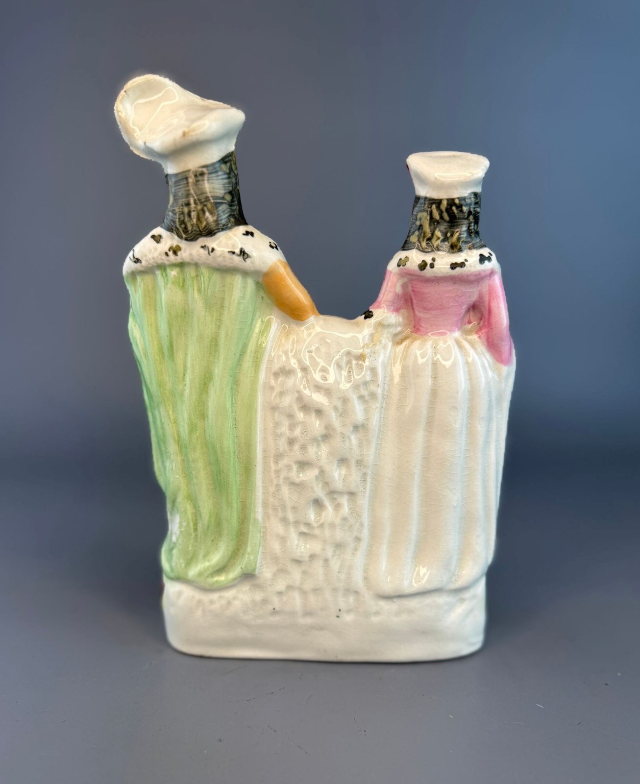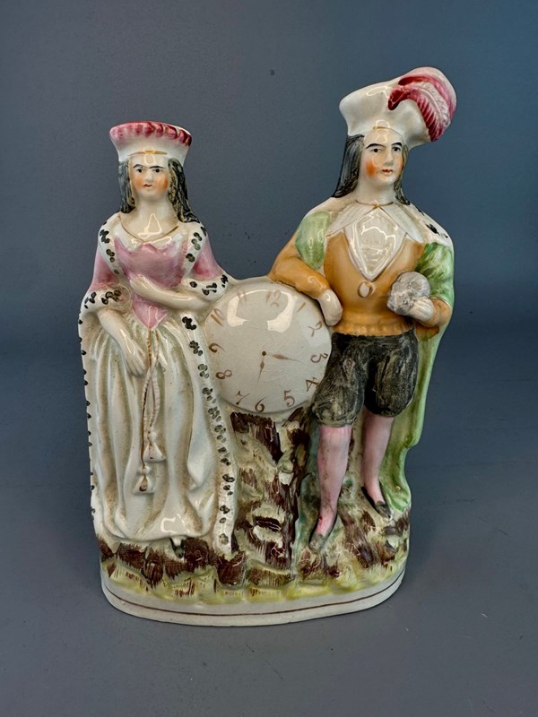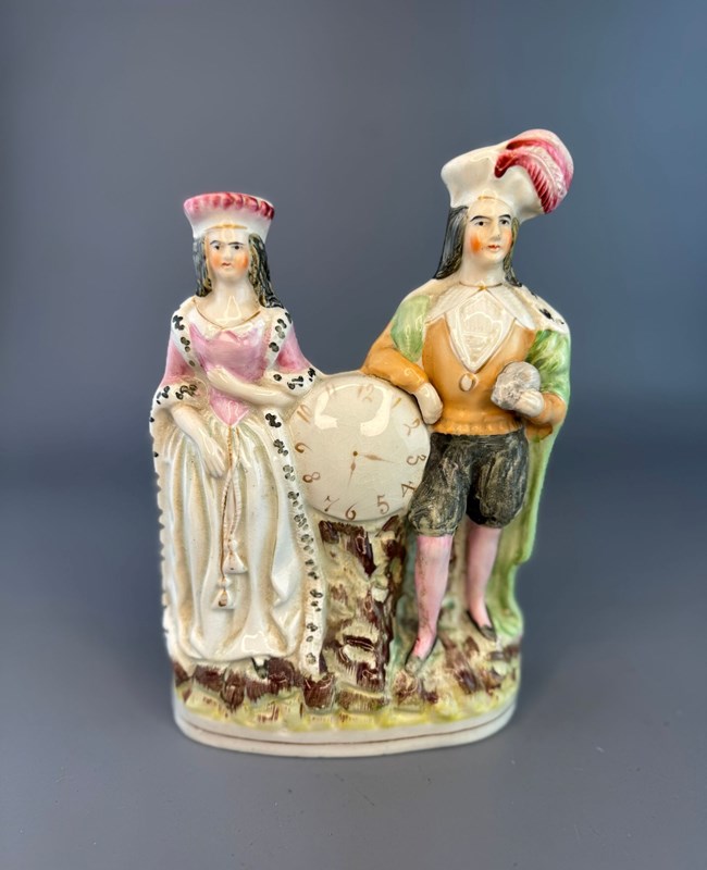 A Victorian Staffordshire 'clock' group, with male and female in costume, circa 1860. In excellend condition with no damage or repair.