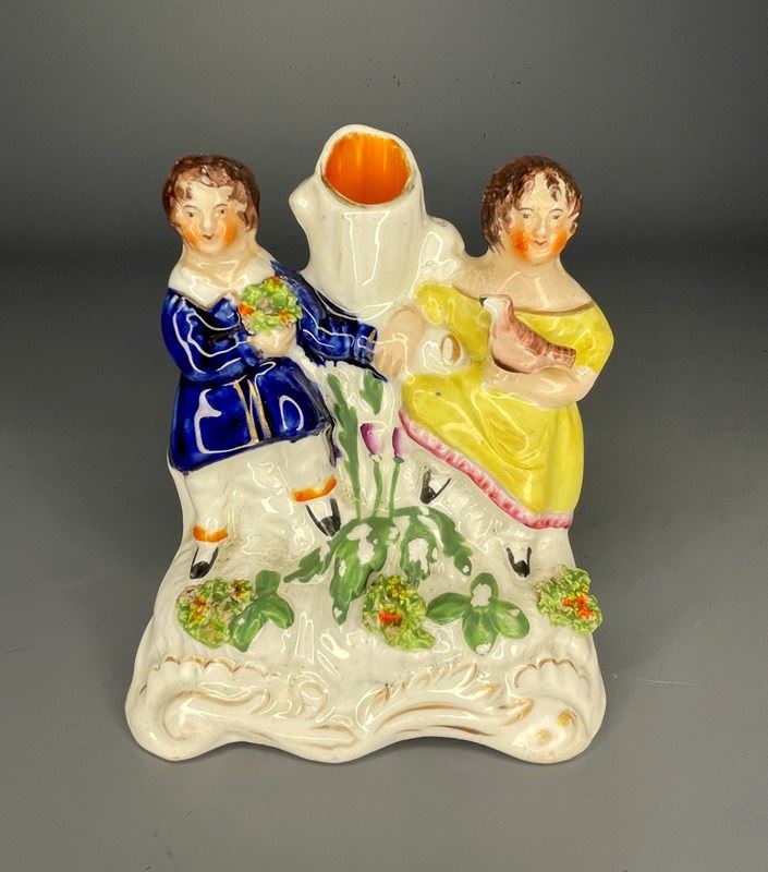 Victorian Staffordshire Pottery Spill Vase Of Children
