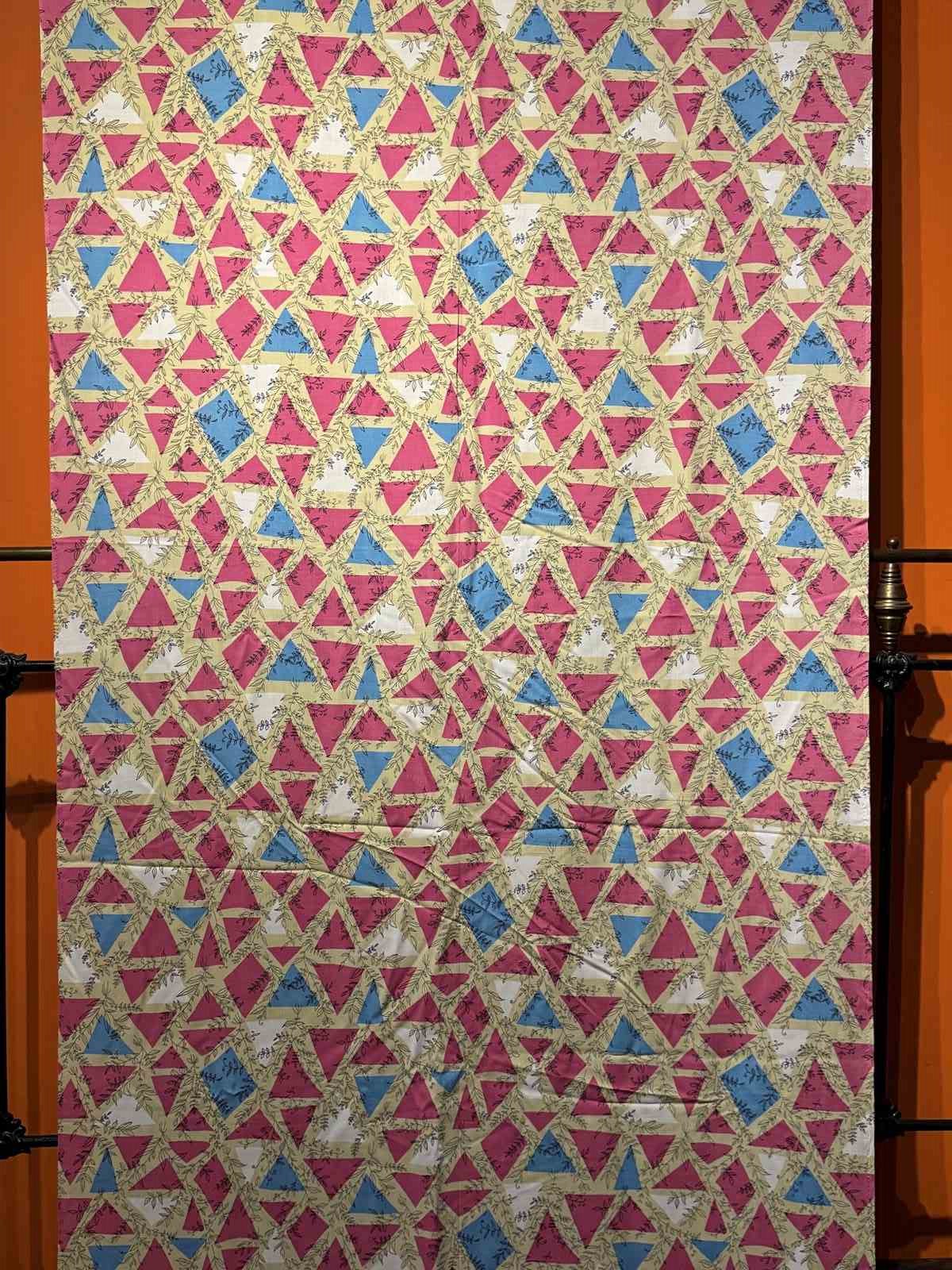 Vintage 1960S Pink & Blue Triangle Printed Fabric 2.72 Metres Old Stock