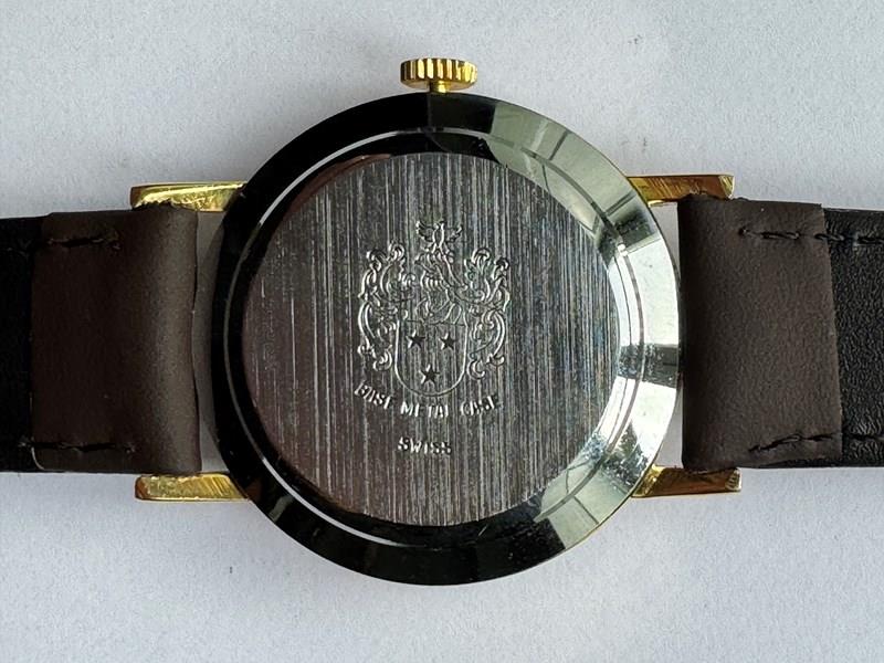 In perfect, working, condition, unused and new old shop stock from a jewellers, with a new black leather strap.