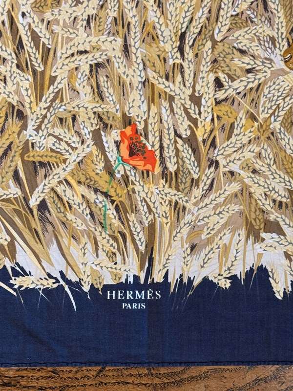 Vintage Hermes 'Les Bles' Cotton Scarf Designed By Hugo Grygkar