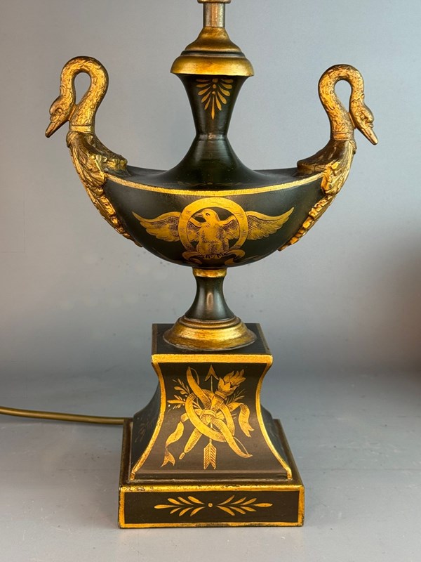 Vintage Toleware Urn Shaped Table Lamp In Empire Style