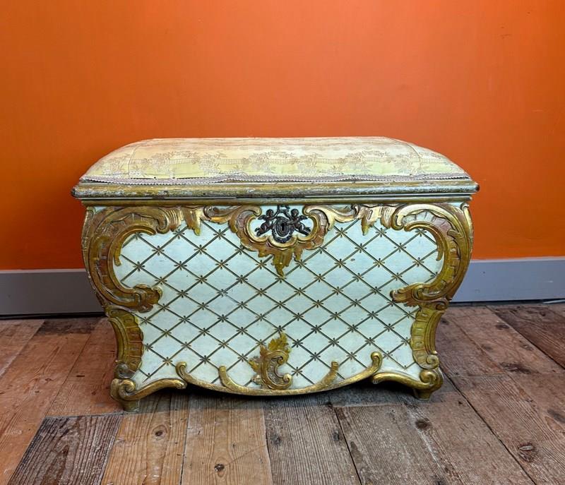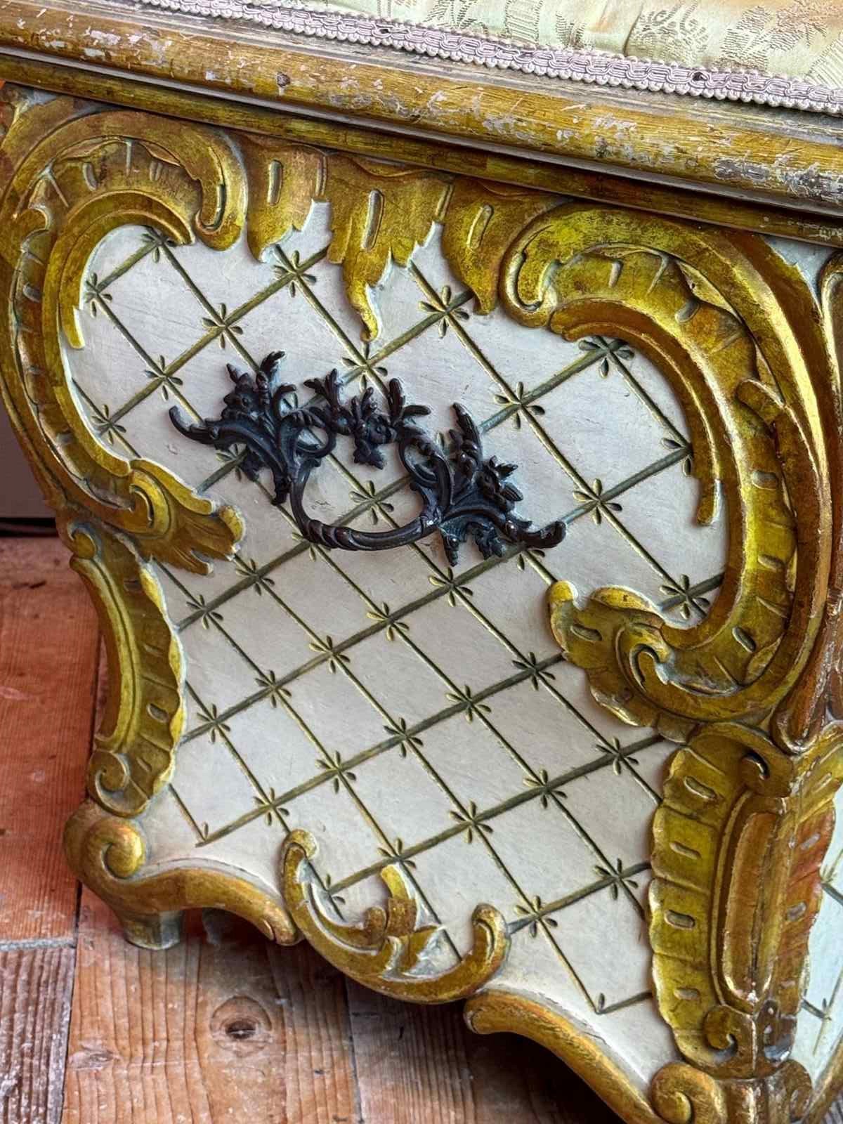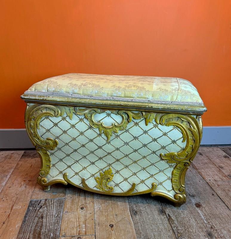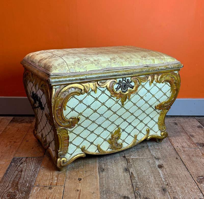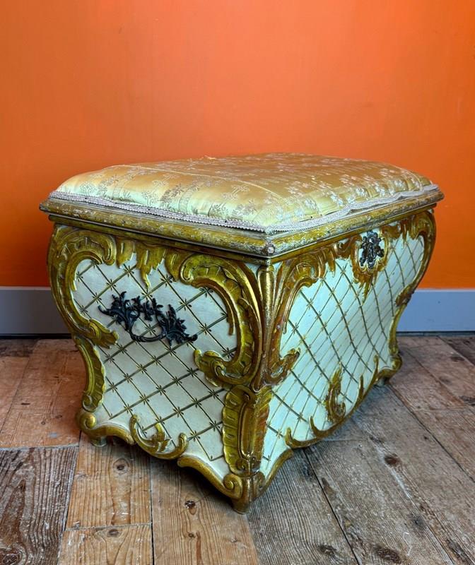 Vintage Venetian Painted & Gilt Ottoman In Rococo Style