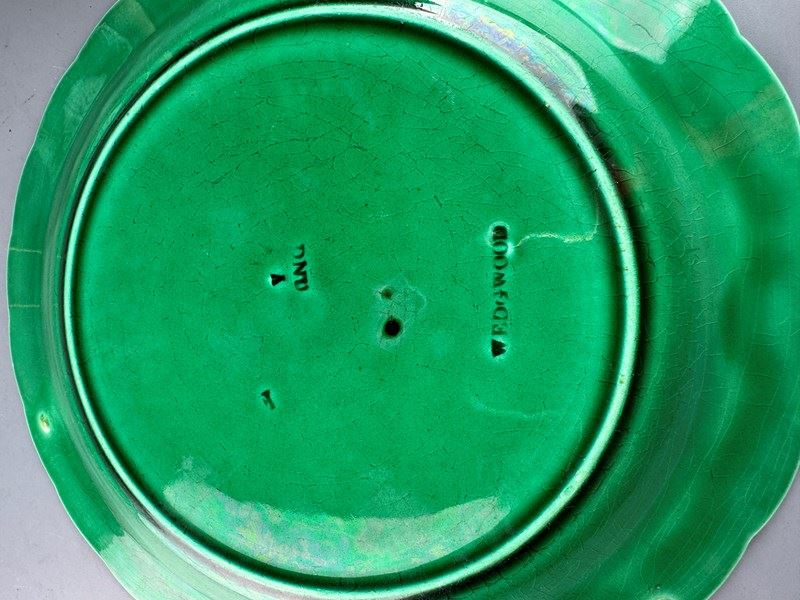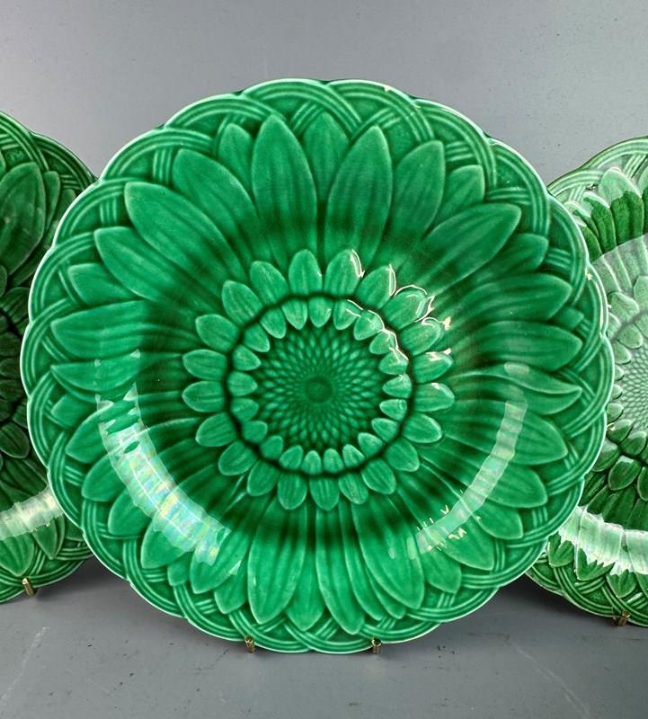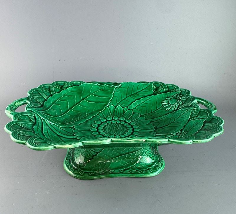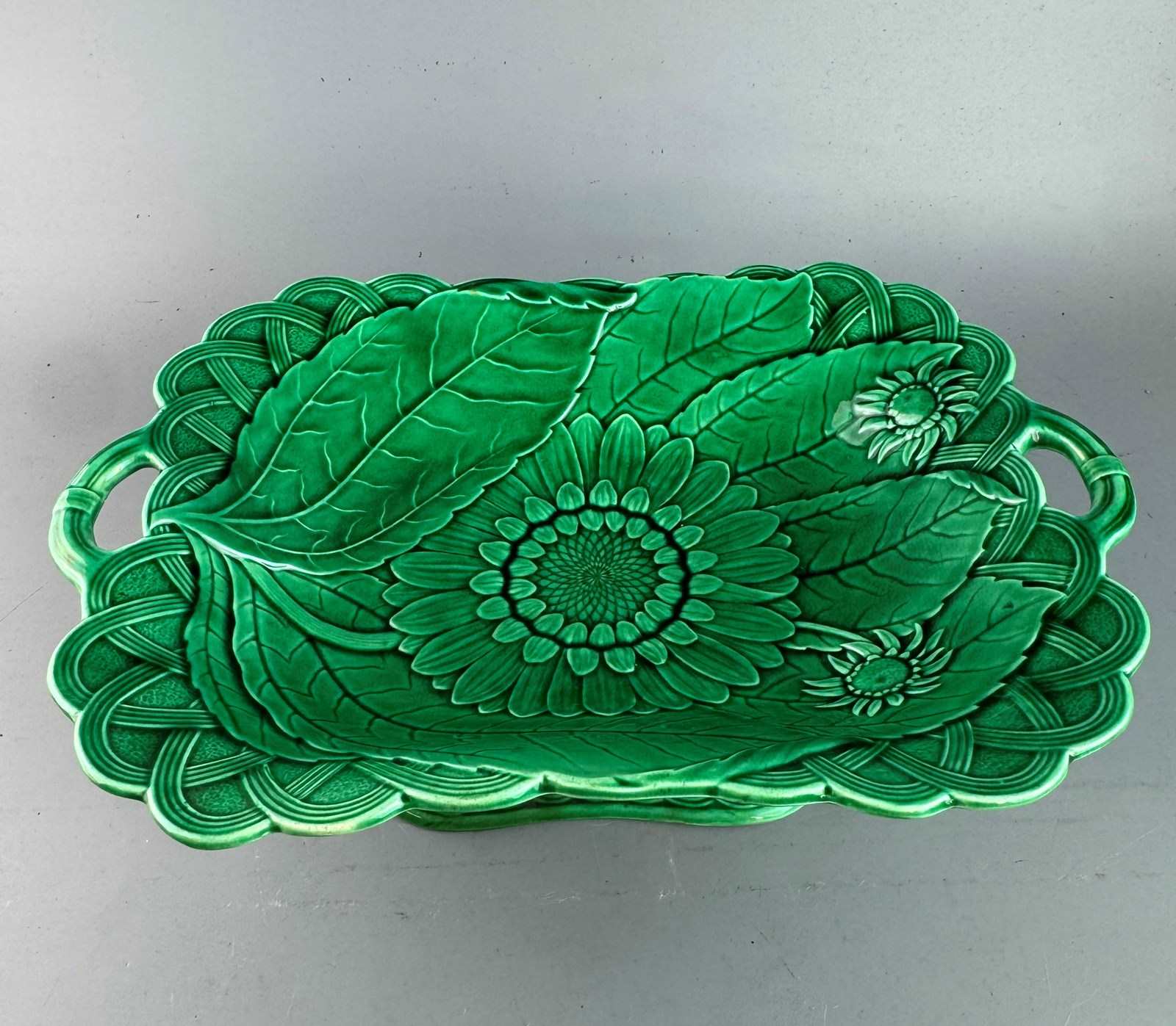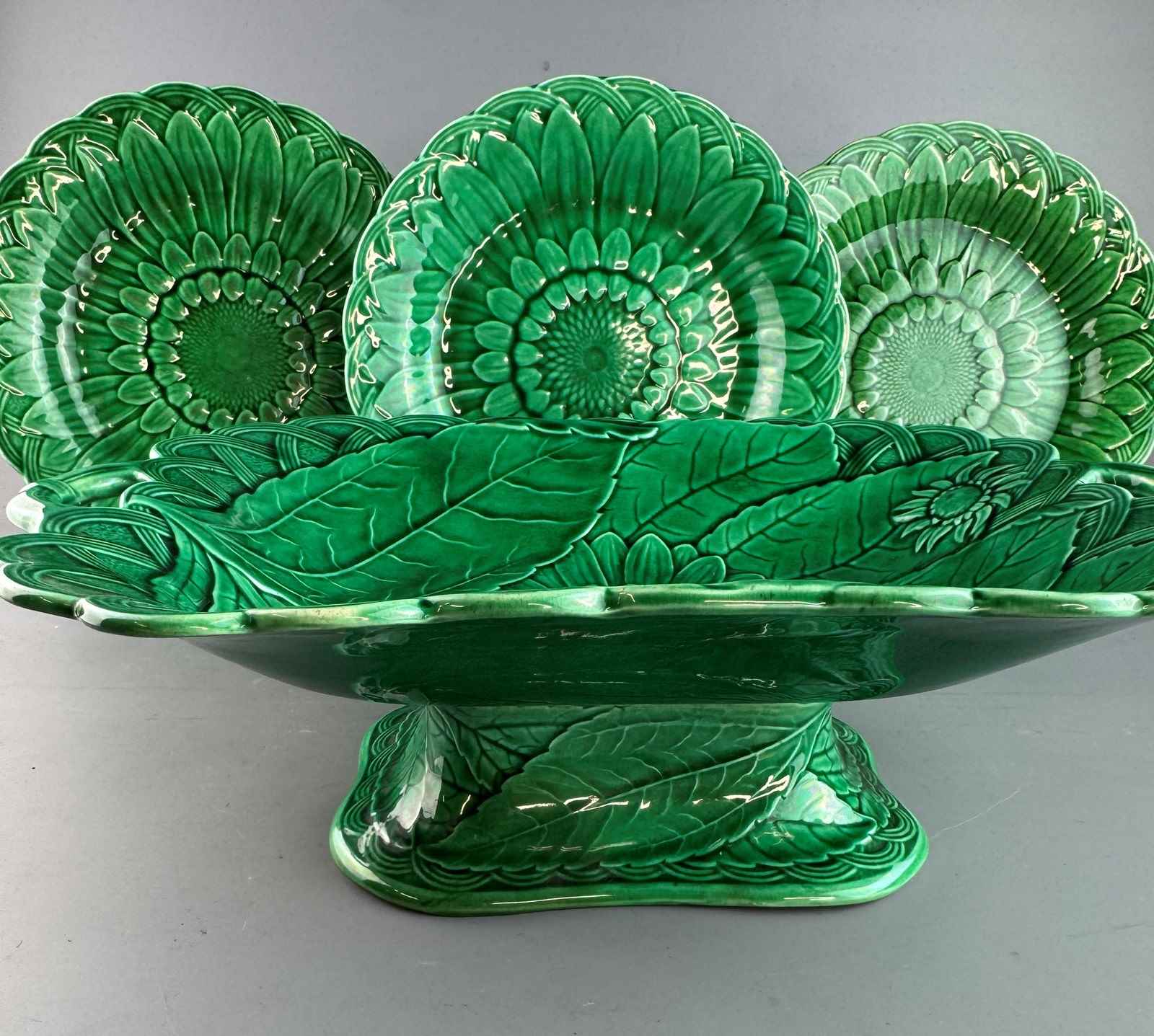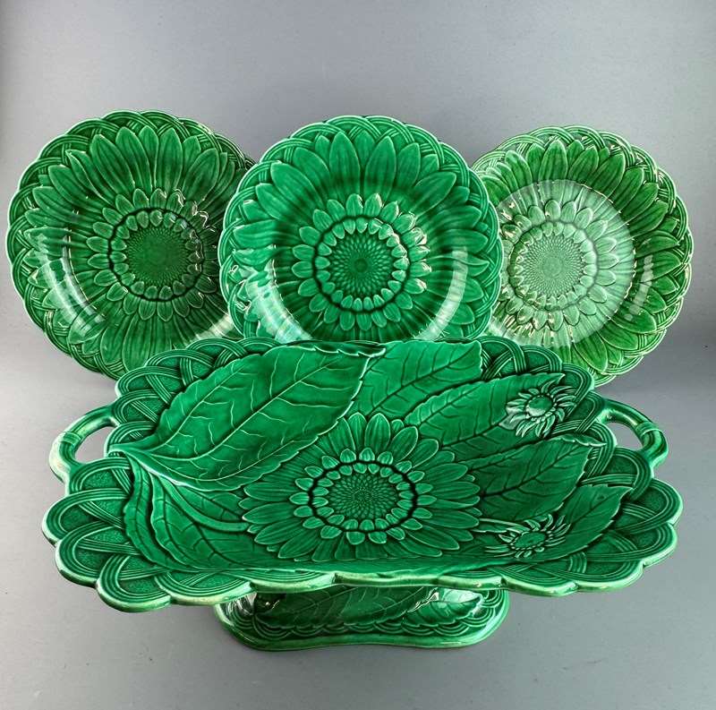 Wedgwood Green Majolica Sunflower Pattern Comport & Plates