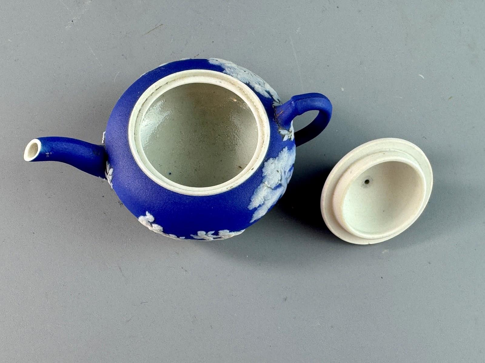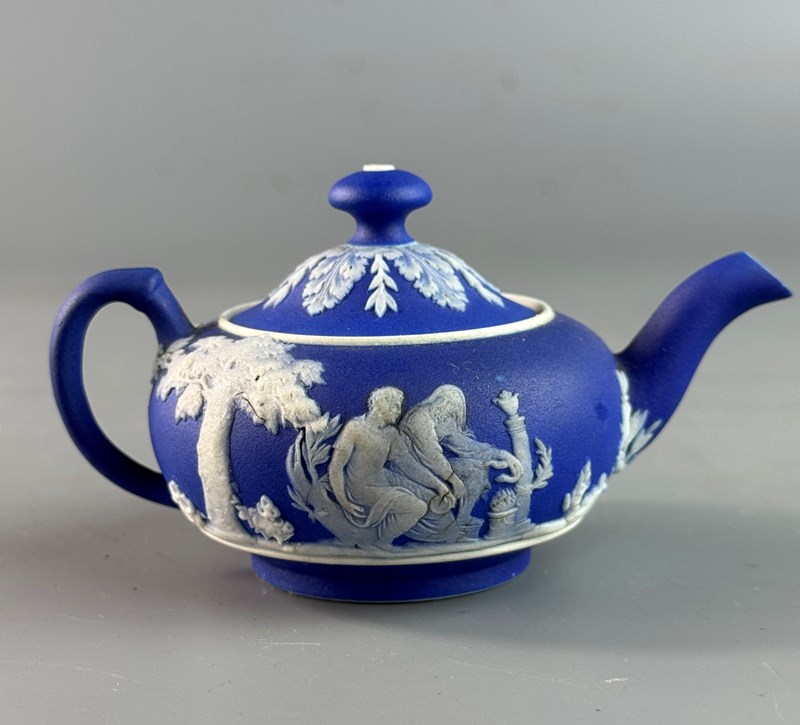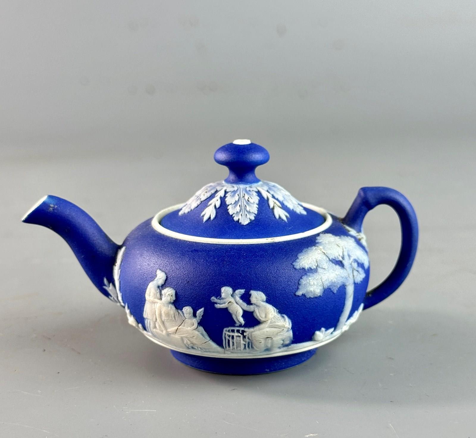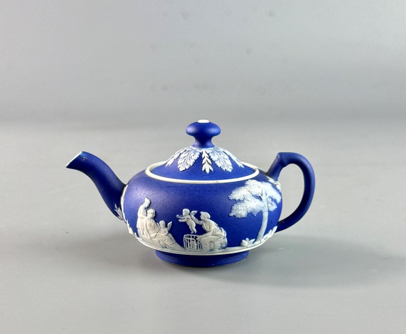 Miniature Wedgwood Blue Jasper Teapot Dated 1886